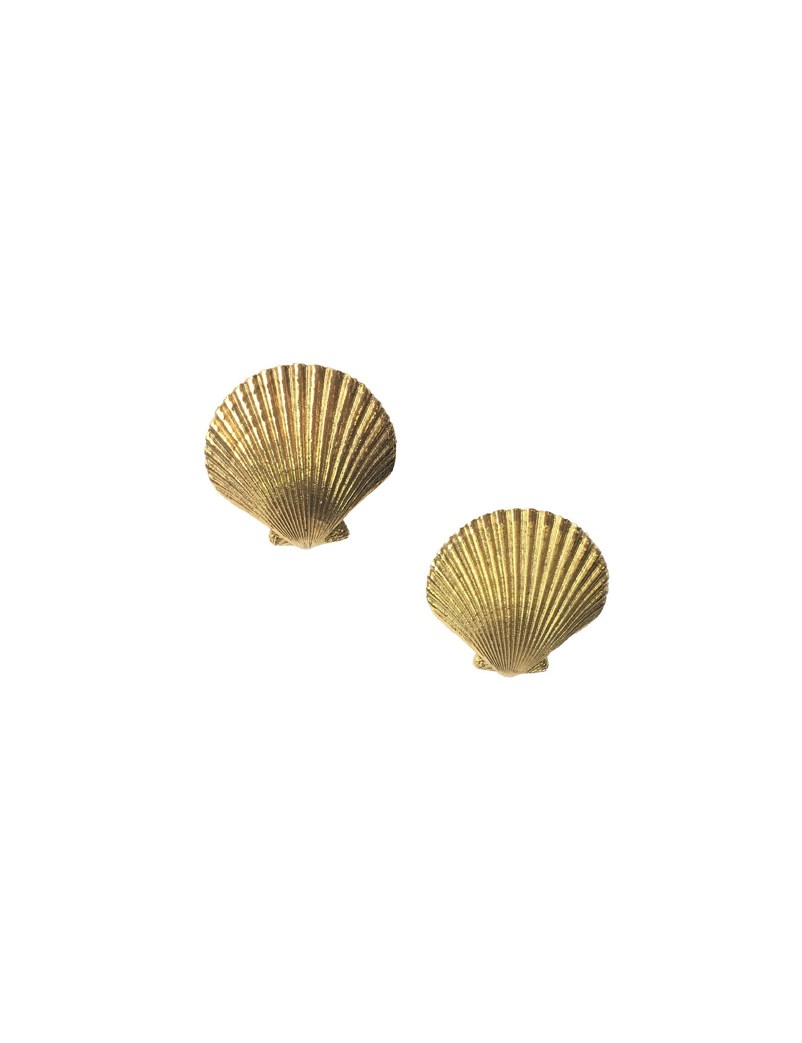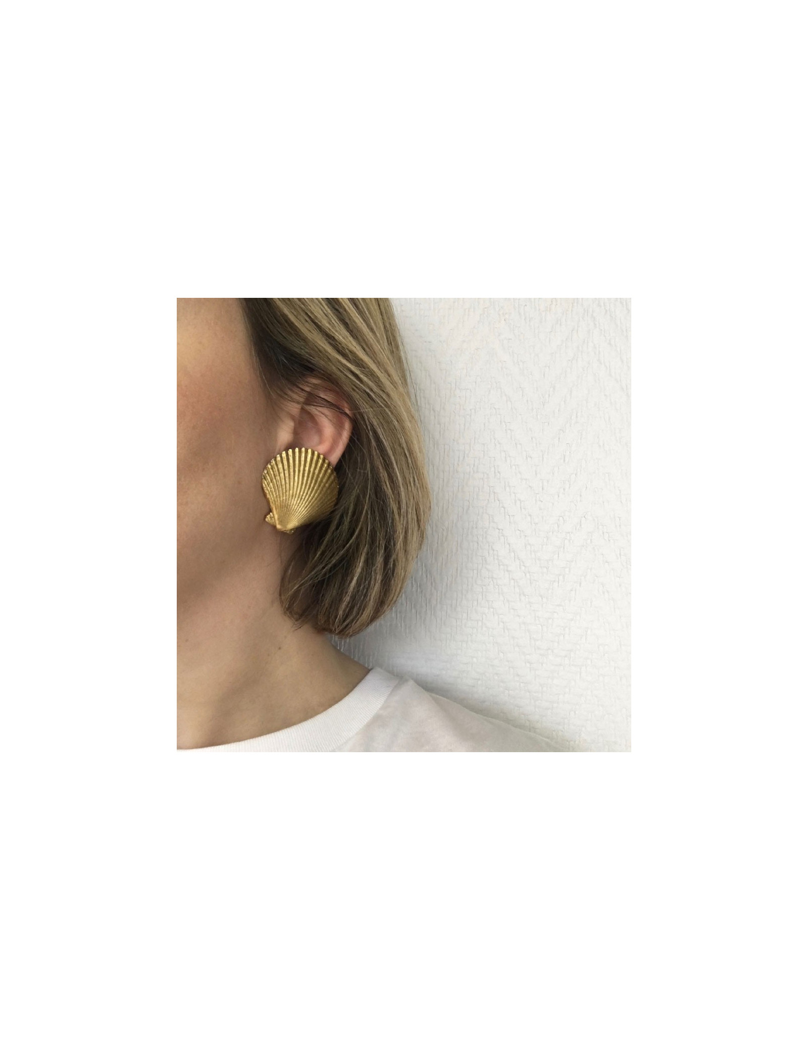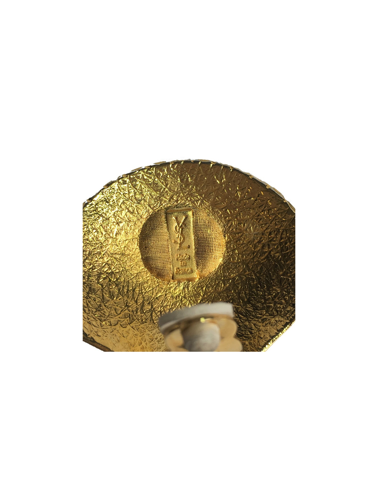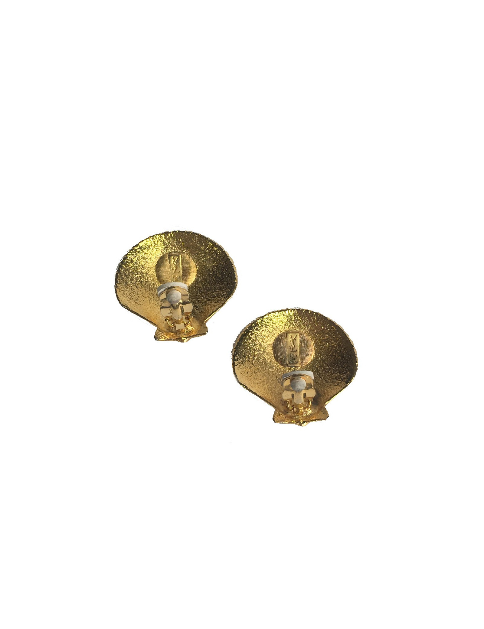 Boucles d'oreille clips YSL YVES SAINT LAURENT coquillage en métal doré