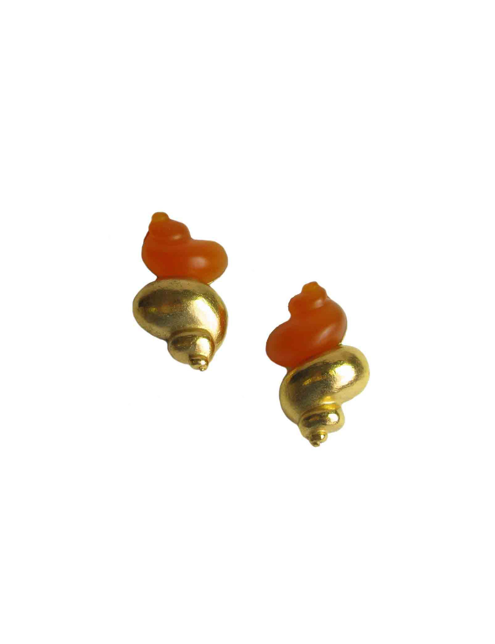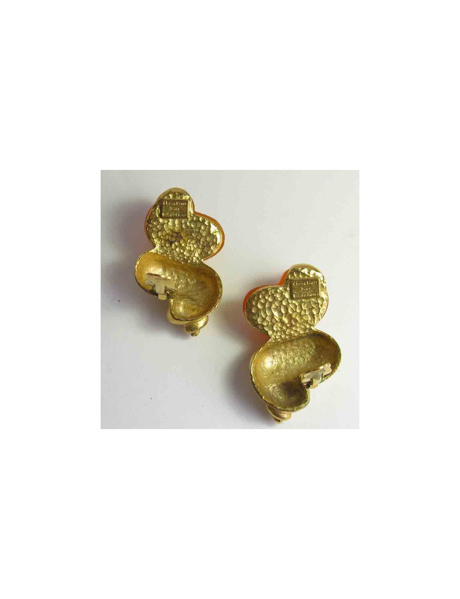 Boucles d'oreille clips CHRISTIAN DIOR vintage en métal doré et plexi orange