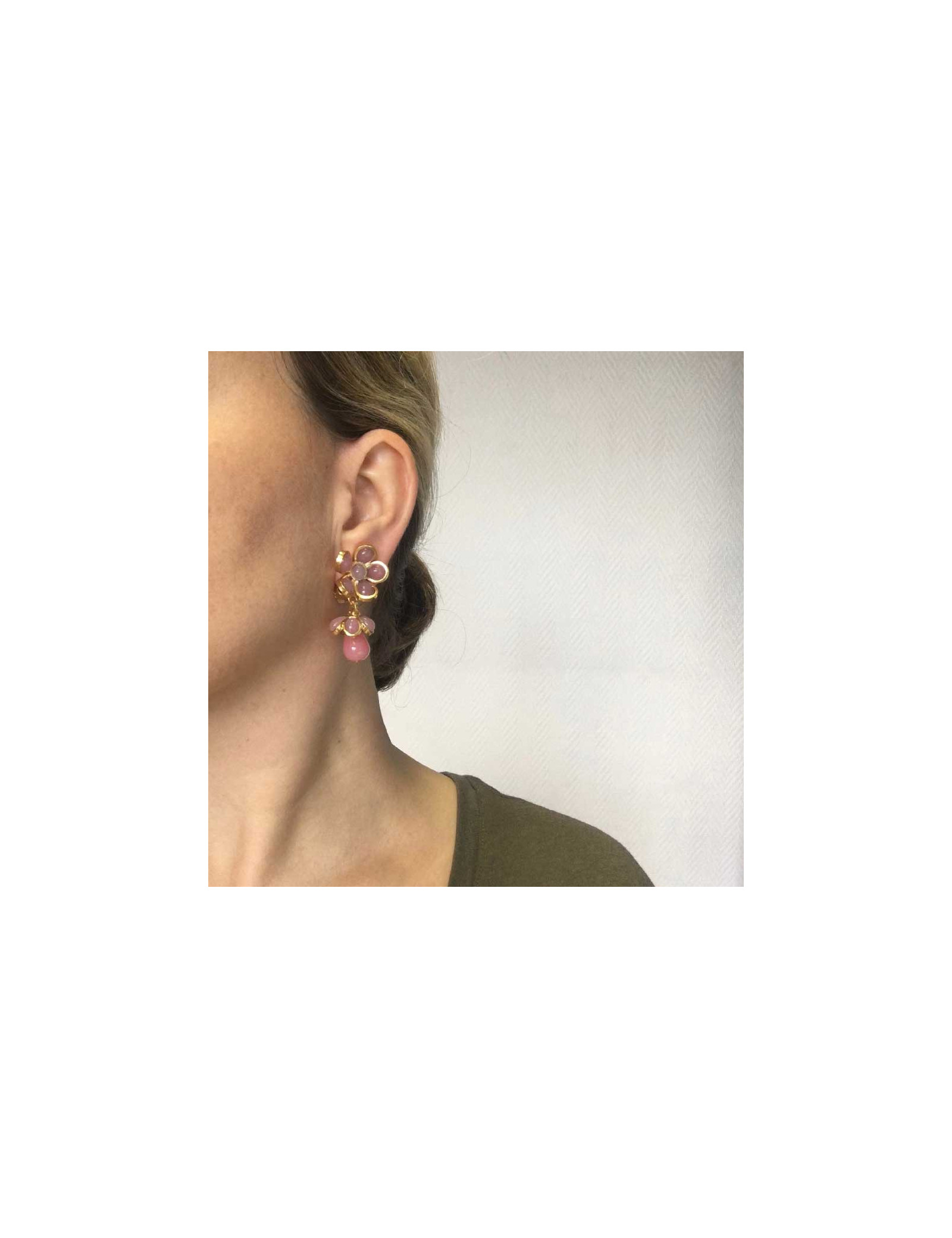 Boucles d'oreille clips MARGUERITE DE VALOIS pendantes fleurettes roses