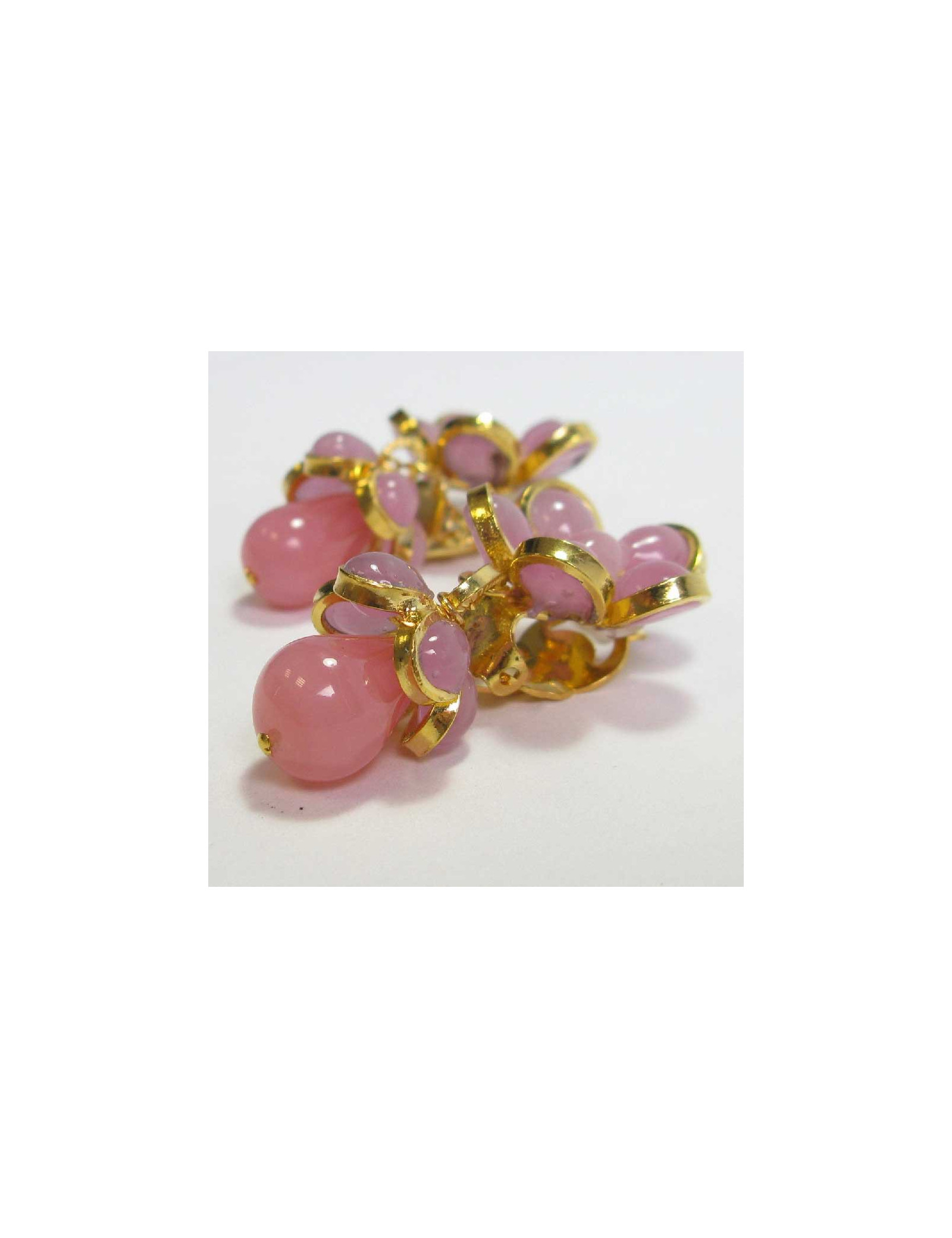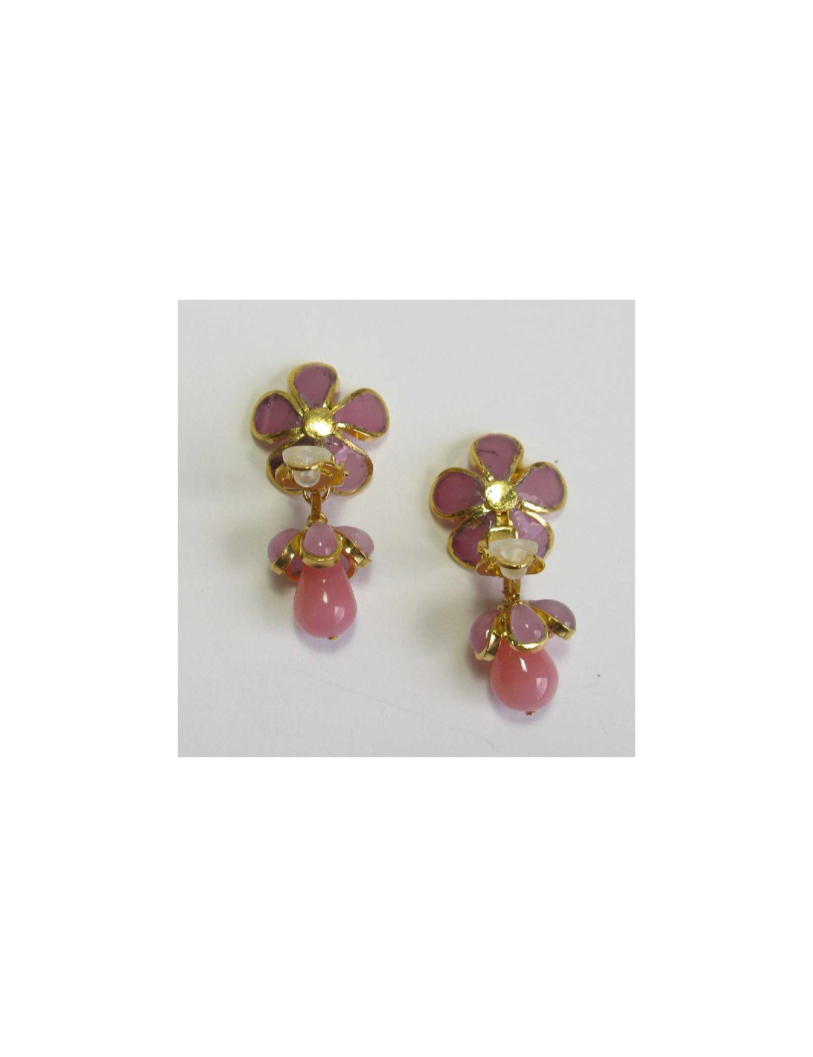 Boucles d'oreille clips MARGUERITE DE VALOIS pendantes fleurettes roses.