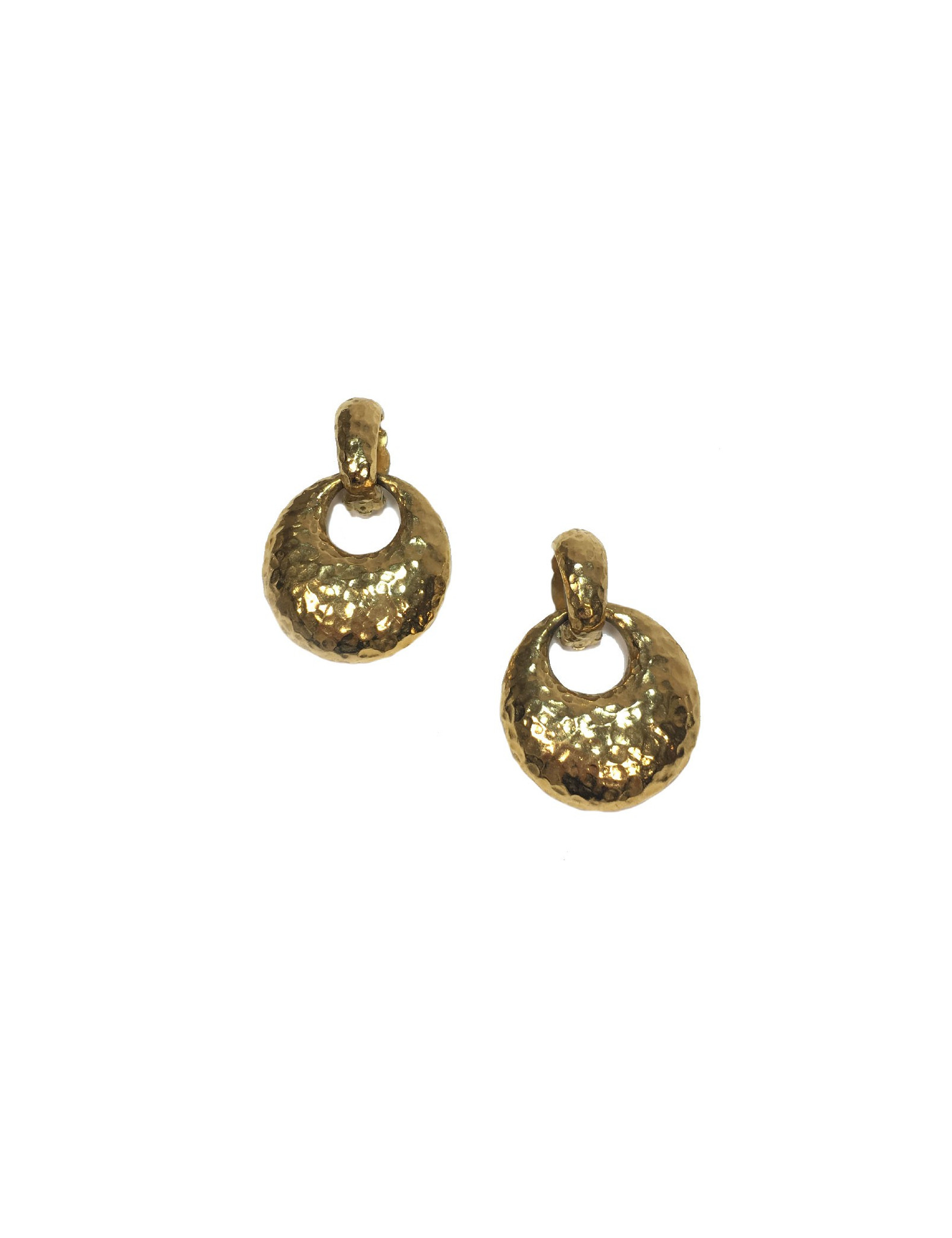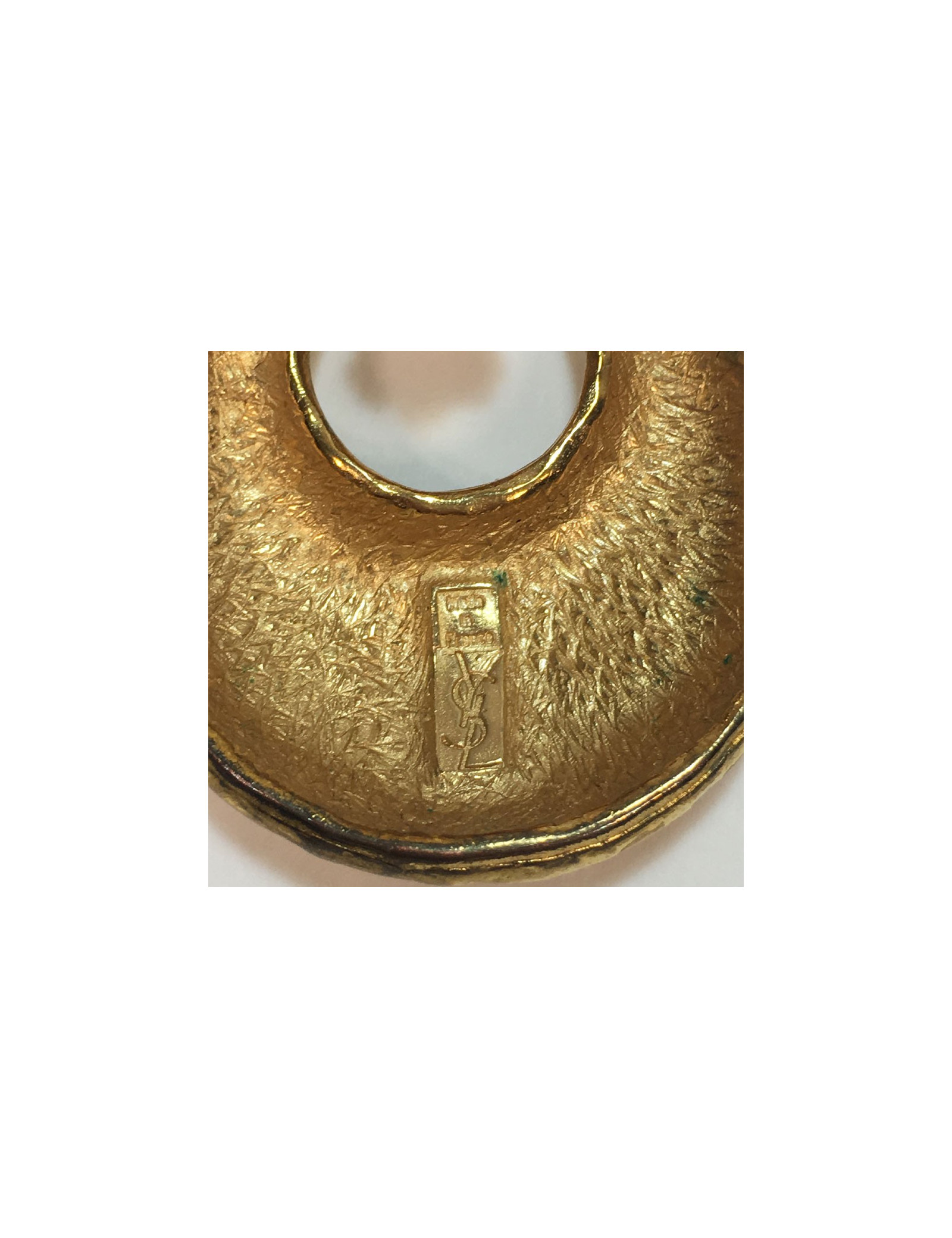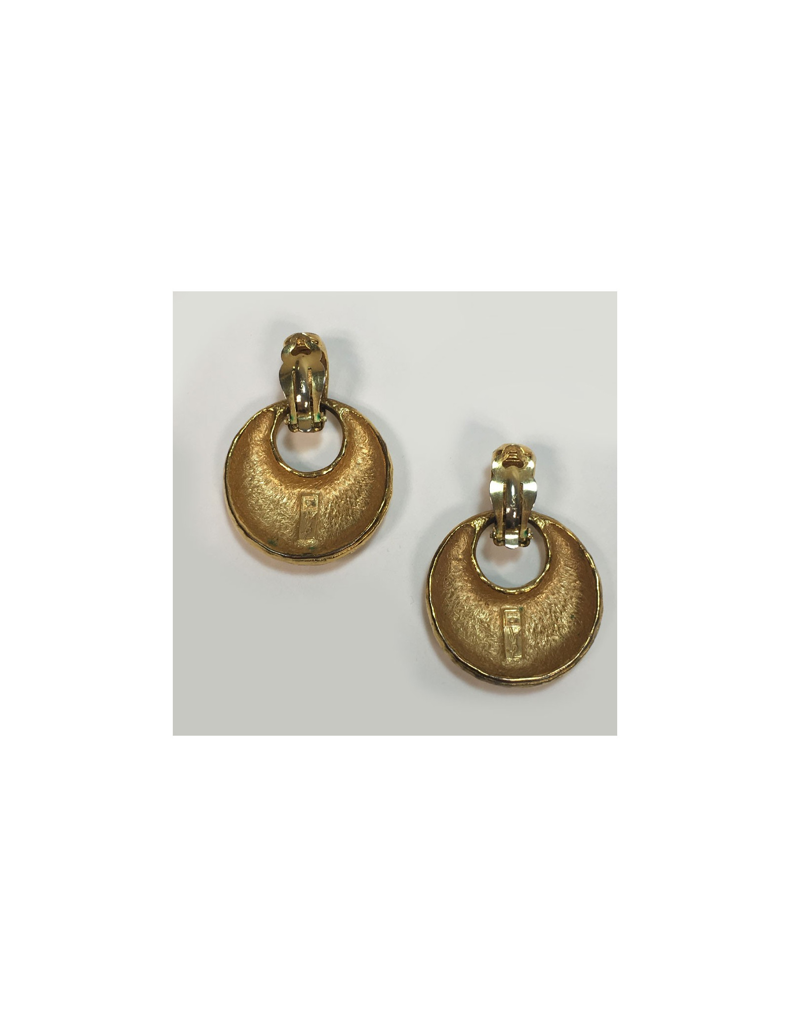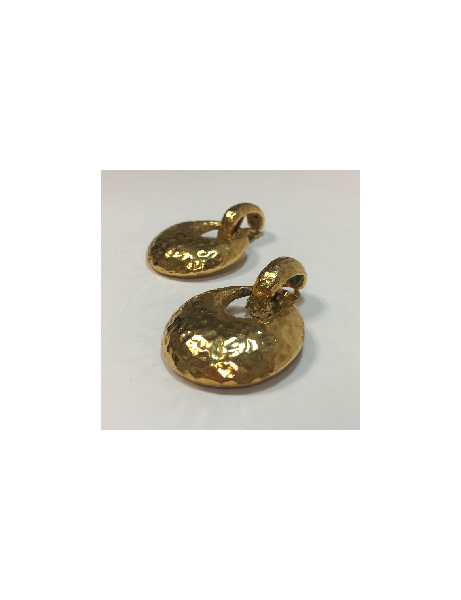 Boucles d'oreille clips YSL Yves Saint Laurent en métal doré martelé.