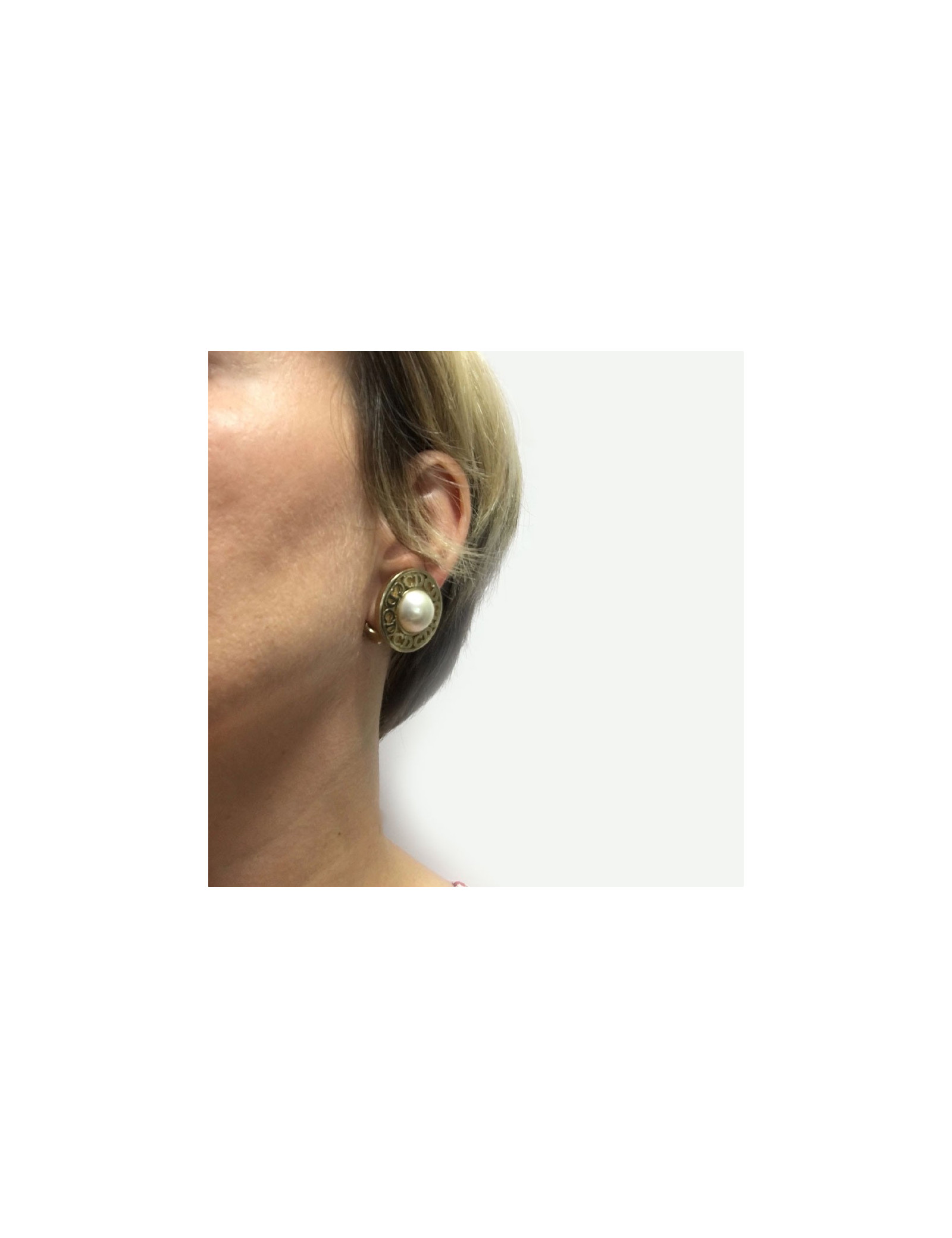 Boucles d'oreille clips Christian Dior en métal doré et perle nacrée