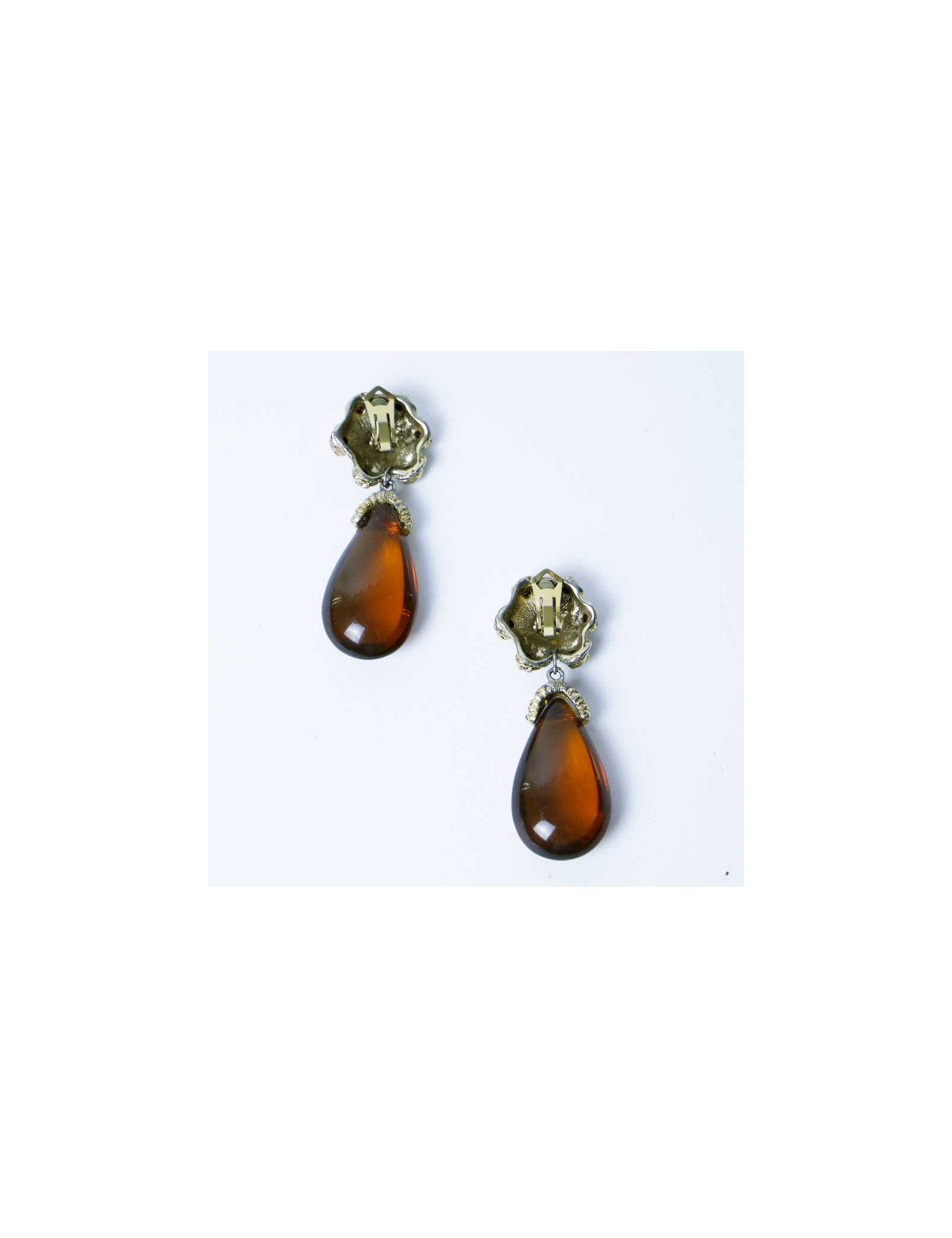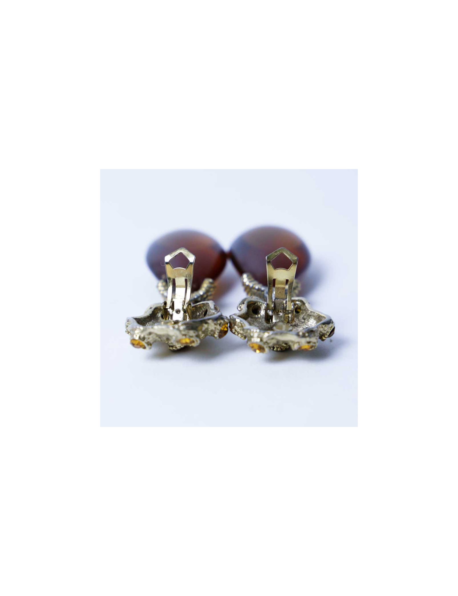 Boucles d'oreilles clips pendantes vintage ambrés sans marque