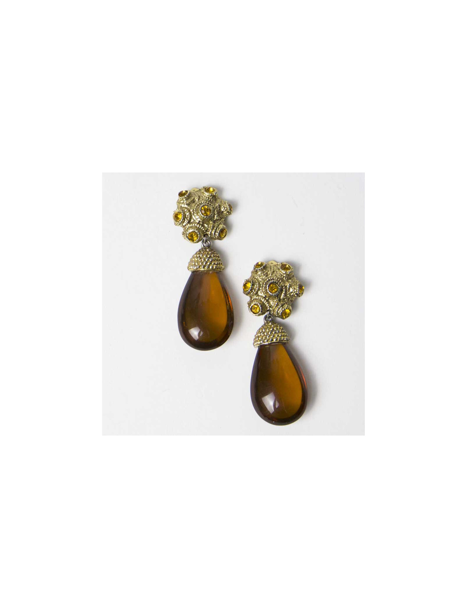 Boucles d'oreilles clips pendantes vintage ambrés non signées