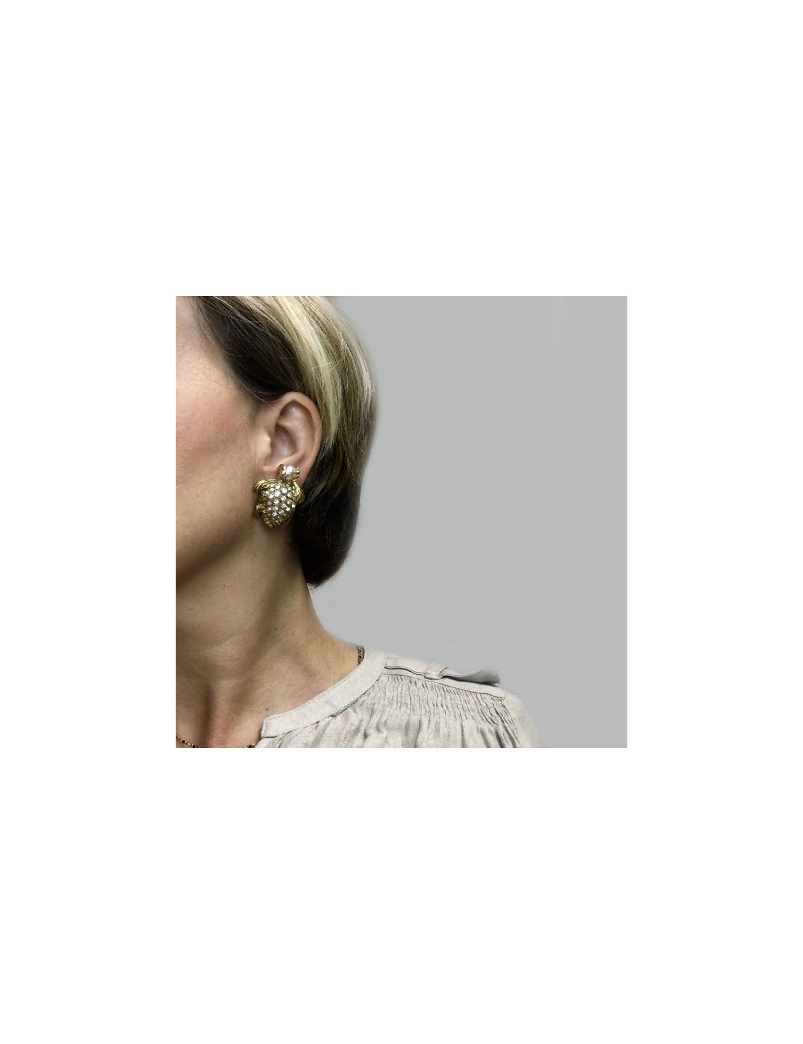 Clips tortues YSL Yves Saint Laurent en métal doré, perle nacrée et strass