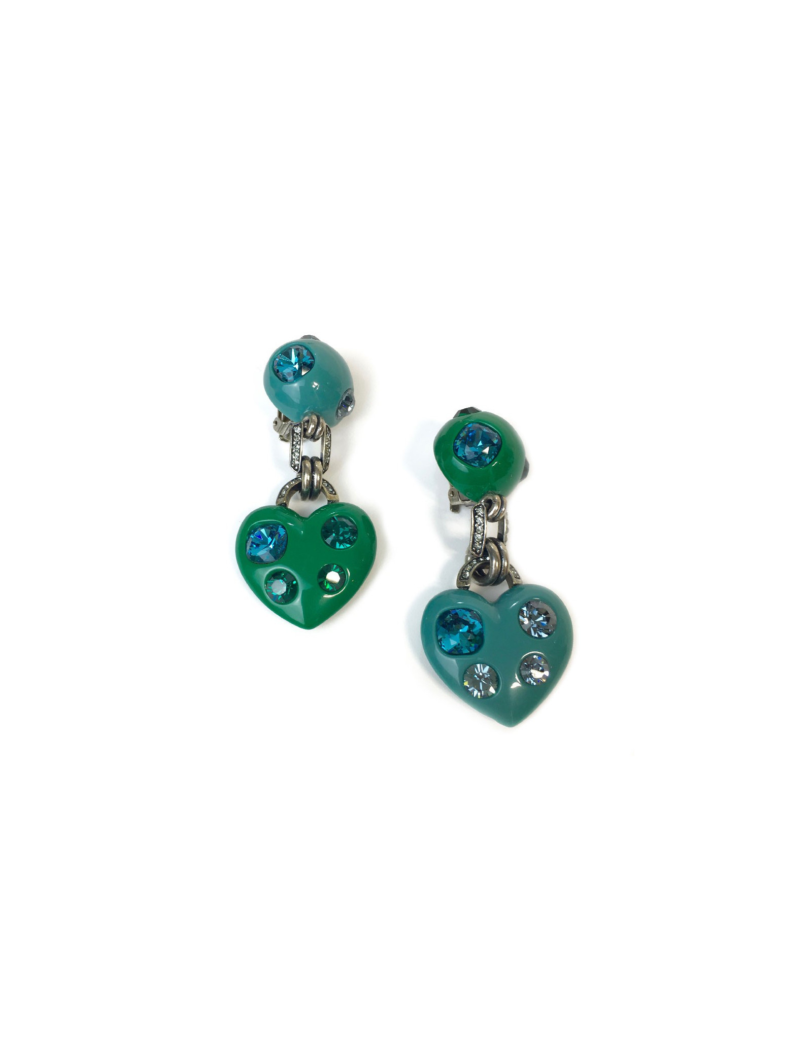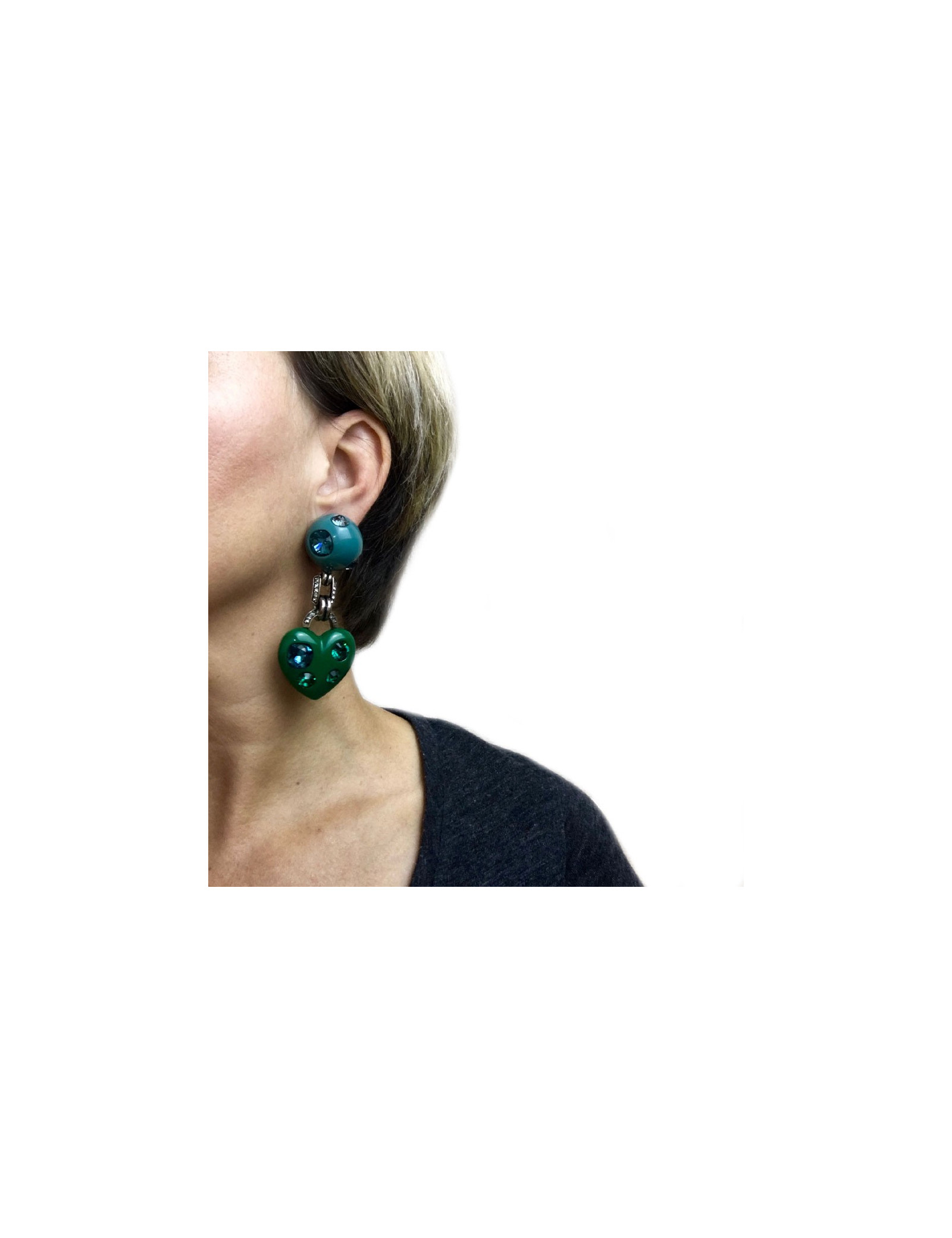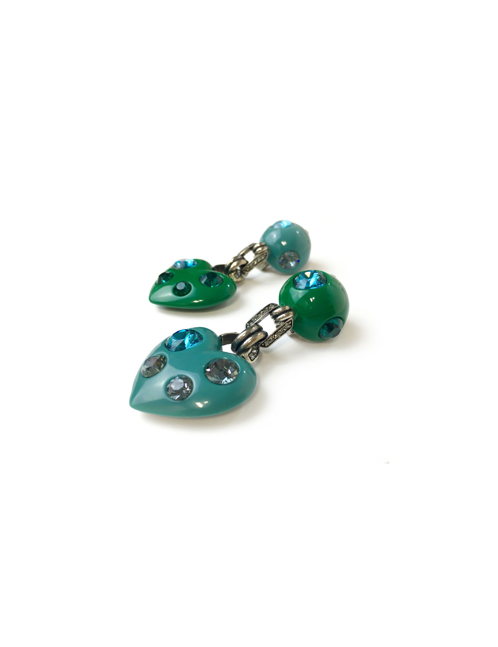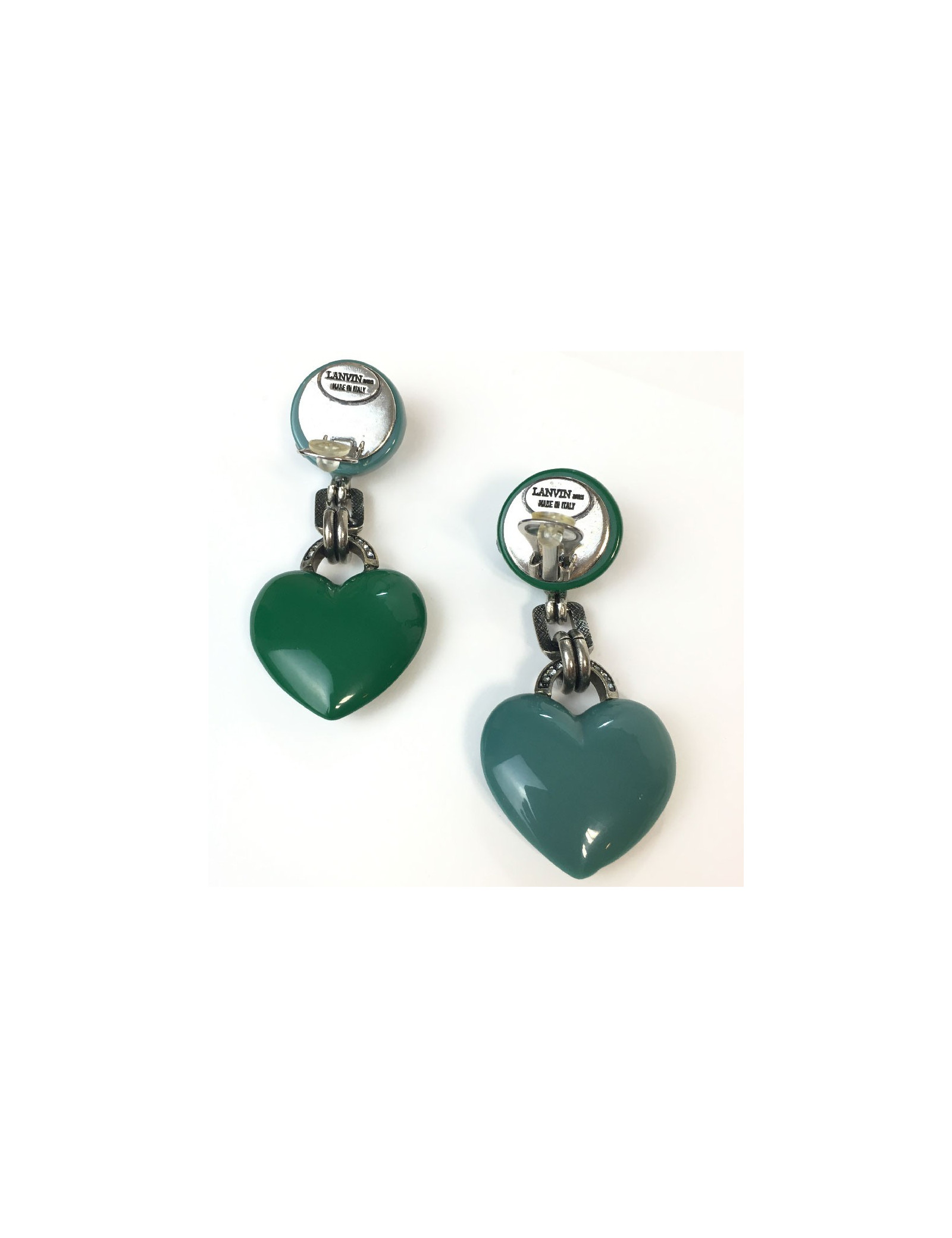 Boucles d'oreille clips Lanvin vert et bleu, strass par Albert Elbaz