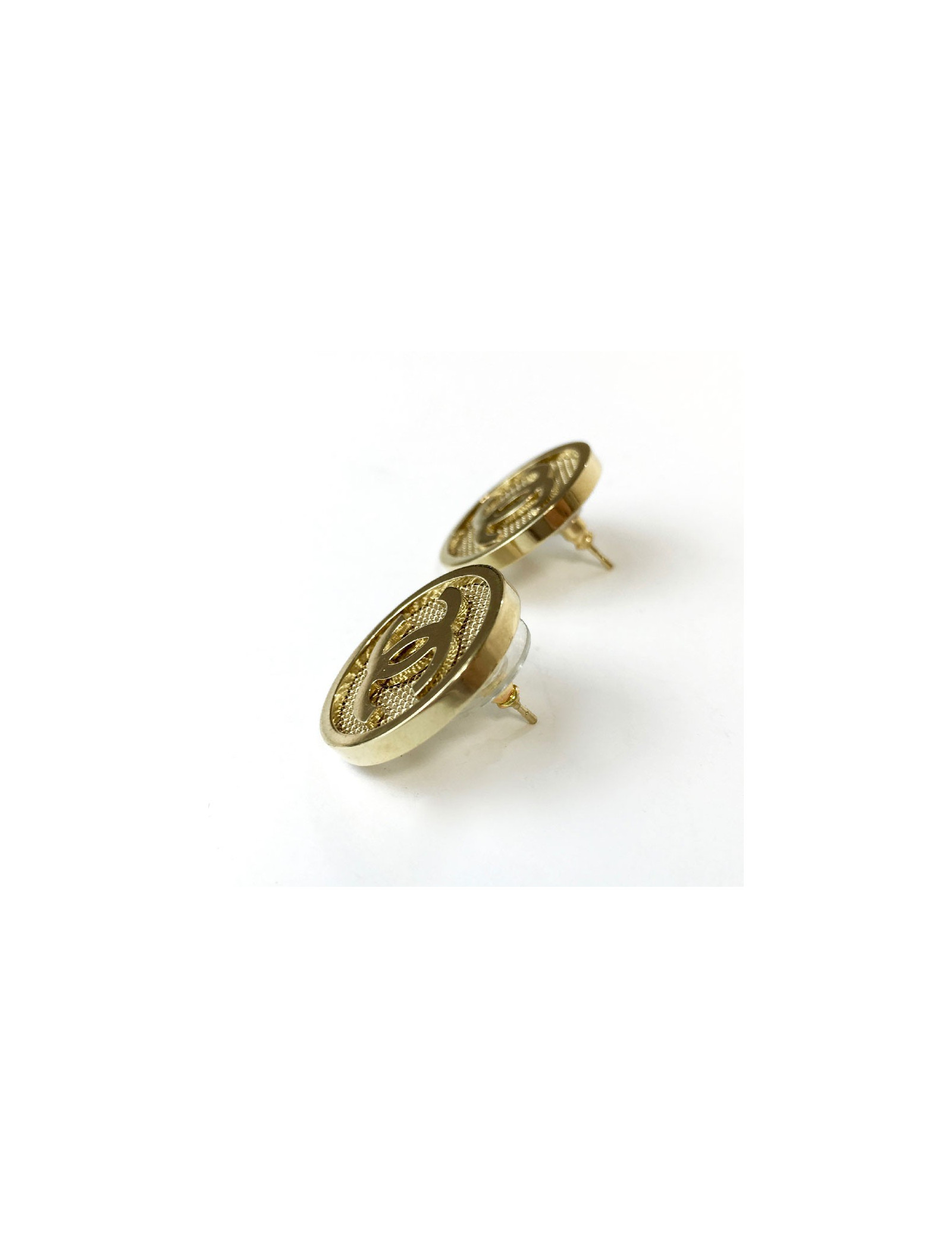 Boucles d'oreille clous Chanel grillage dorés et CC :