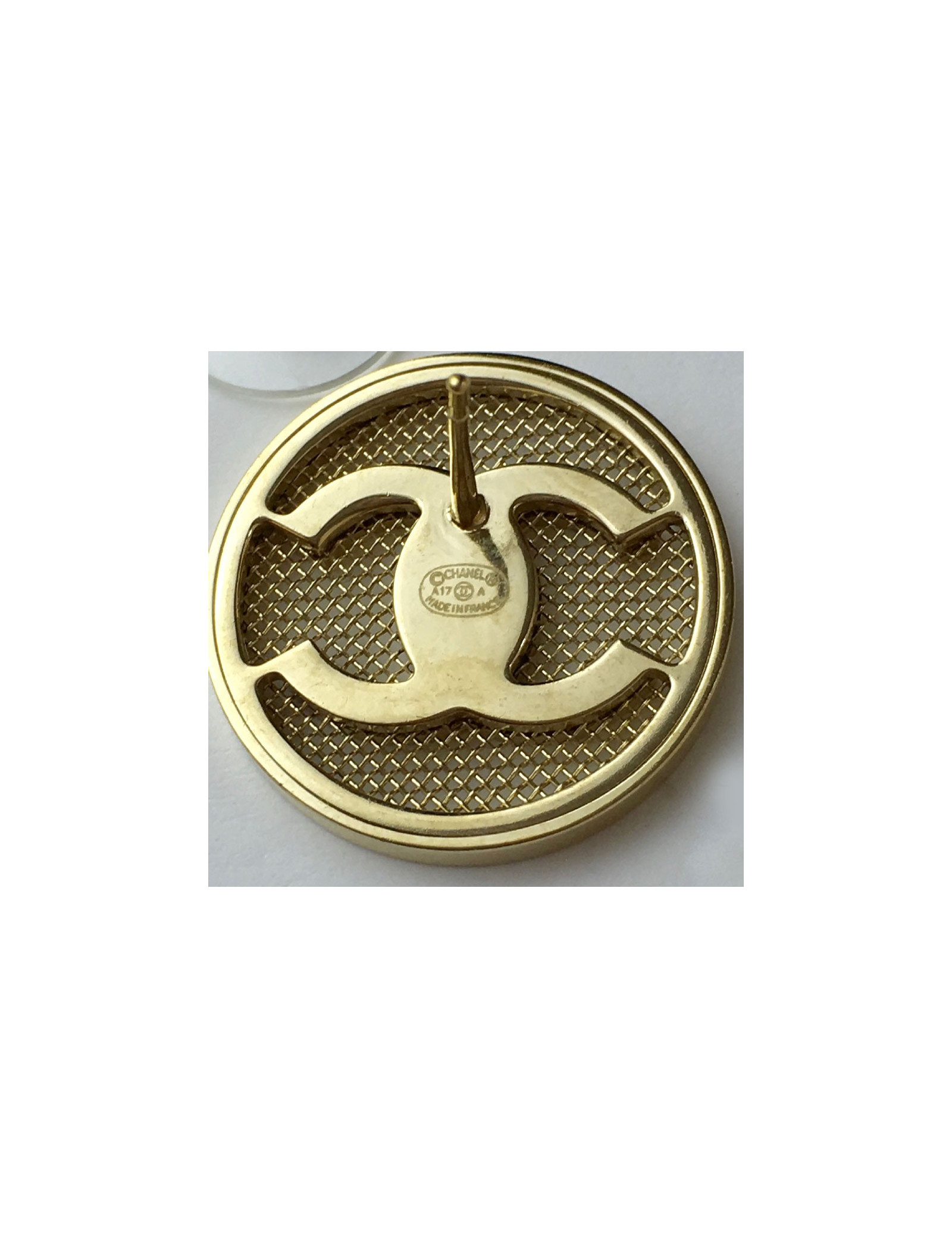 Ces boucles d’oreilles clous Chanel grillage en métal doré sur lesquelles reposent un CC aussi dorés sont superbes. Elles sont issues de la Collection Chanel Automne/Hiver 2017! C’est la paire de boucle d’oreille Chanel occasion récente la plus recherchée du moment! Surtout n’hésitez pas trop longtemps, elles sont vraiment très belles et ont les faveurs de notre équipe!