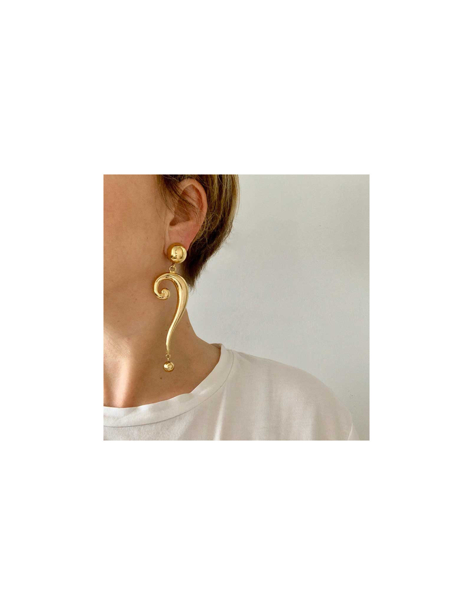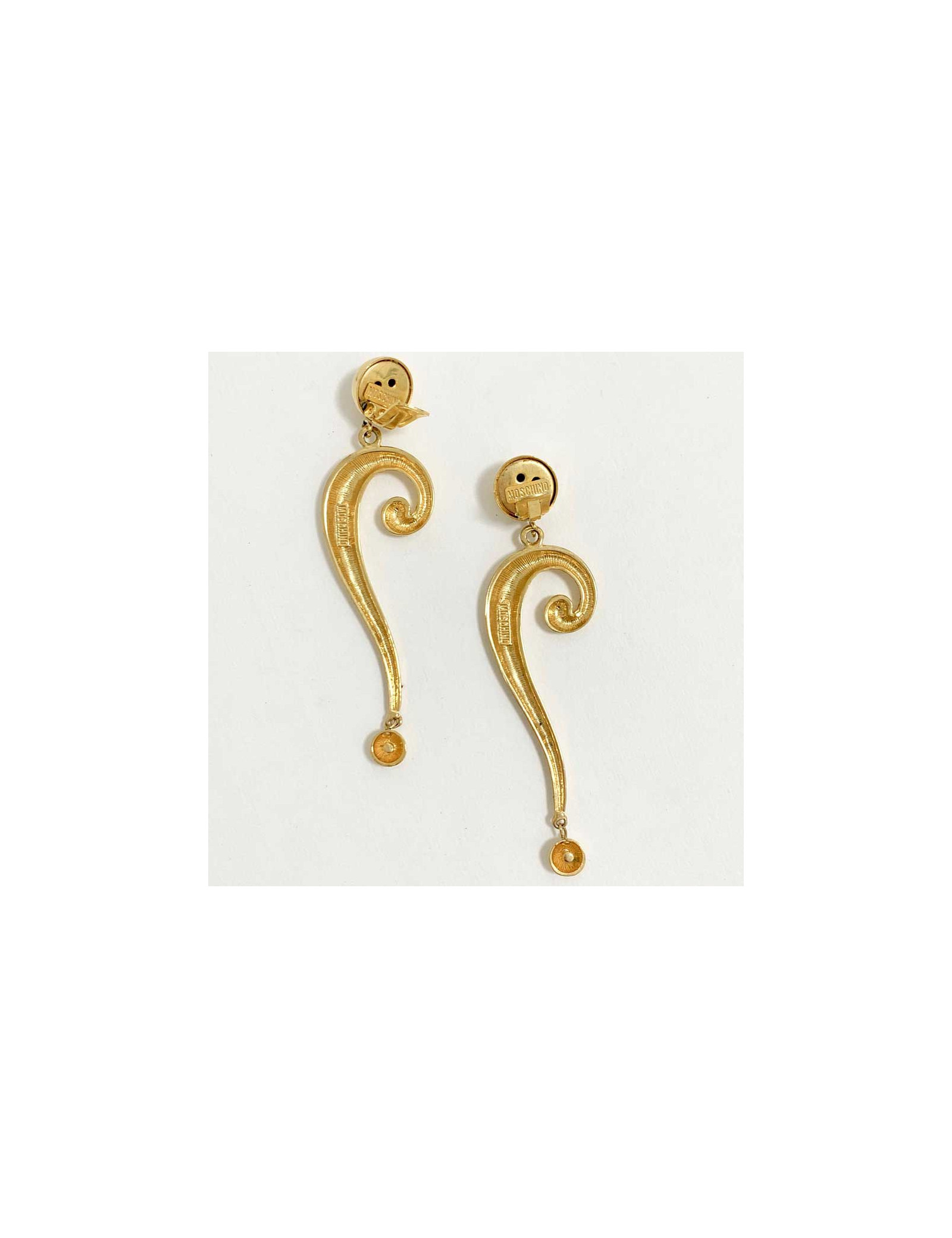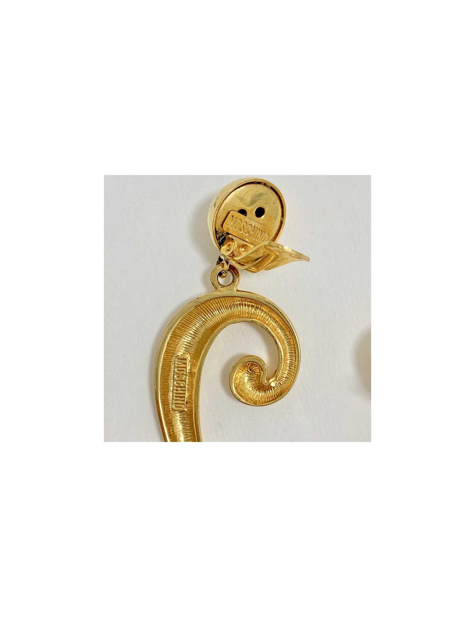 Boucles d'oreille clips très légères de la Maison MOSCHINO. Elles sont en métal doré. Le clip tient bien aux oreilles.