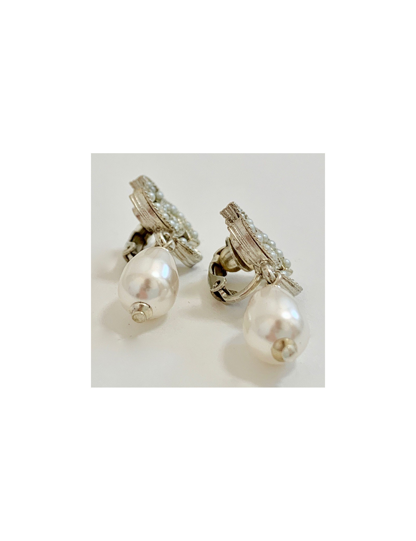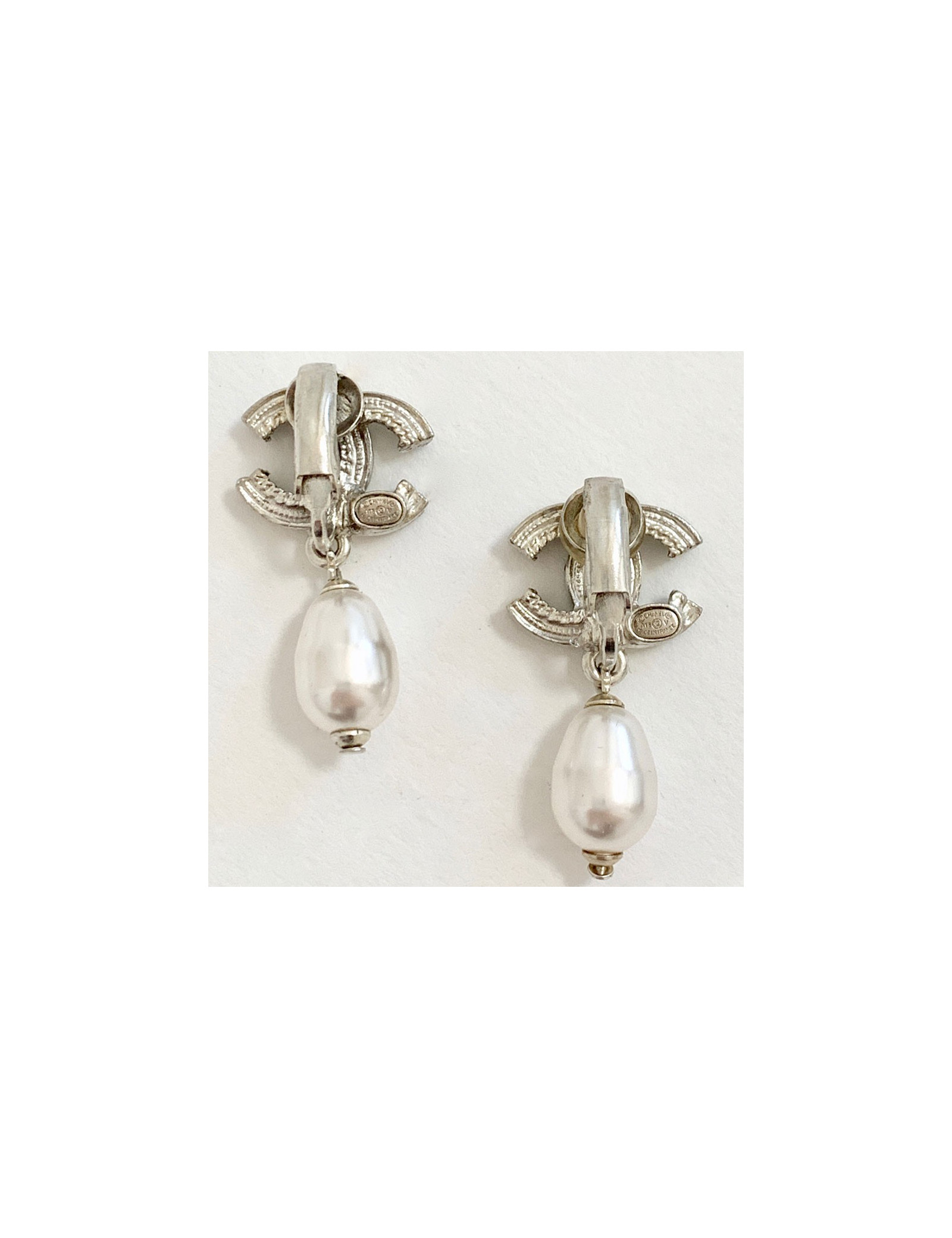 Clips perle nacrée CHANEL et CC perlé