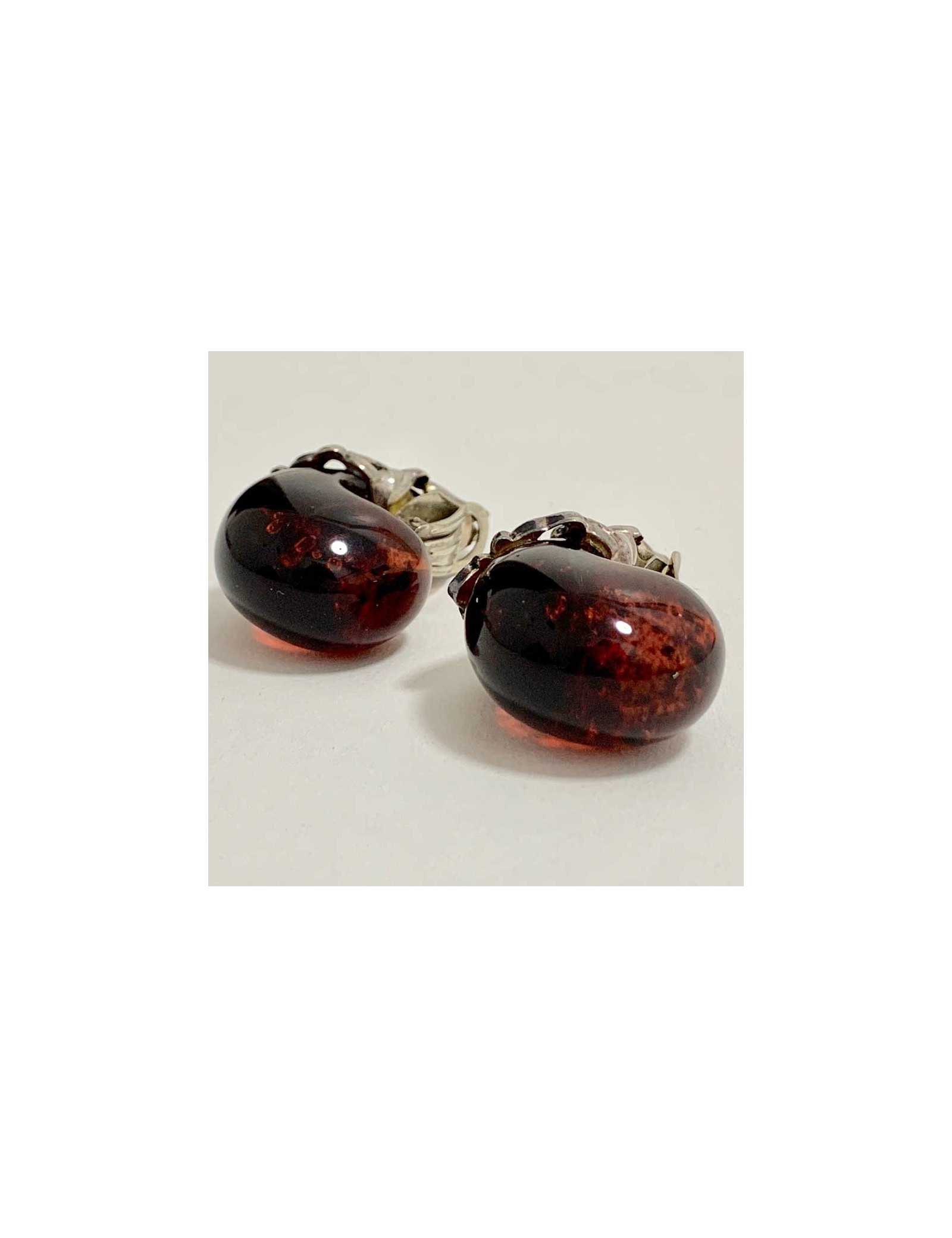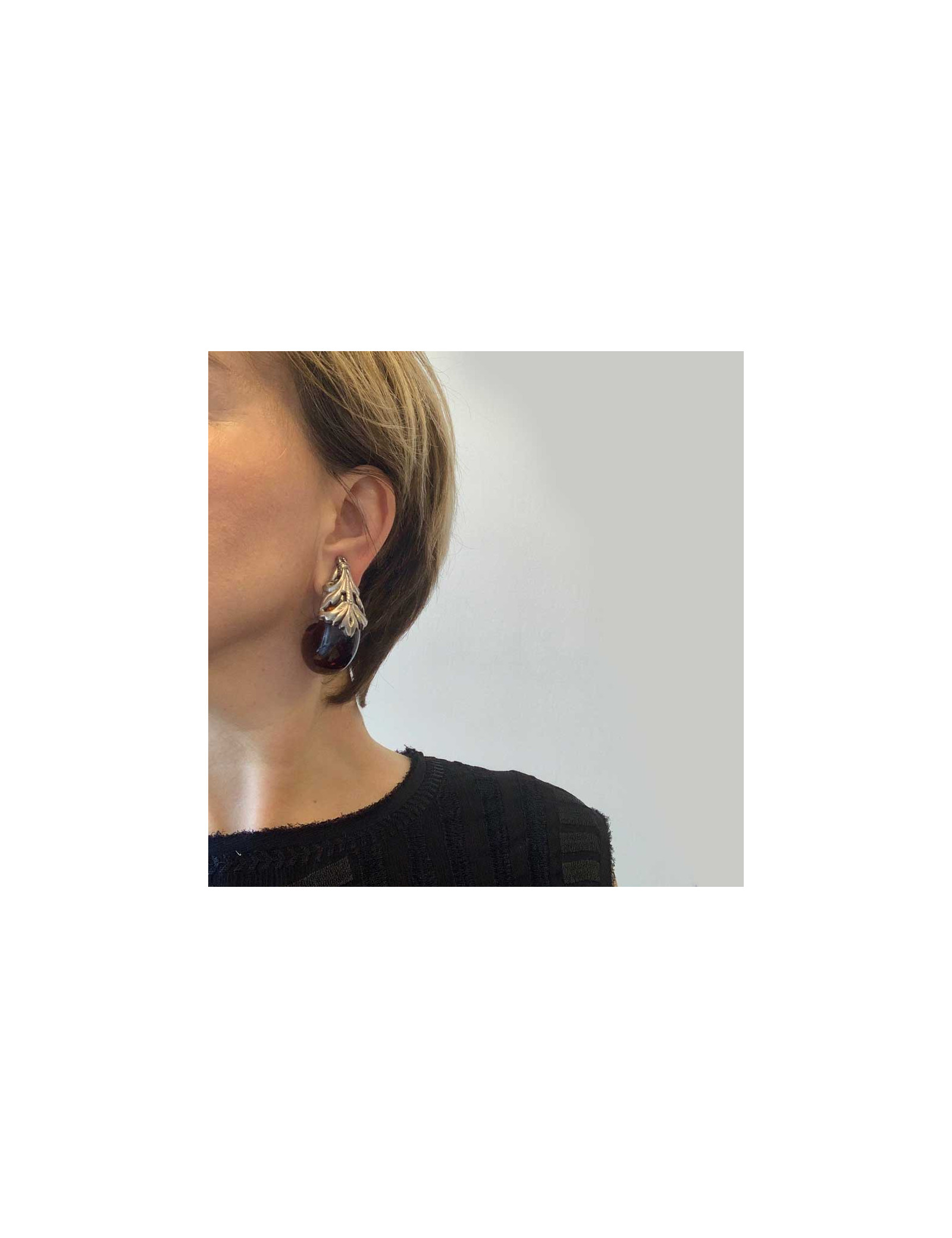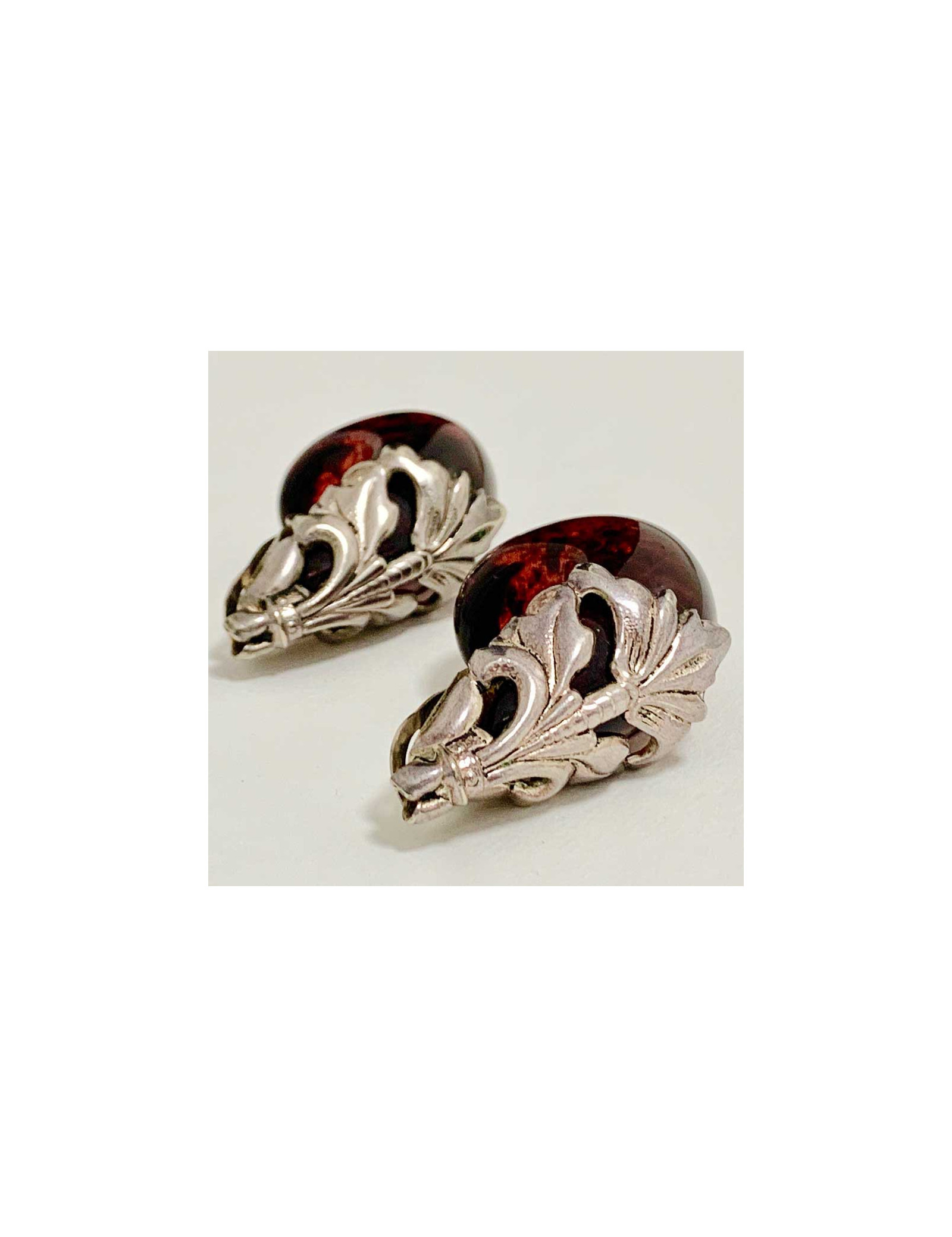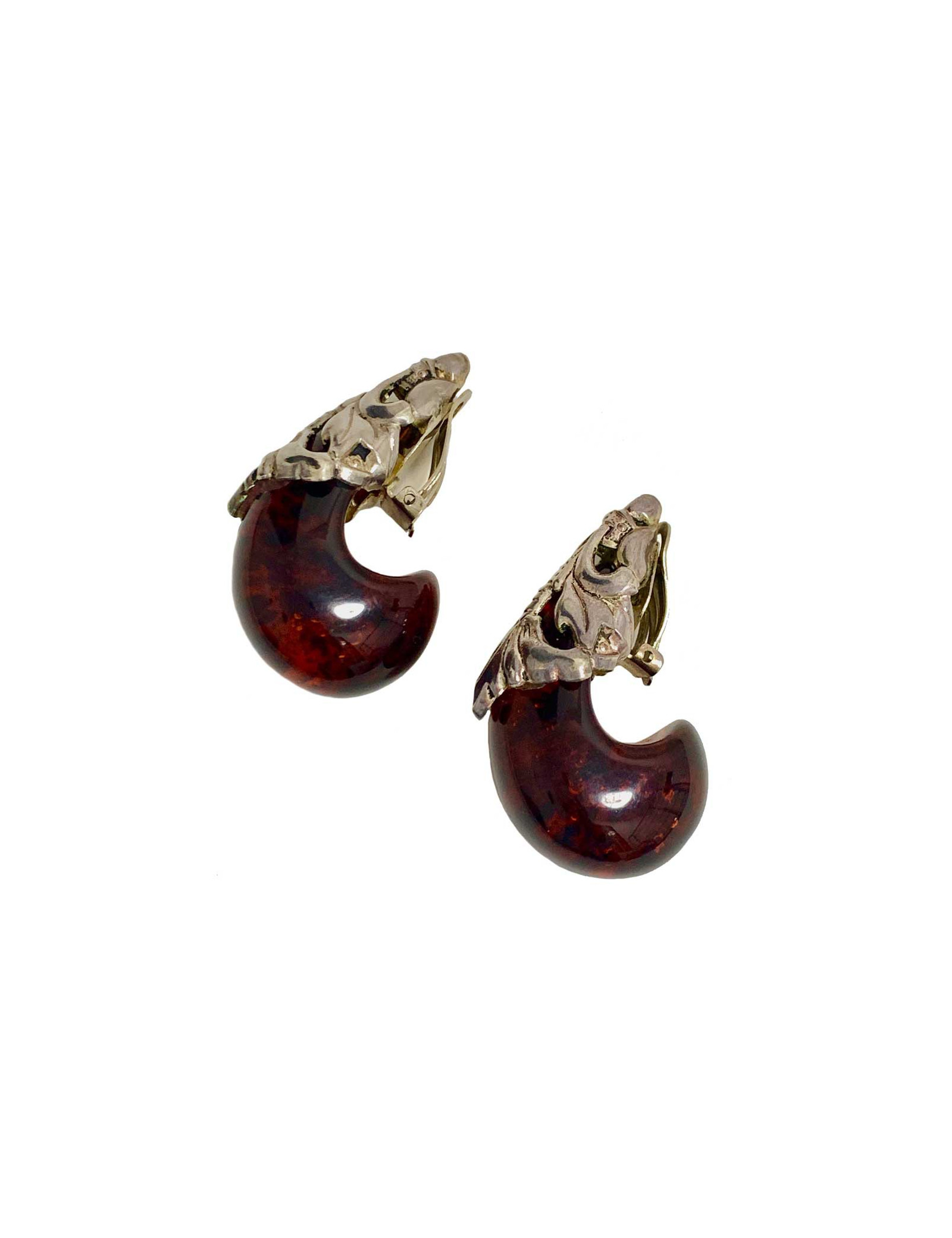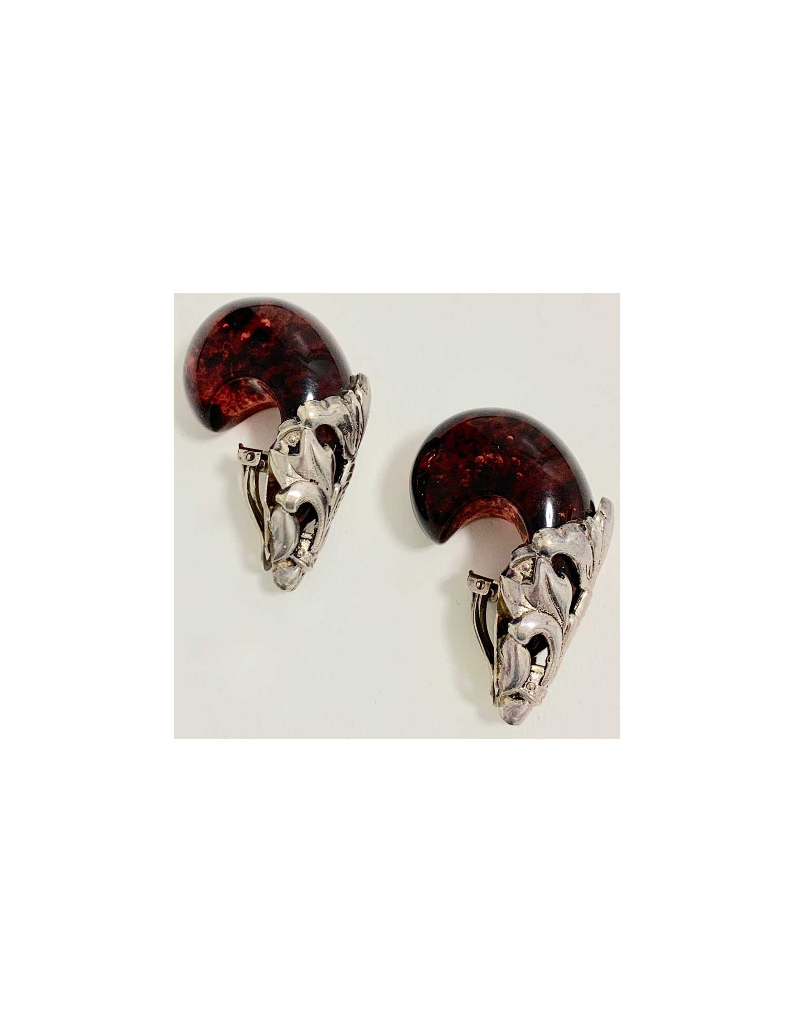 Les clips sont en résine de couleur ambre foncé et métal argent vieilli.