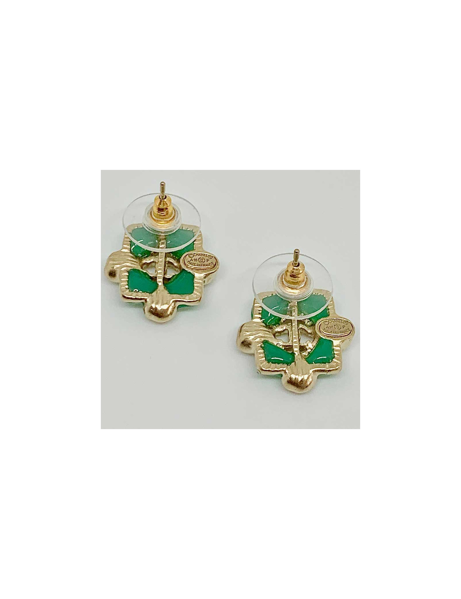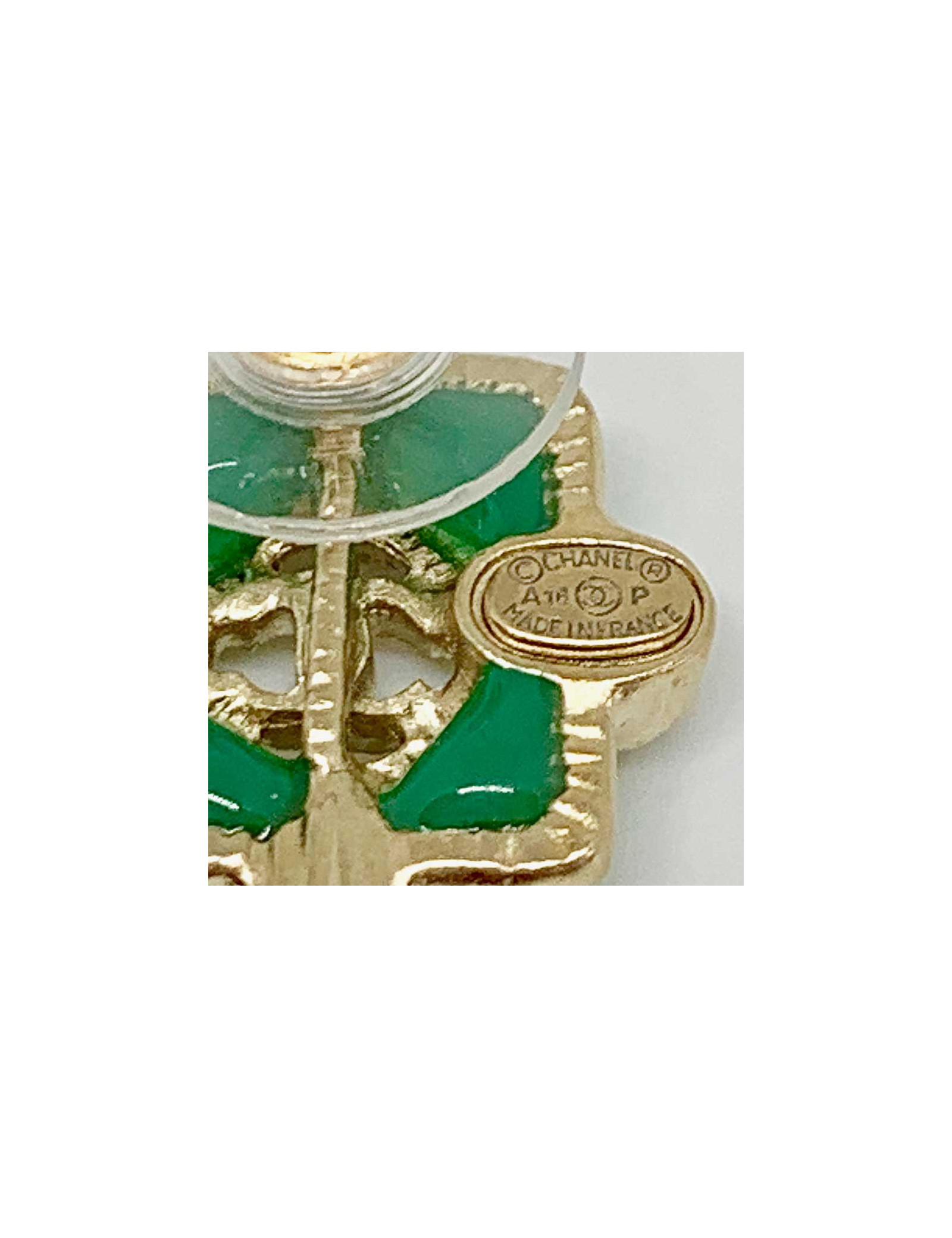 Ravissants clous d’oreille CHANEL en métal doré à l’or fin et perles vertes et nacrées. Très élégantes. Issues de la Collection Automne/Hiver 2016.