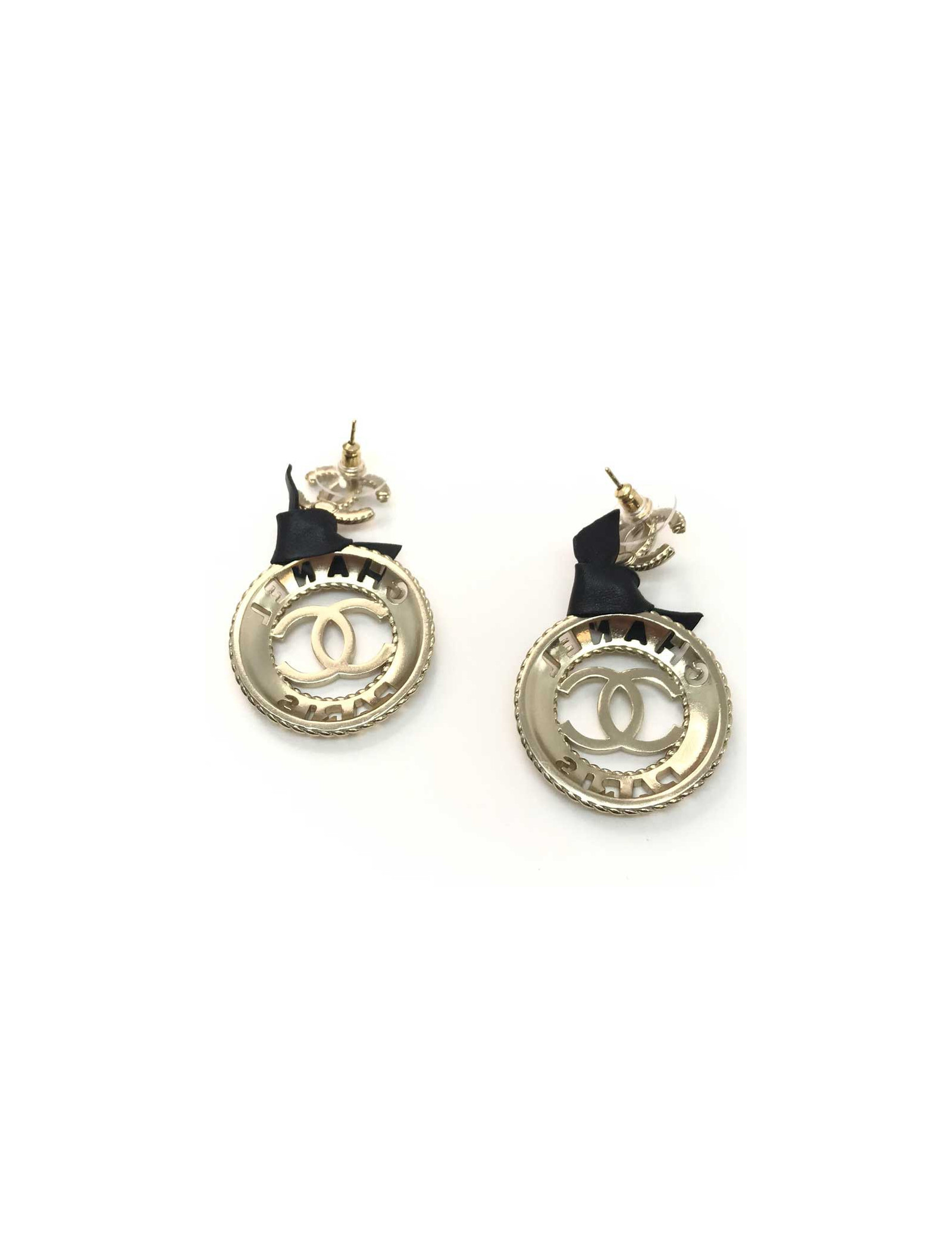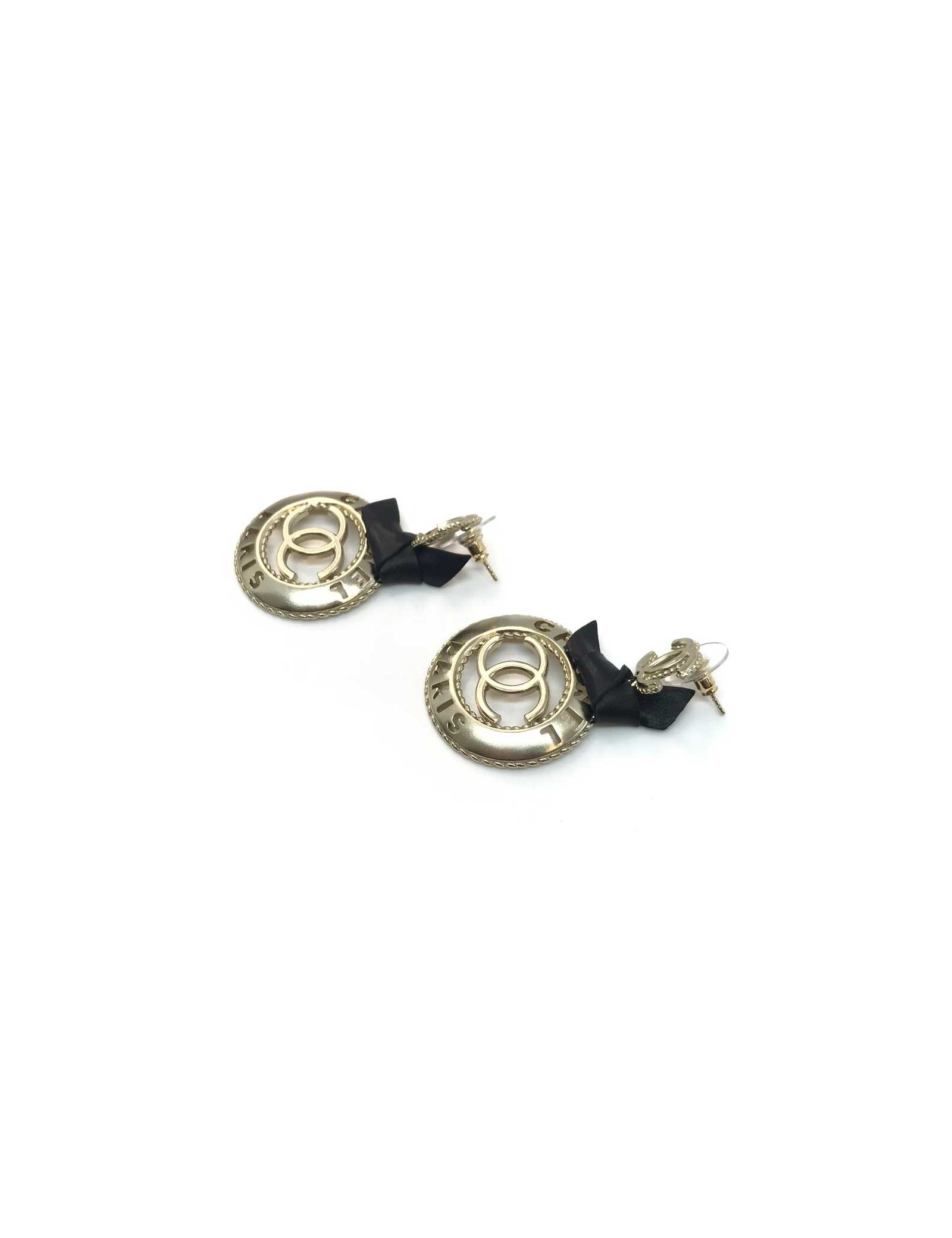 Boucles d'oreille CHANEL logo CC ruban noir