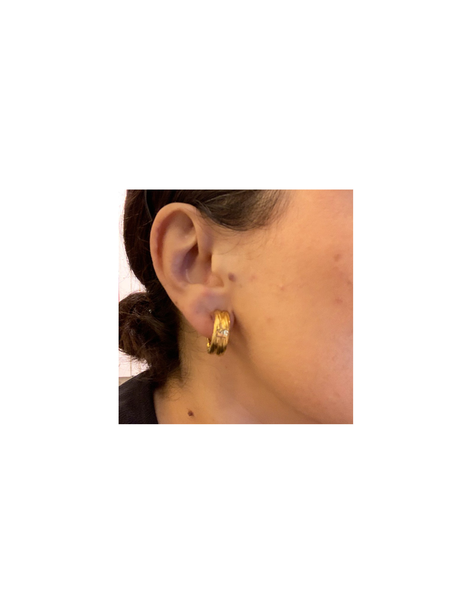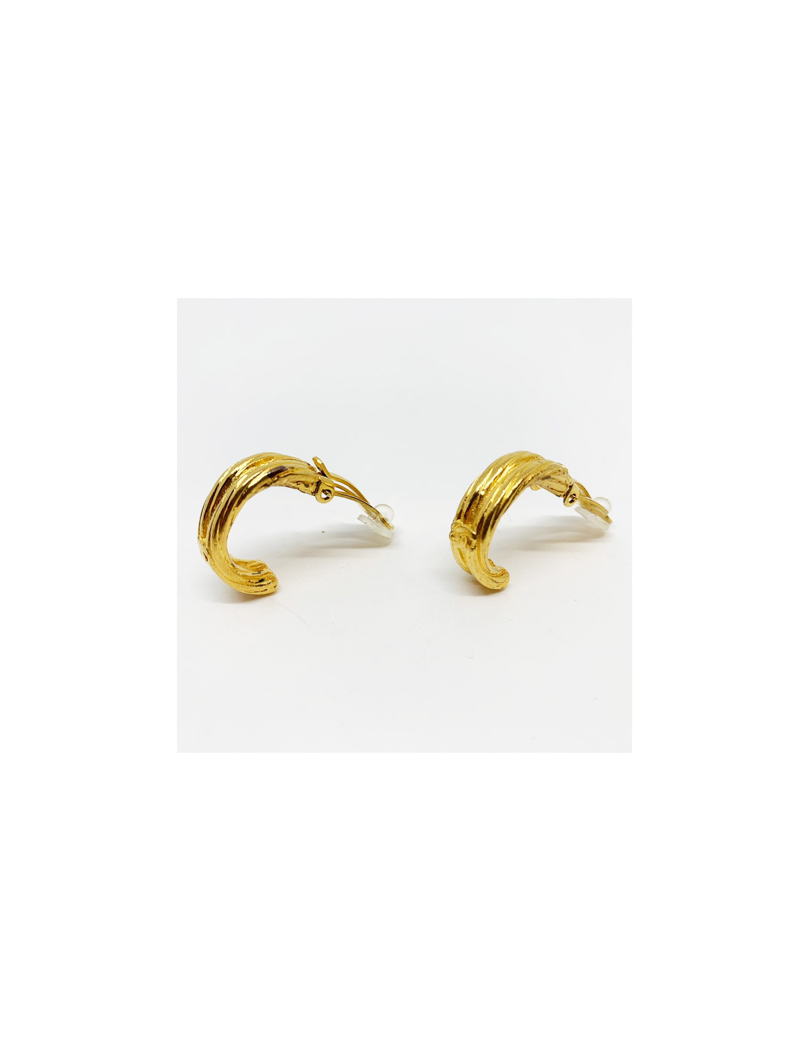 Les BO sont des clips vintage datant de l'année 1993. Ils sont en parfait état. Chacun mesure une longueur de 5 centimètres et le diamètre de l'anneau le plus important a un diamètre de 3.5 centimètres. Présence de la pastille de la marque et de la mention Made In France.