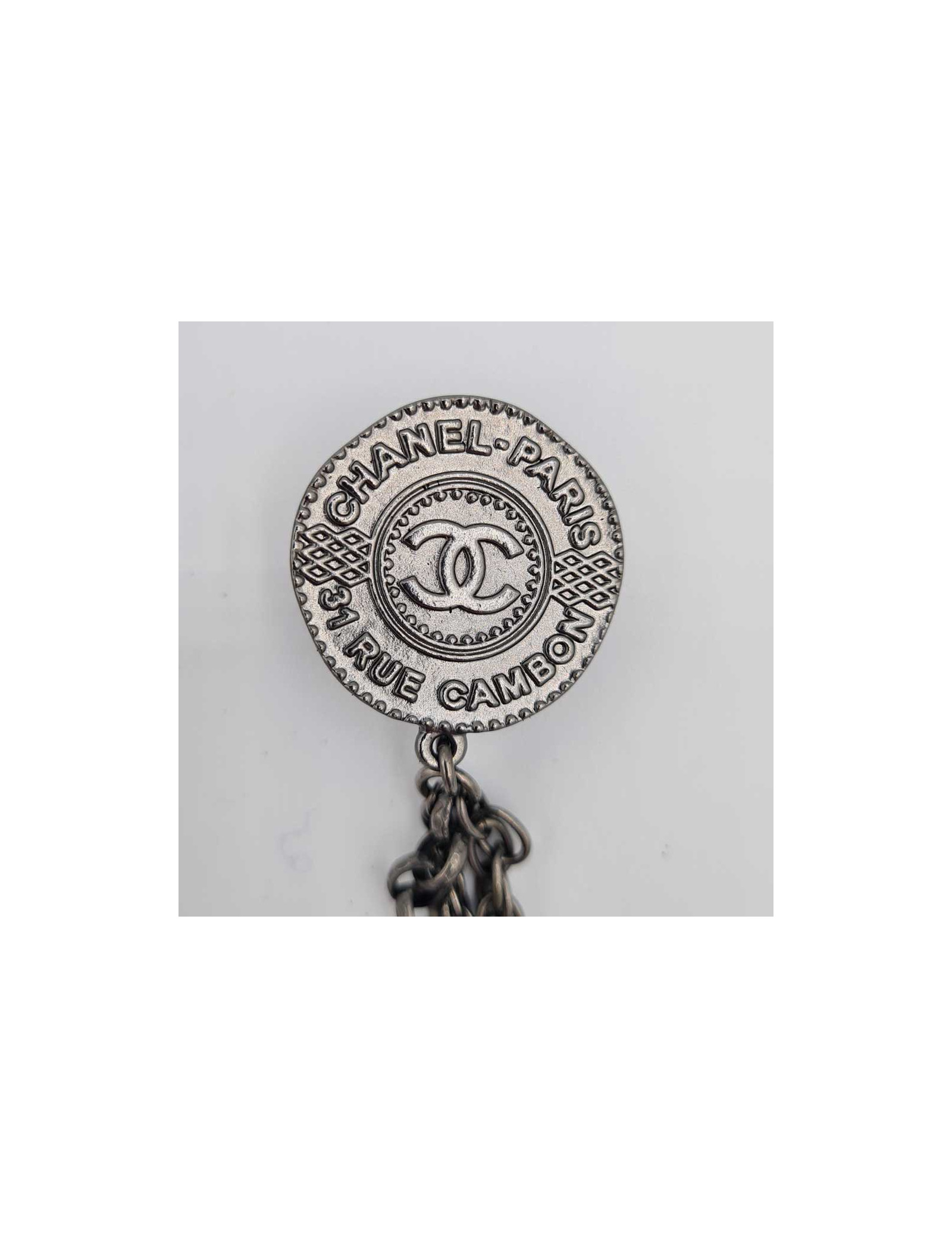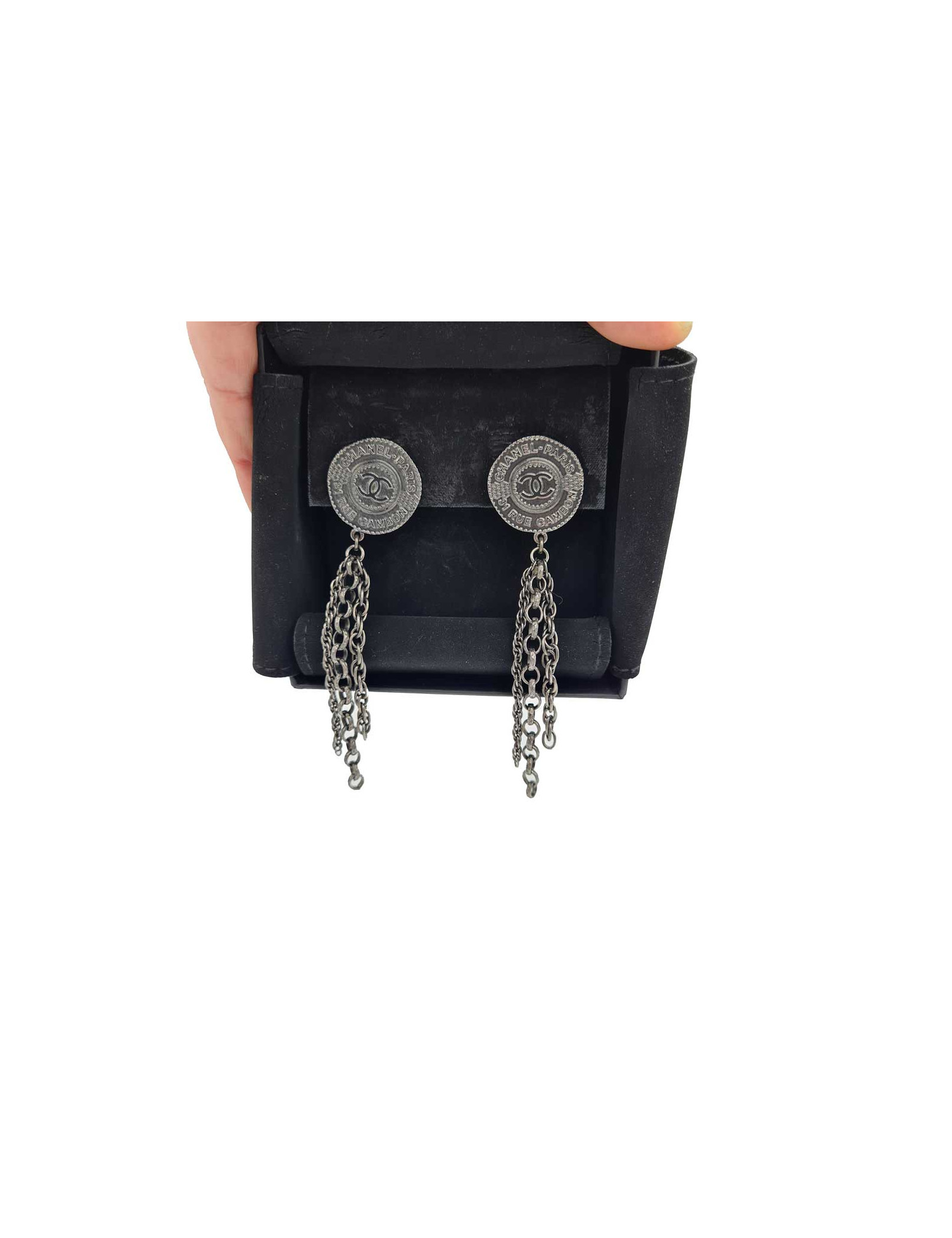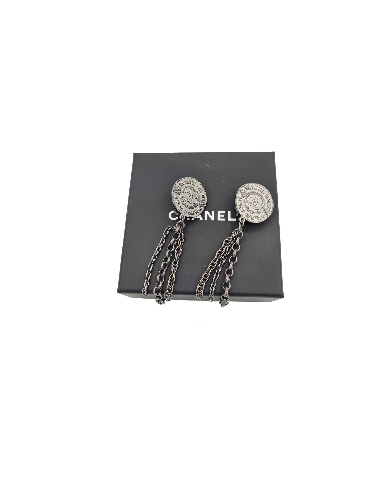 Boucles d'oreille CHANEL Paris - Dubai en métal argent foncé