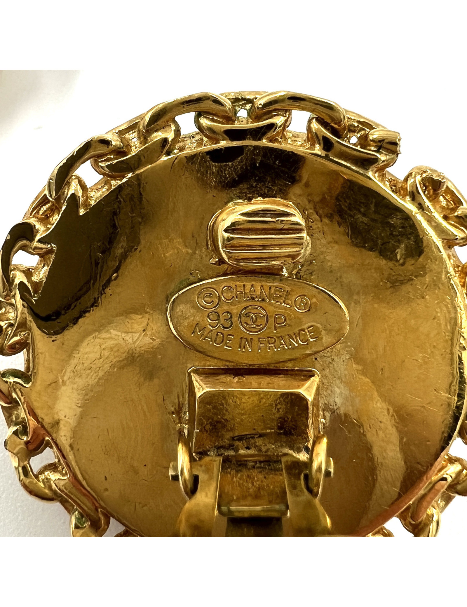 Vendu BOUCLES D'OREILLE Boucles d'oreille clips CHANEL matelassé CHANEL 38243 900,00 € Vintage Clips CHANEL matelassé doré Condition : très bon étatPays de fabrication : FranceMatière : métal plaqué orBijouterie : doréDimensions : 3 x 3 cmStamp : ouiAnnée : 1986Détails : clips carré avec iconique motif matelassé Chanel et signature CC Voir