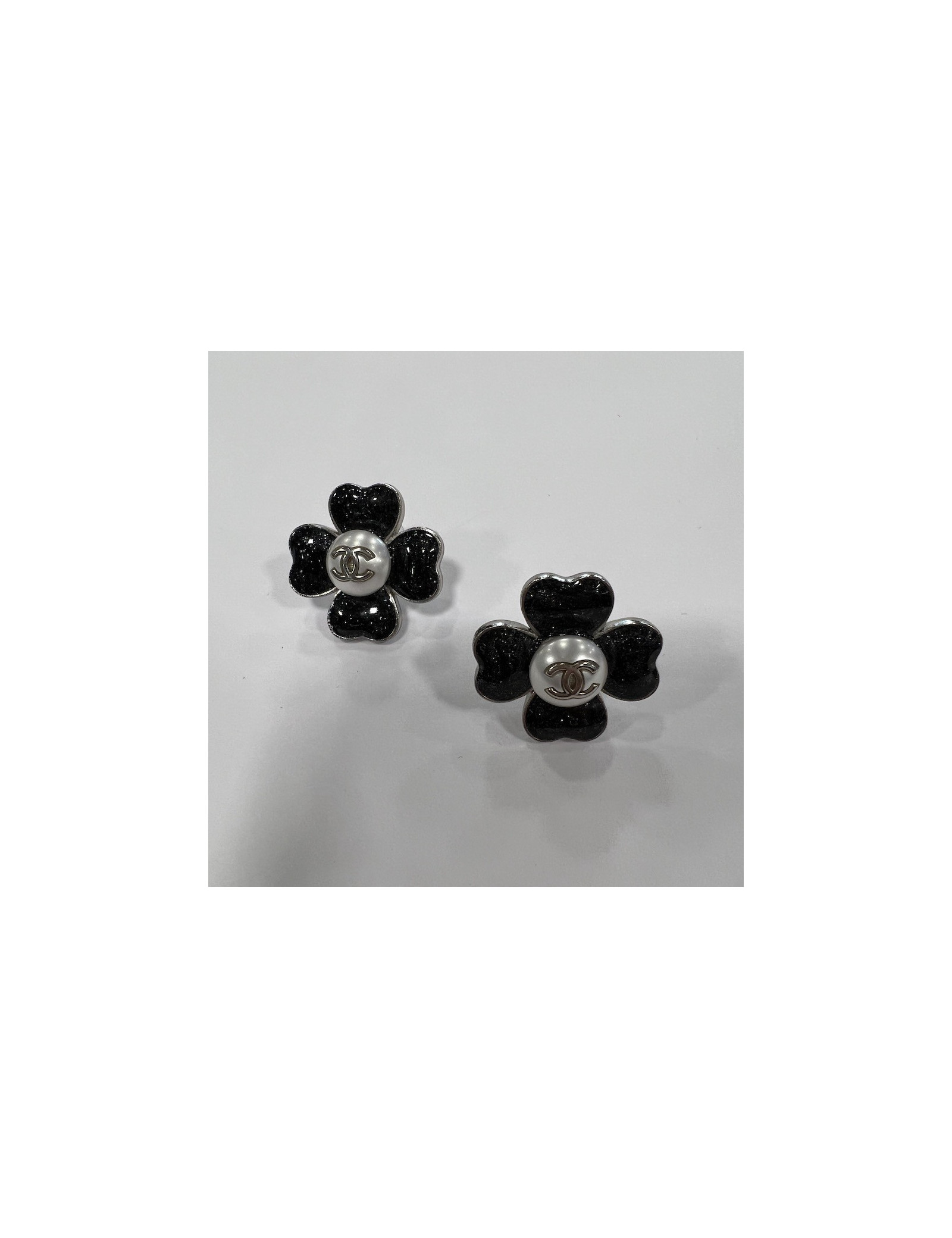 Clous trèfle Chanel noir pailleté