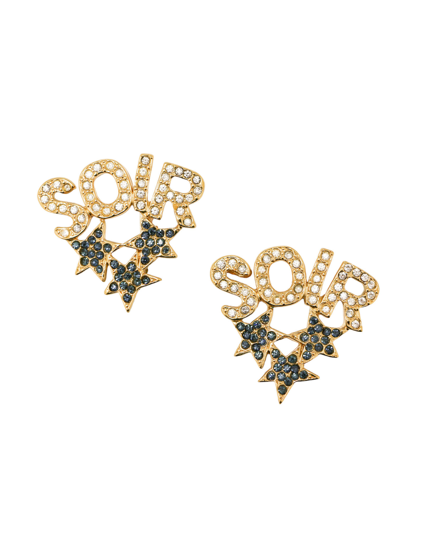 Détails : inscription "SOIR" et étoiles avec multiples strass/brillants bleus et blancs. Aucun strass manquant.
