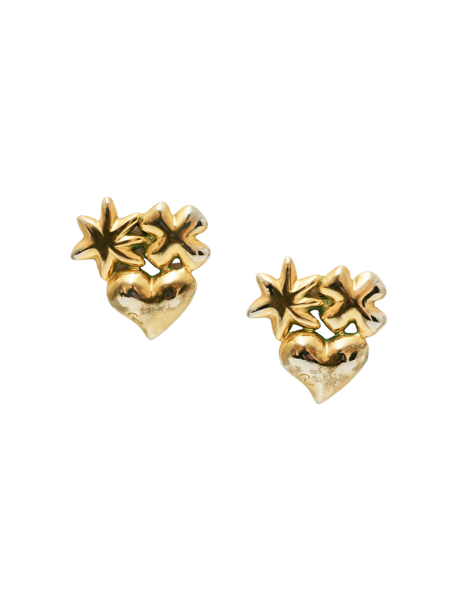 Détails : Clips LACROIX doré avec composition de trèfle, d’étoile et de cœur.