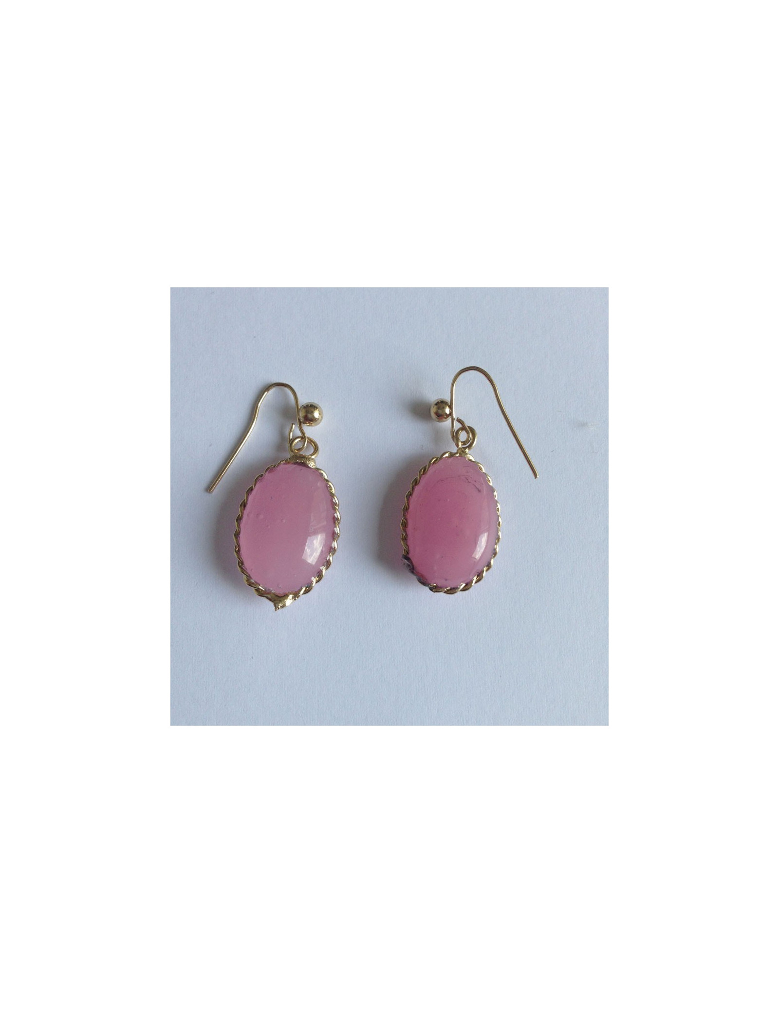 Clous d'oreilles Marguerite de Valois de forme ovale en pâte de verre rose et métal doré à l'or fin.