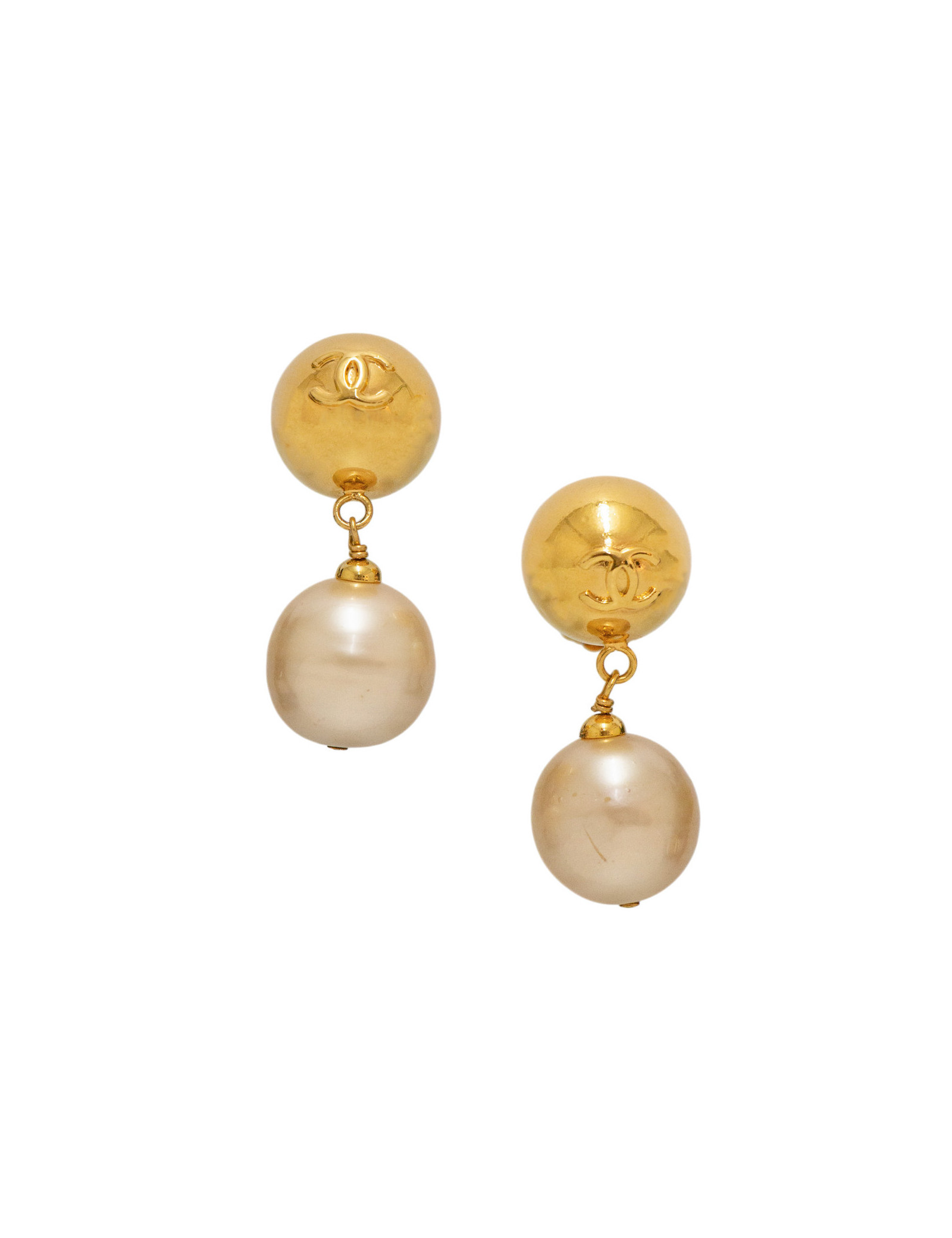 Chaque clip se compose de deux perles, la première est en métal doré, délicatement orné du célèbre logo CC entrelacé en relief. La deuxième est suspendue avec finesse, une perle en pâte de verre nacrée qui vient apporter douceur et contraste, offrant un équilibre parfait entre éclat et sophistication.