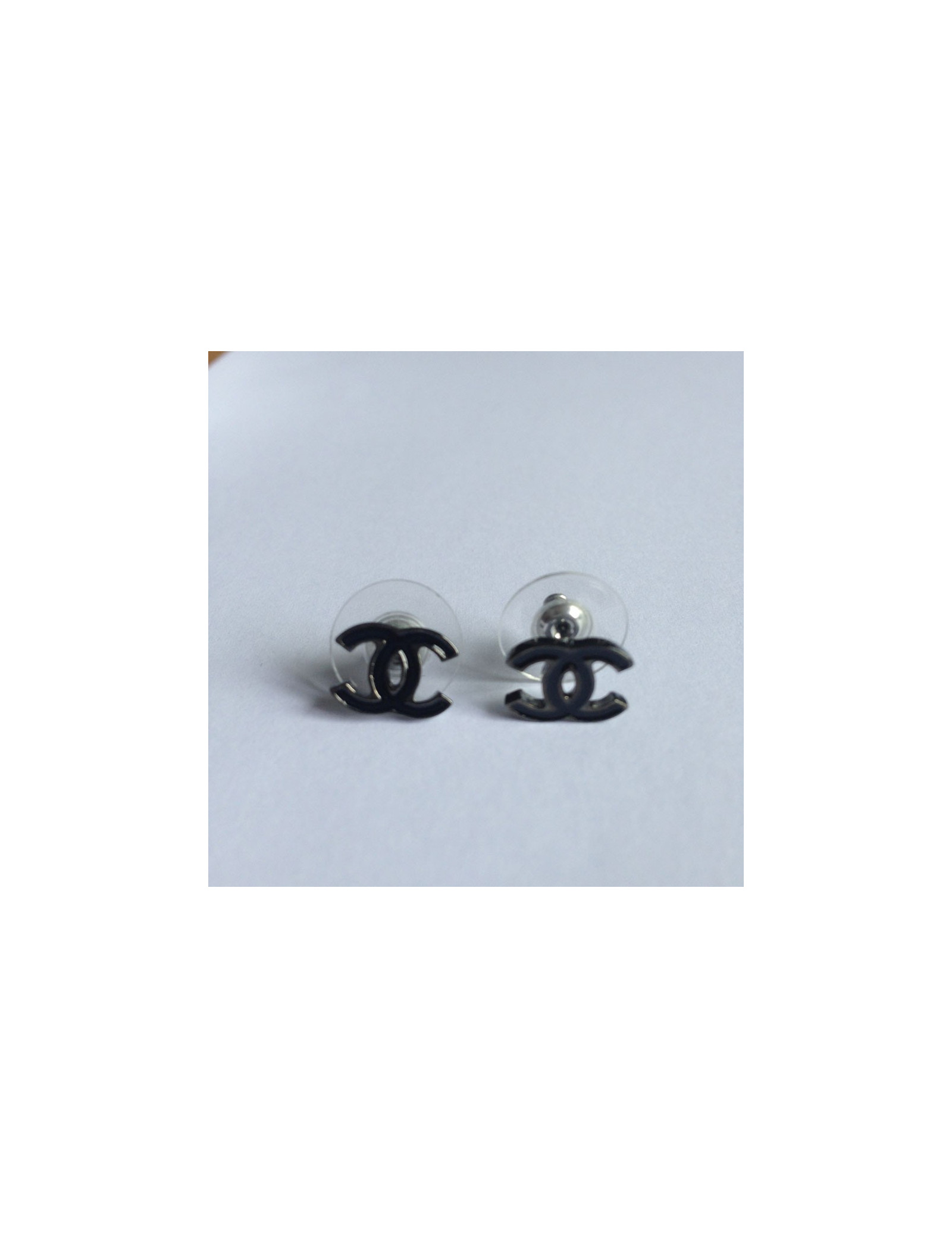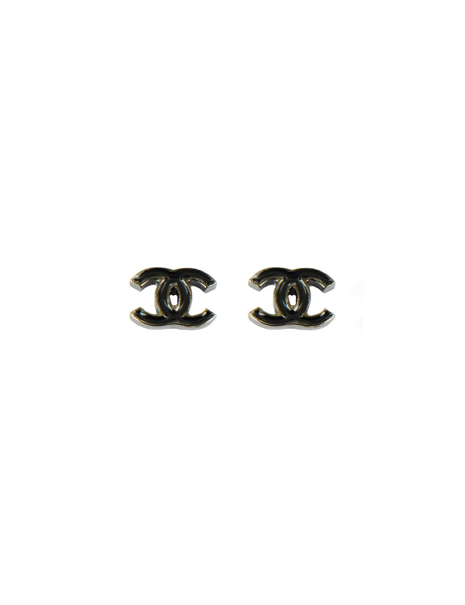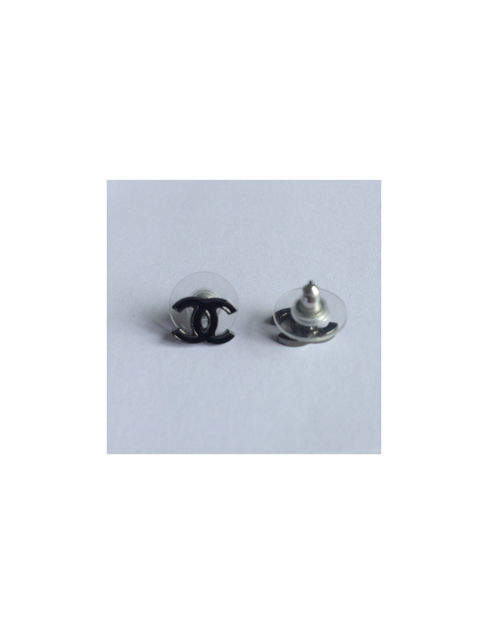 Mini clous d'oreille CHANEL en métal émaillé noir
