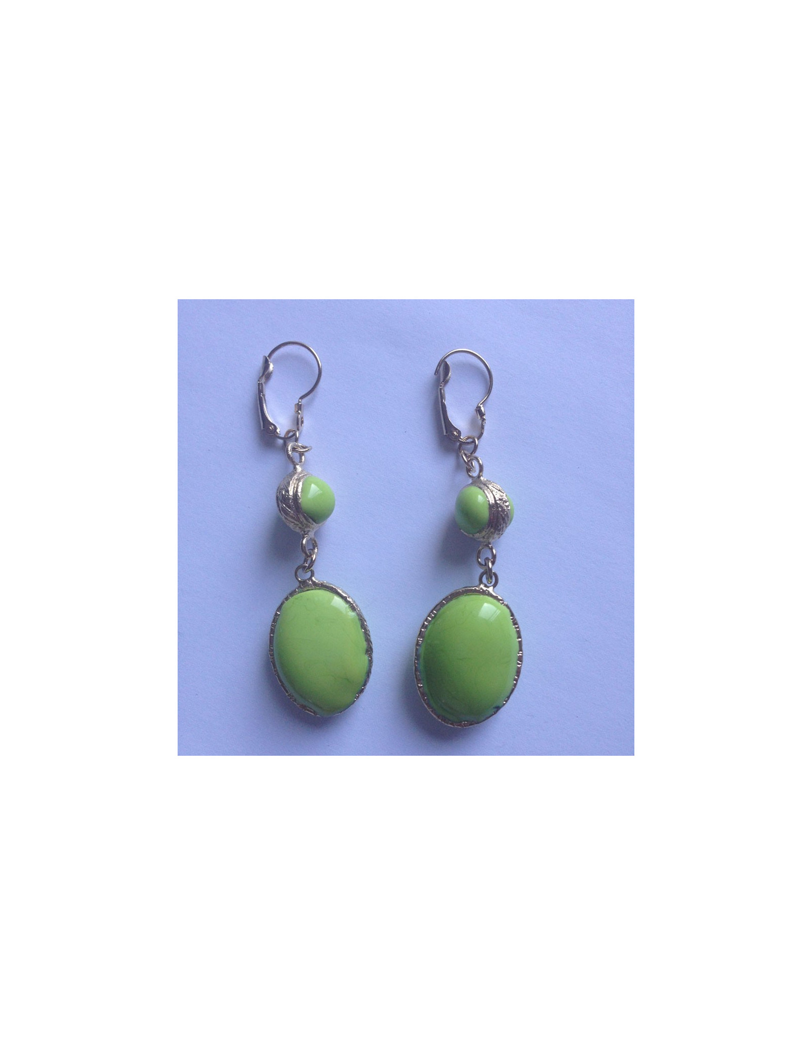Ravissantes clous d'oreilles Marguerite de Valois en pâte de verre vert anis et métal doré à l'or fin.