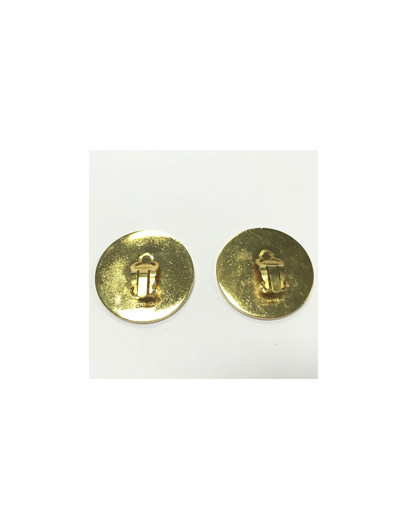 Boucles d'oreille Chanel cuir et métal doré