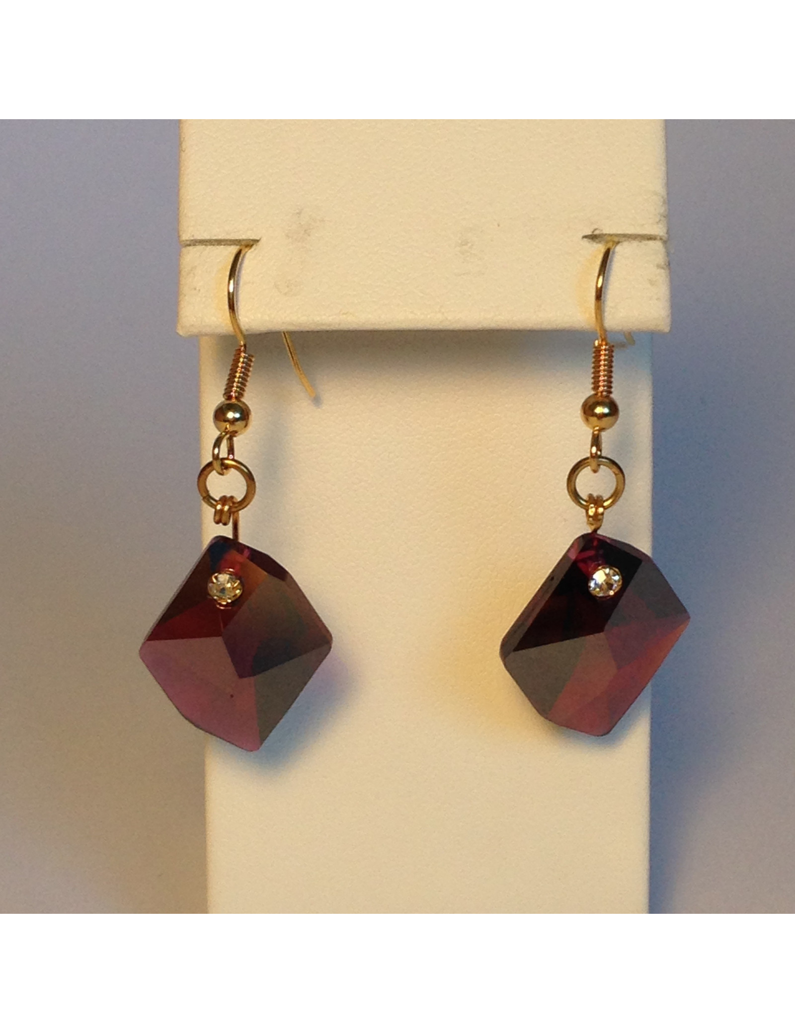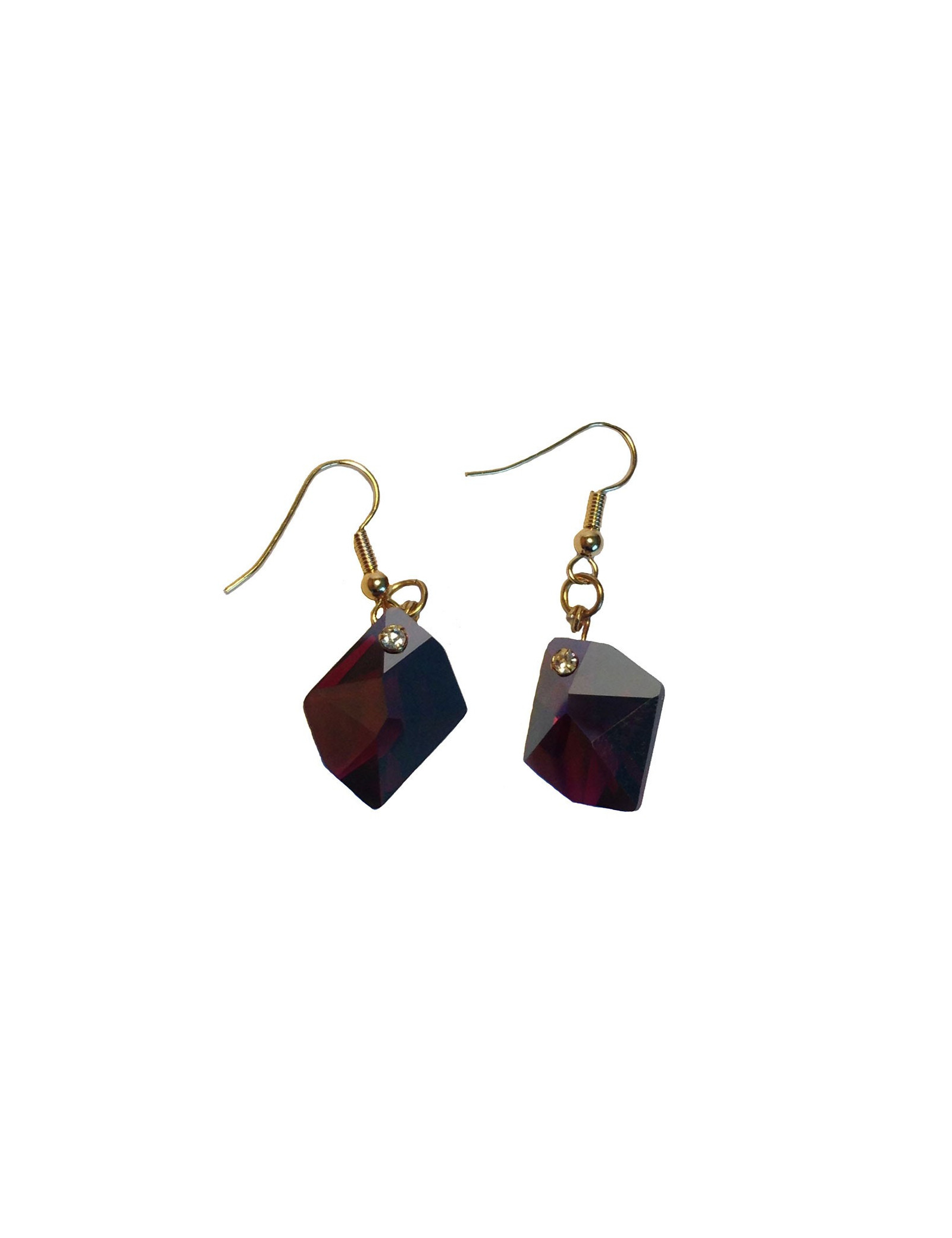 Clous d'oreilles Marguerite de Valois en cristaux swarovski siam (rouge) surmonté d'un strass en serti clos en métal doré à l'or fin.