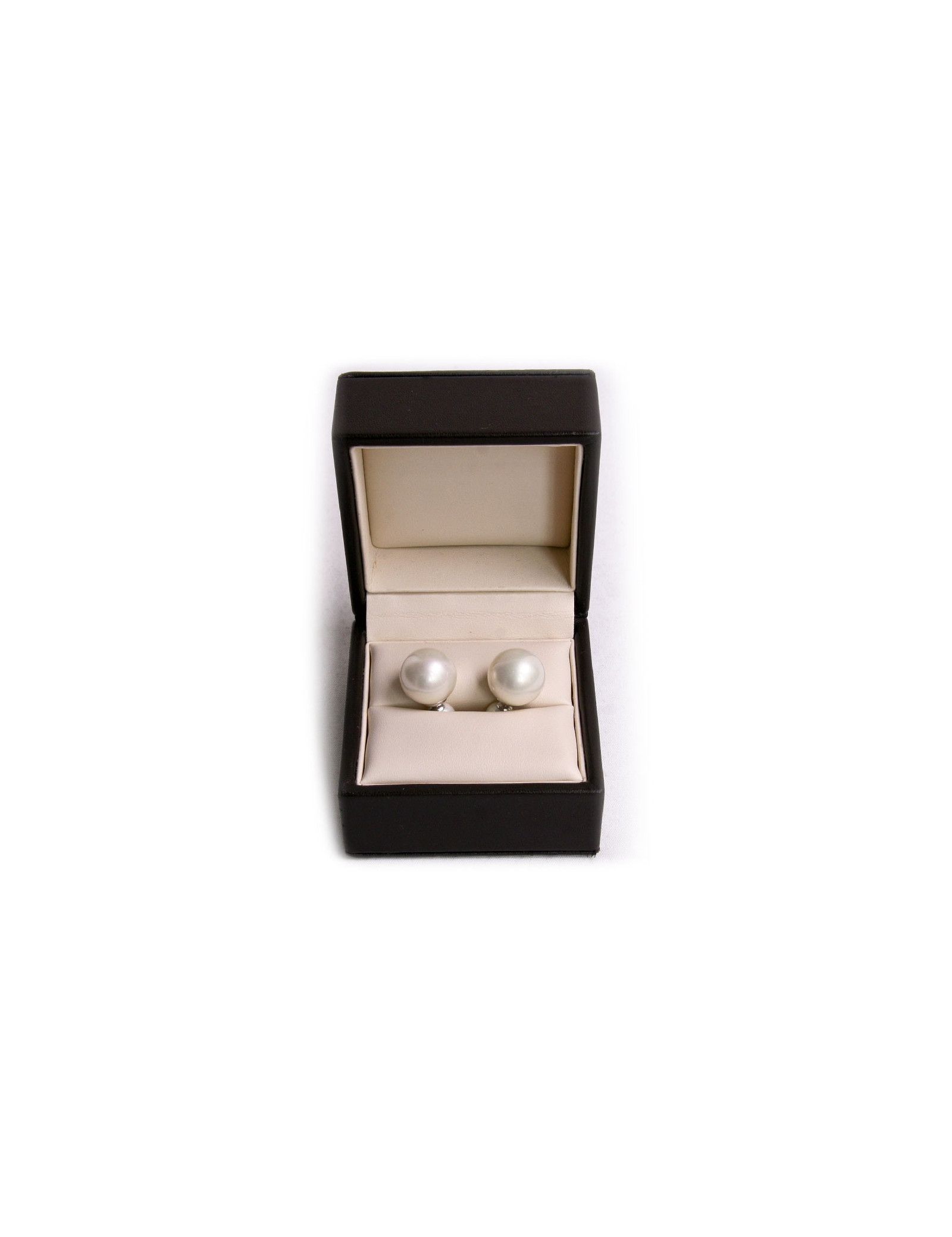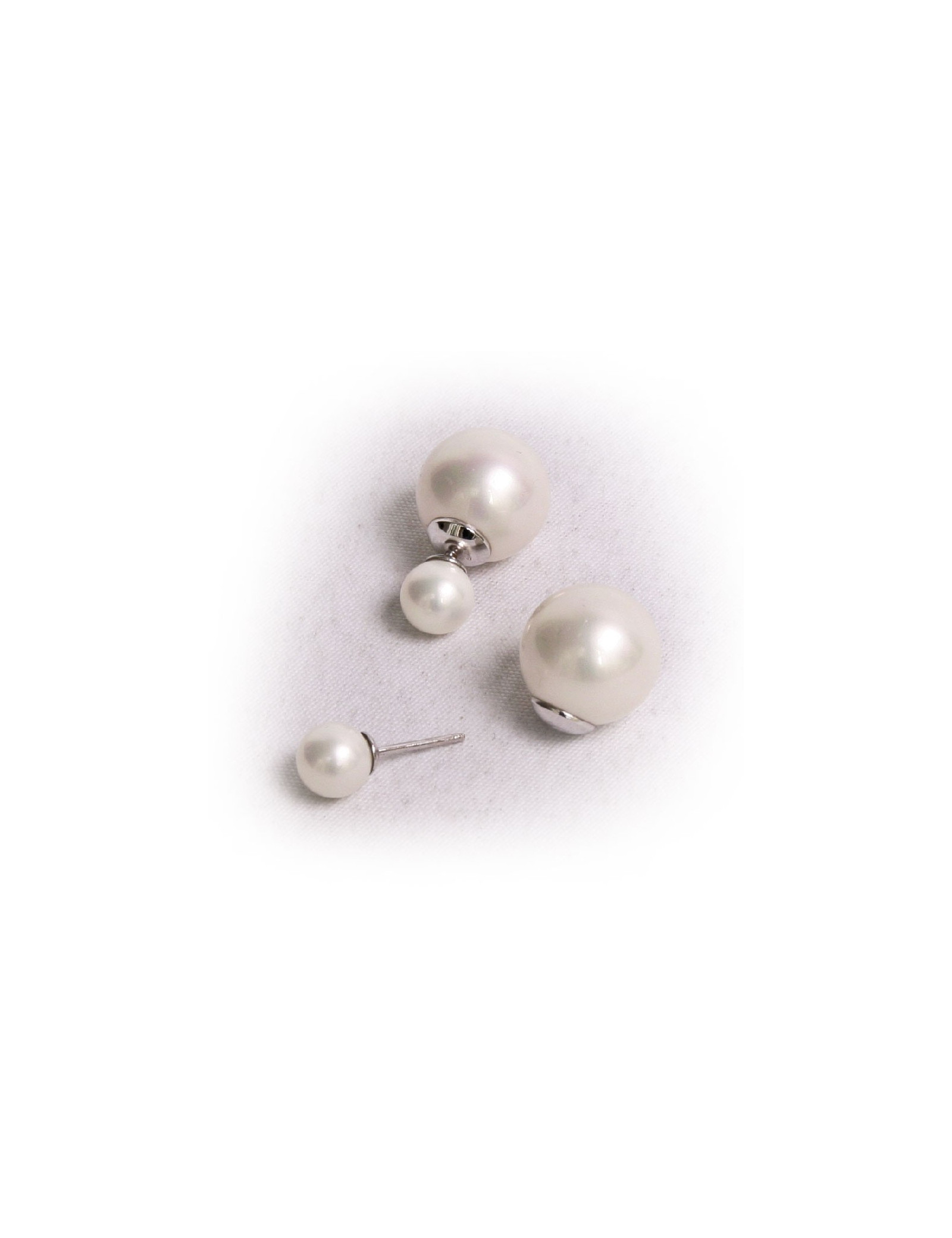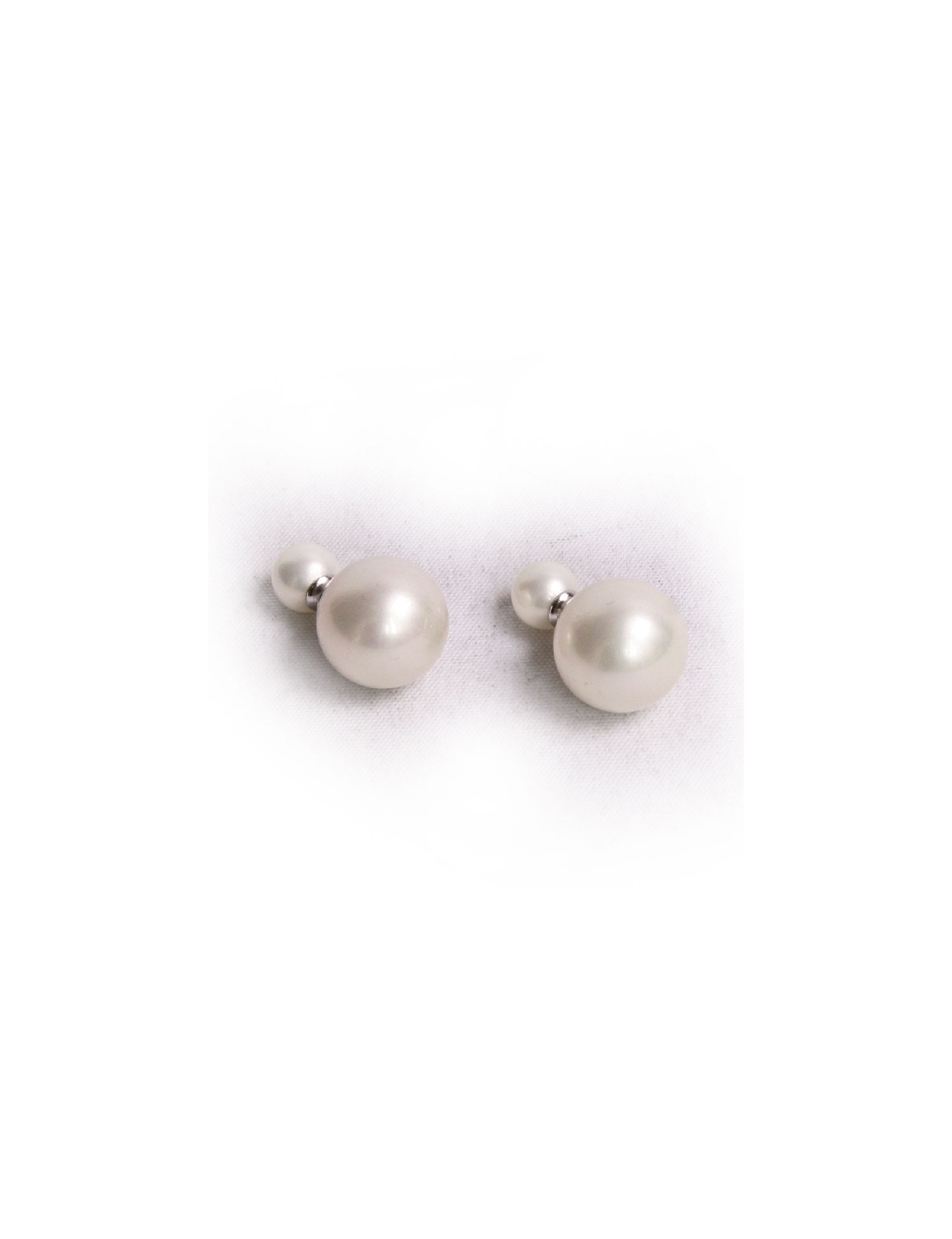 Clous d'oreilles en perles nacrées et métal palladié, sans marque. Ils sont en très bon état.