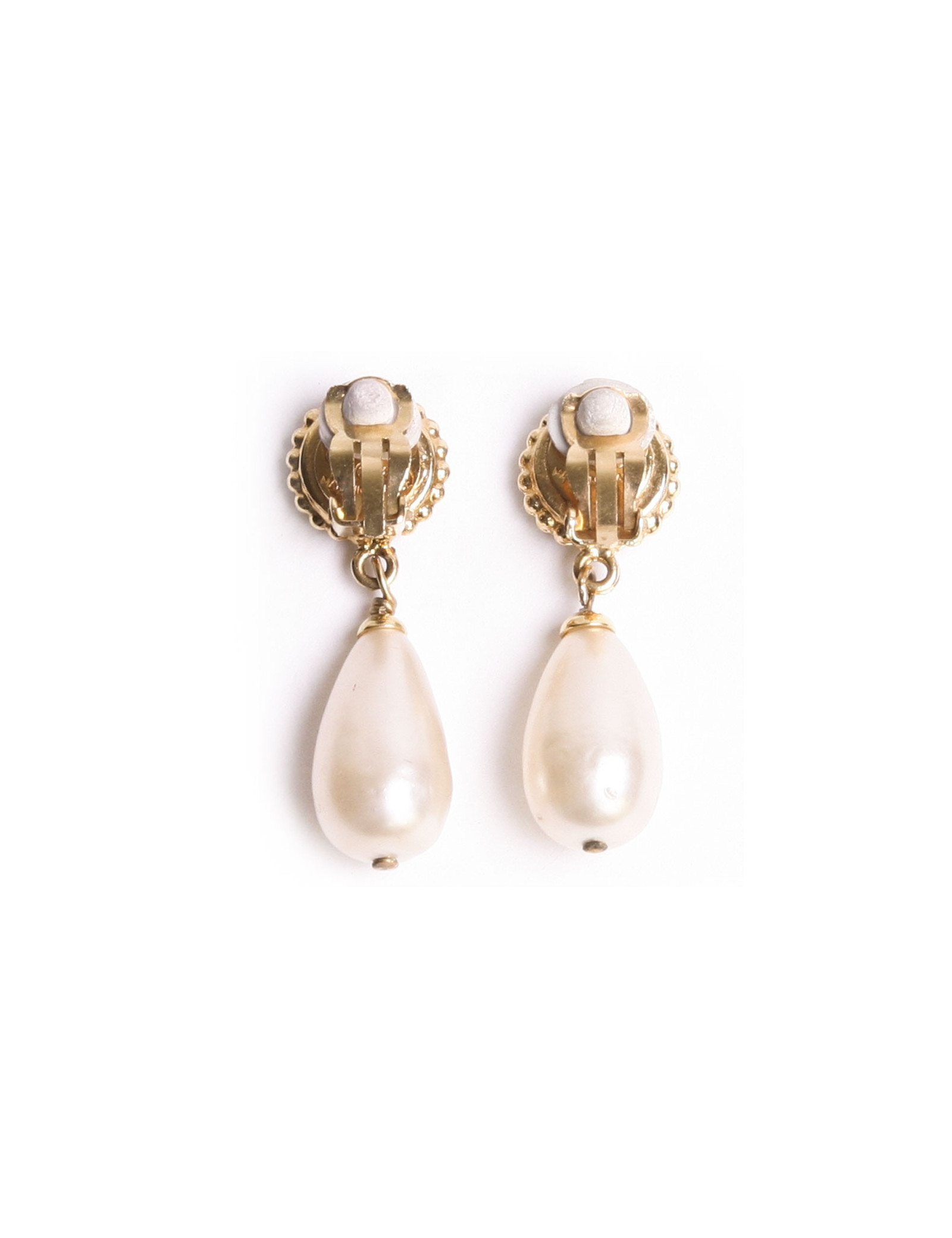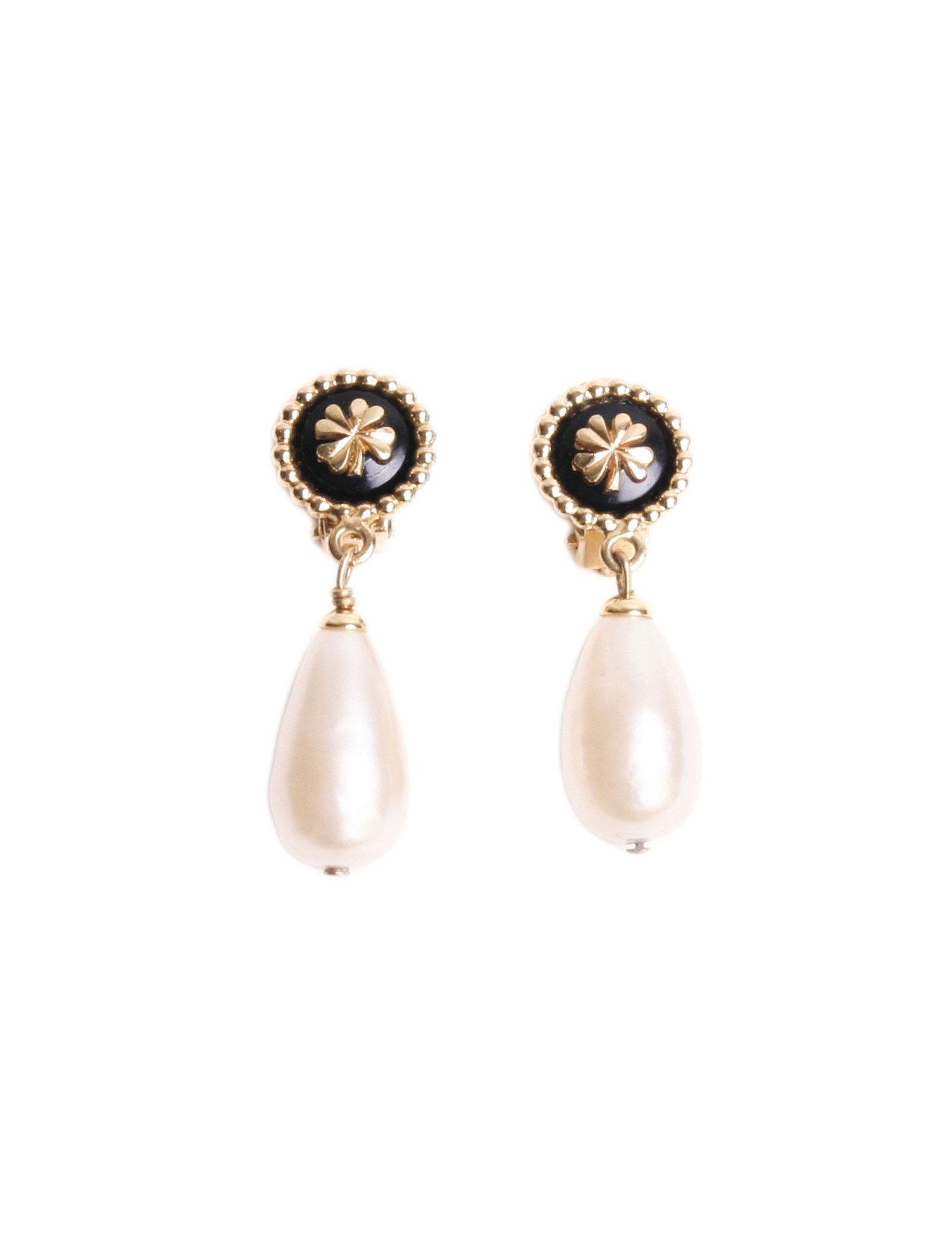 Clips d'oreille CHANEL perle ovale pendante et trèfle à 4 feuilles