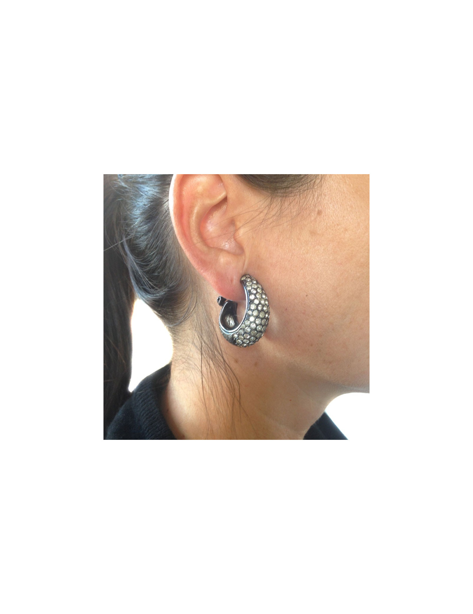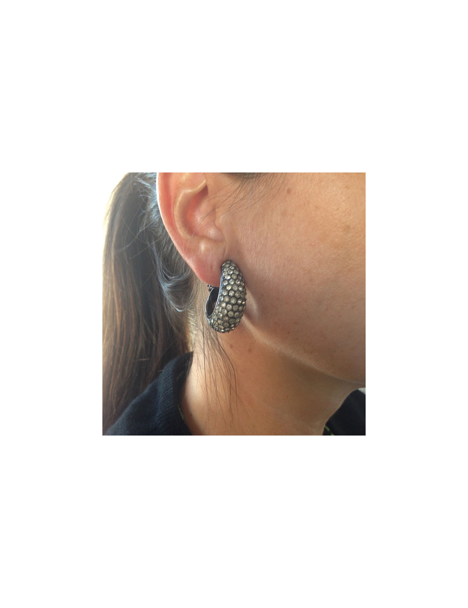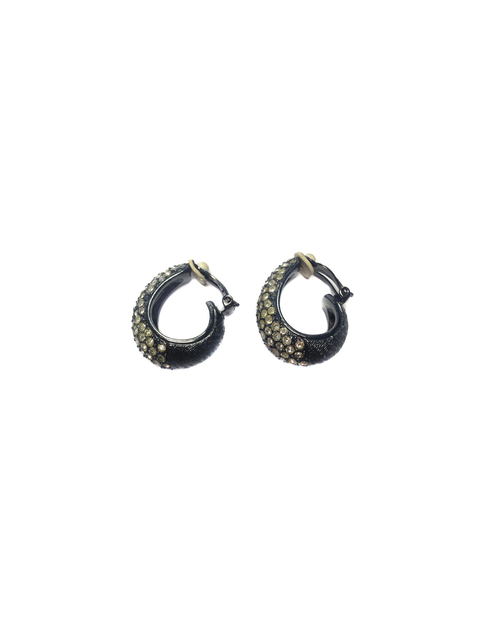 Boucles d'oreille clips GOOSSENS métal argenté noirci et strass