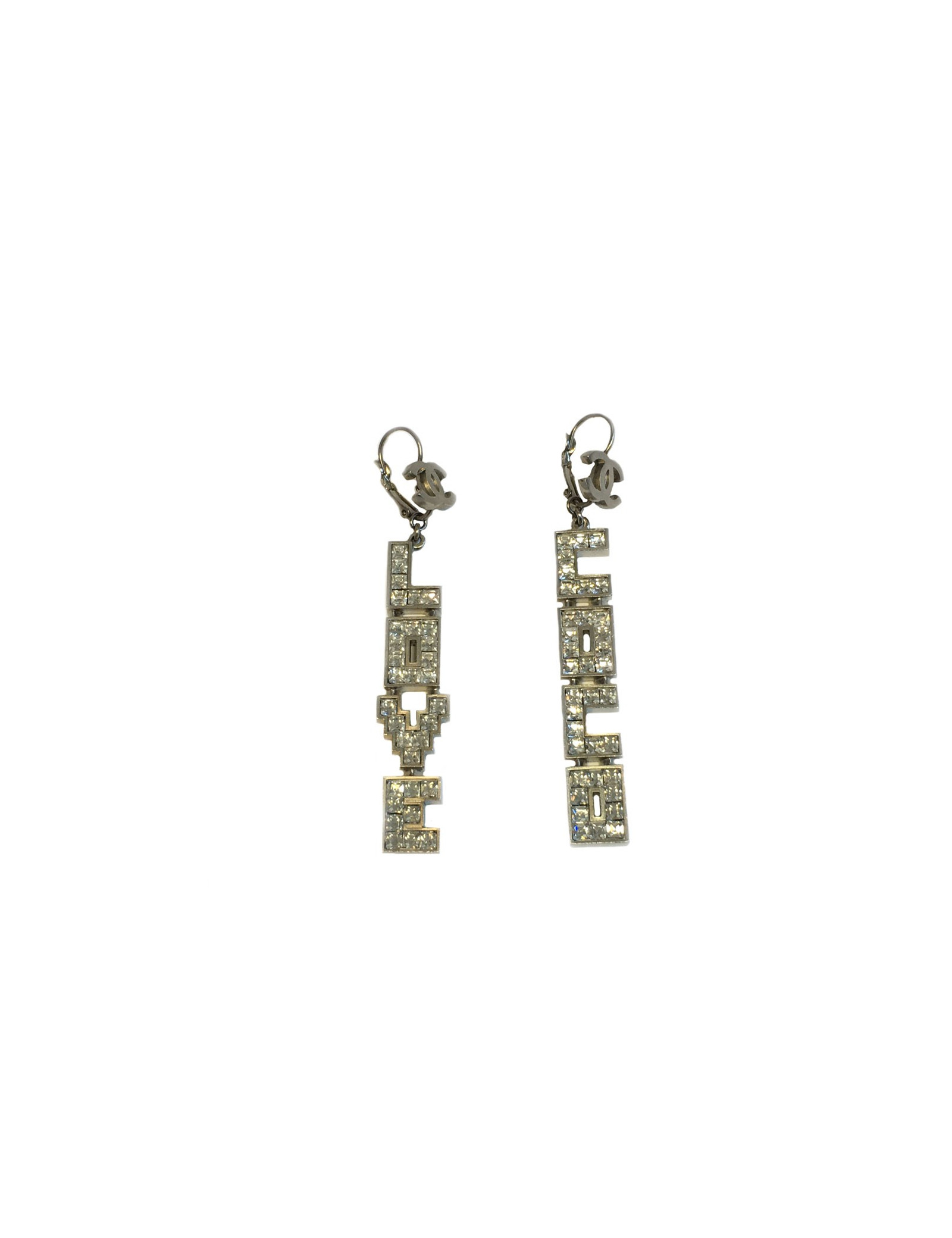Boucles d'oreille clous pendants "Love Coco" CHANEL en strass