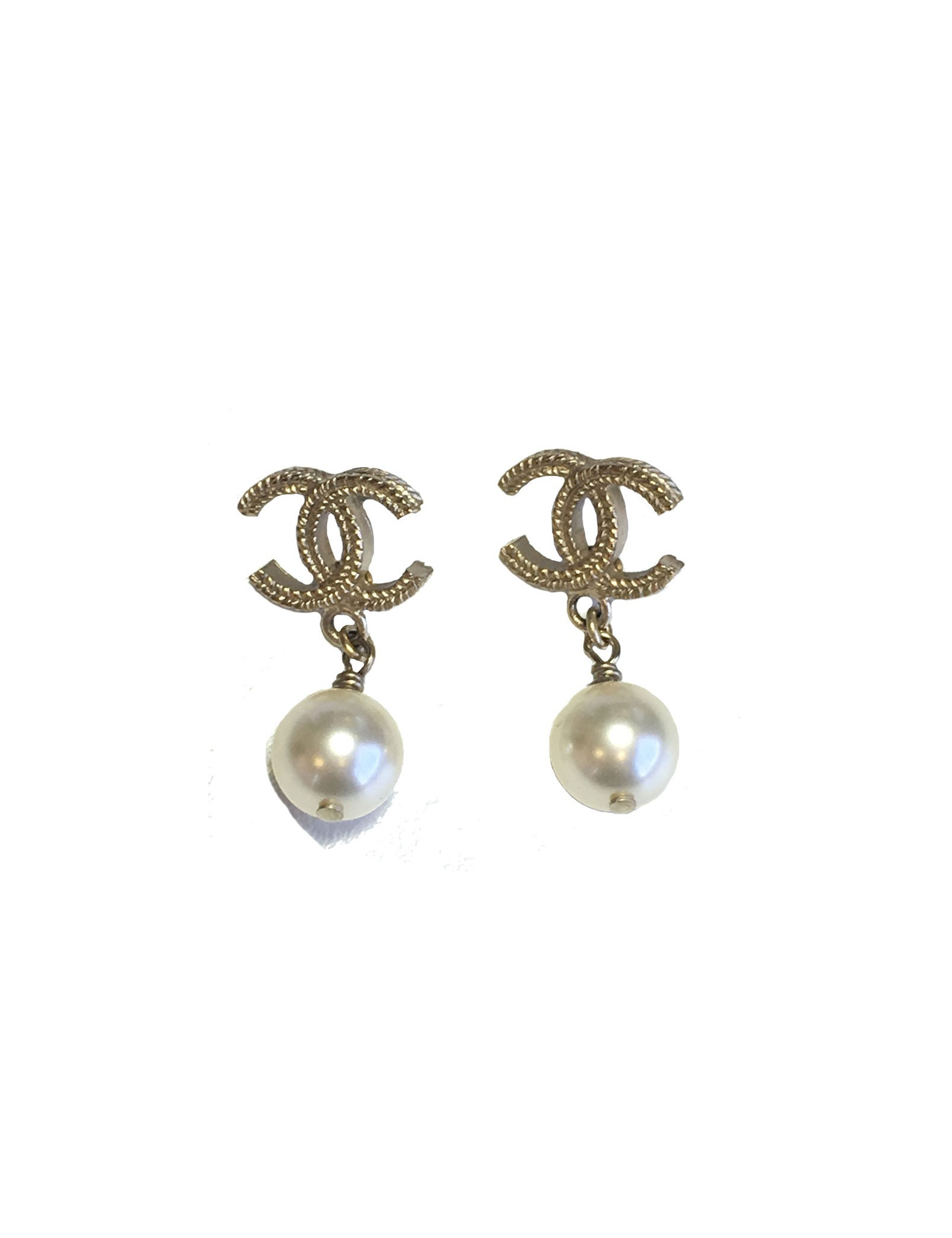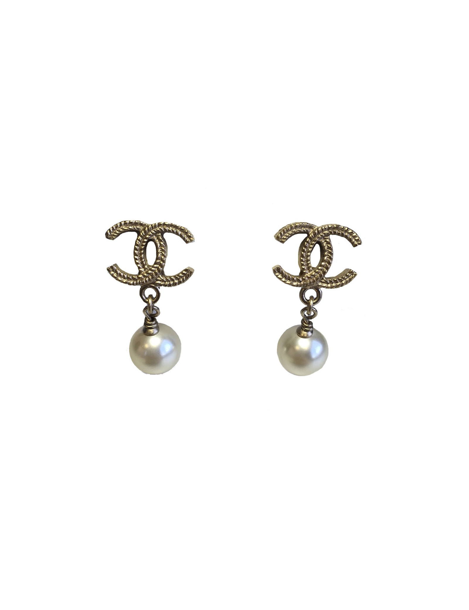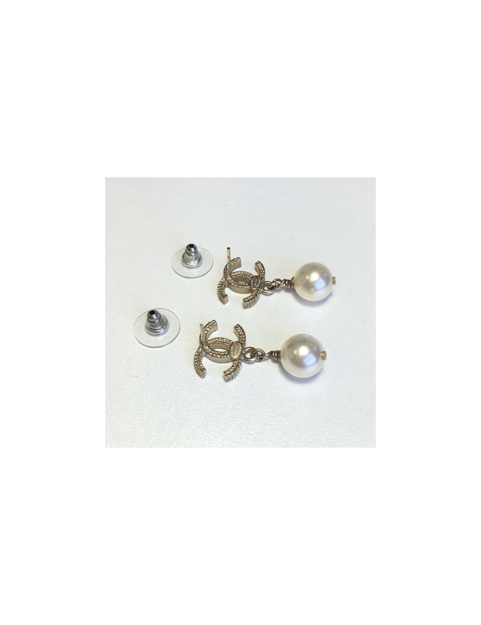 Boucles d'oreille clous CHANEL CC en métal doré et perle nacrée