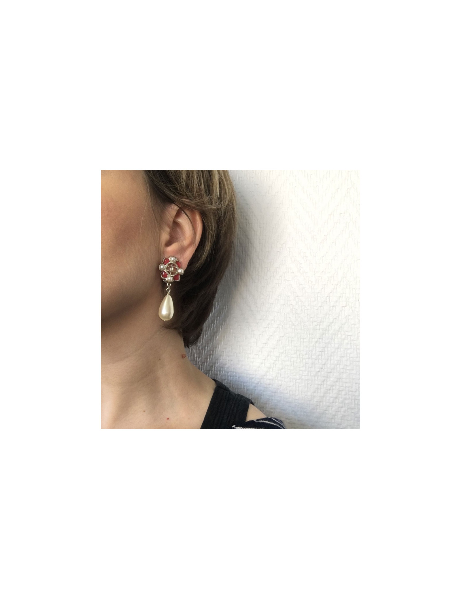 Boucles d'oreille clips CHANEL perle nacrée et résine rose