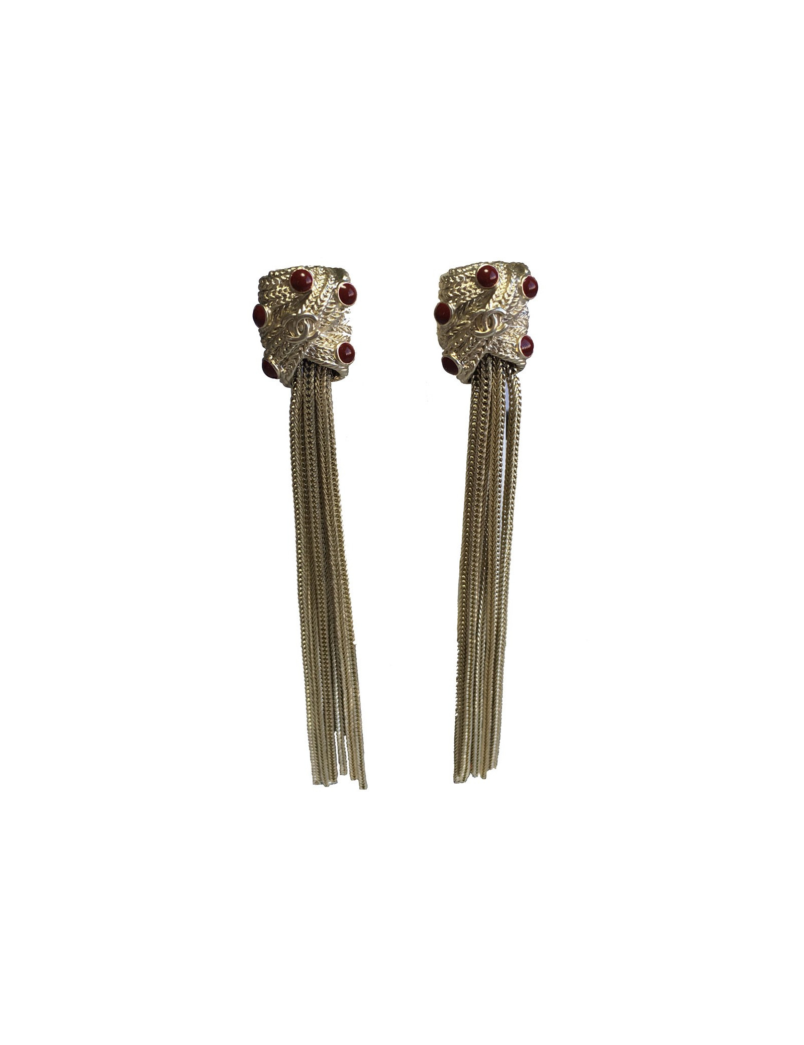 Boucles d'oreille clous CHANEL pendantes en métal doré