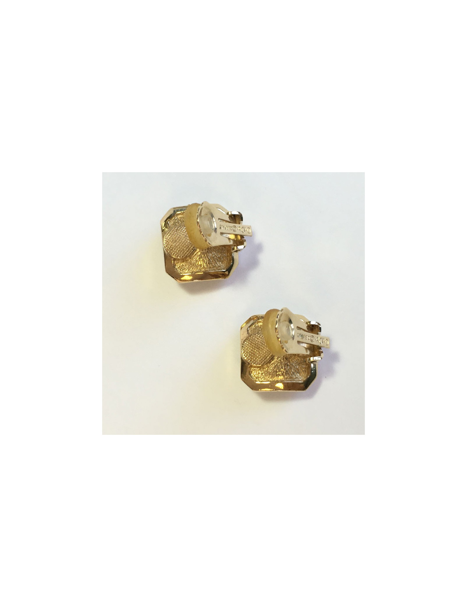 Boucles d'oreille clips CHRISTIAN DIOR fantaisie en métal doré. Leur forme est carrée. Esthétiques, elles mettront votre visage en valeur.