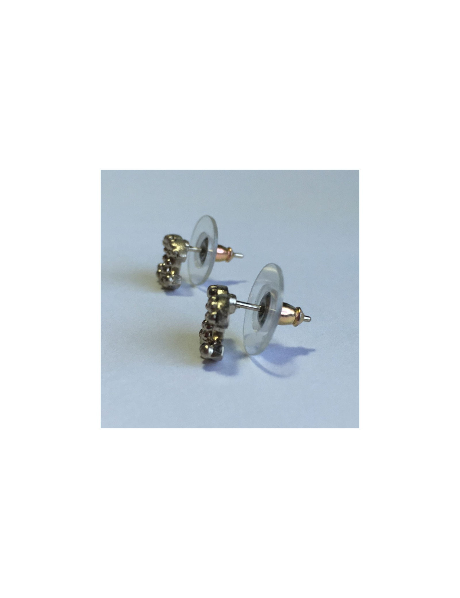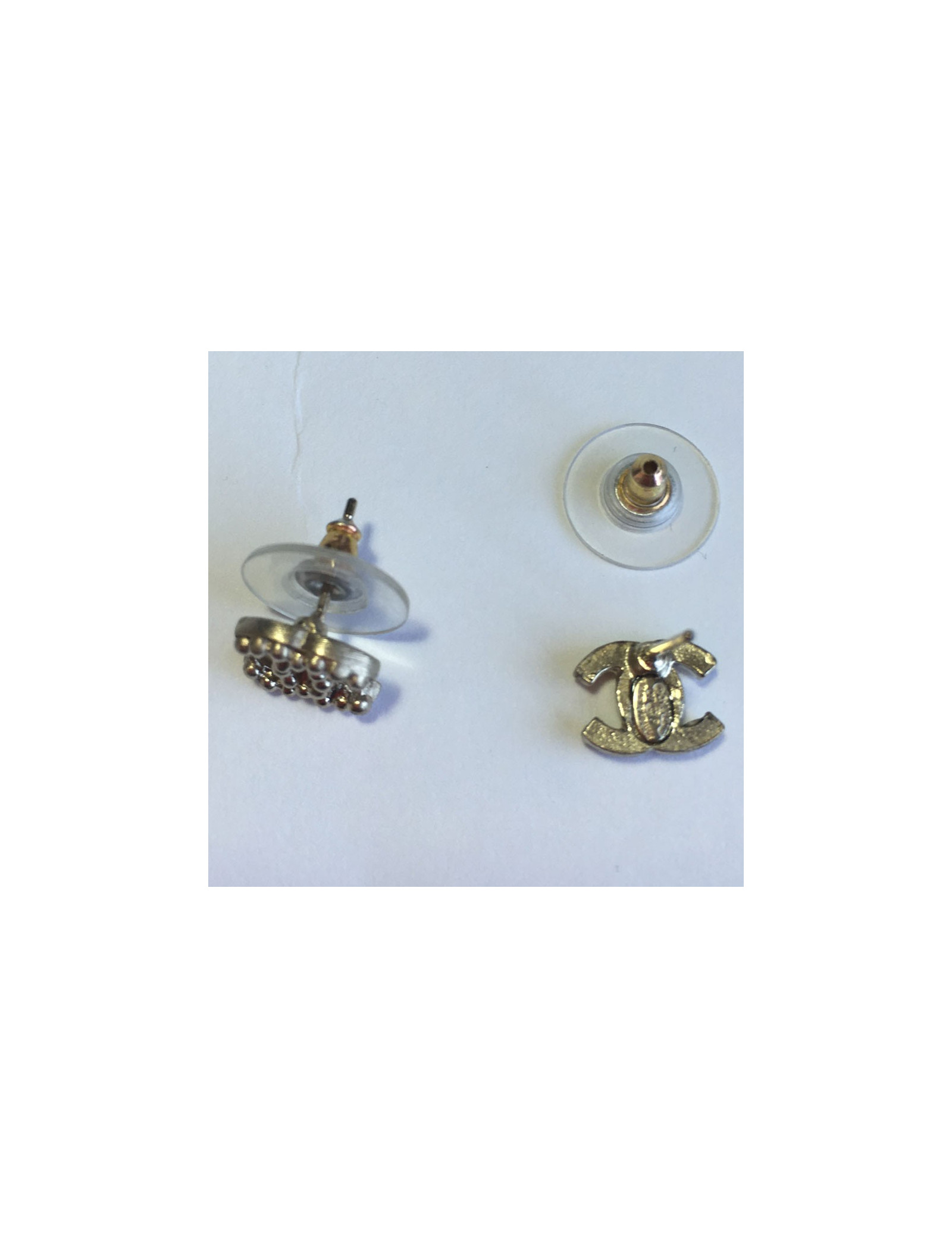 Boucles d'oreille clous CHANEL "CC" cloutés en métal doré pâle