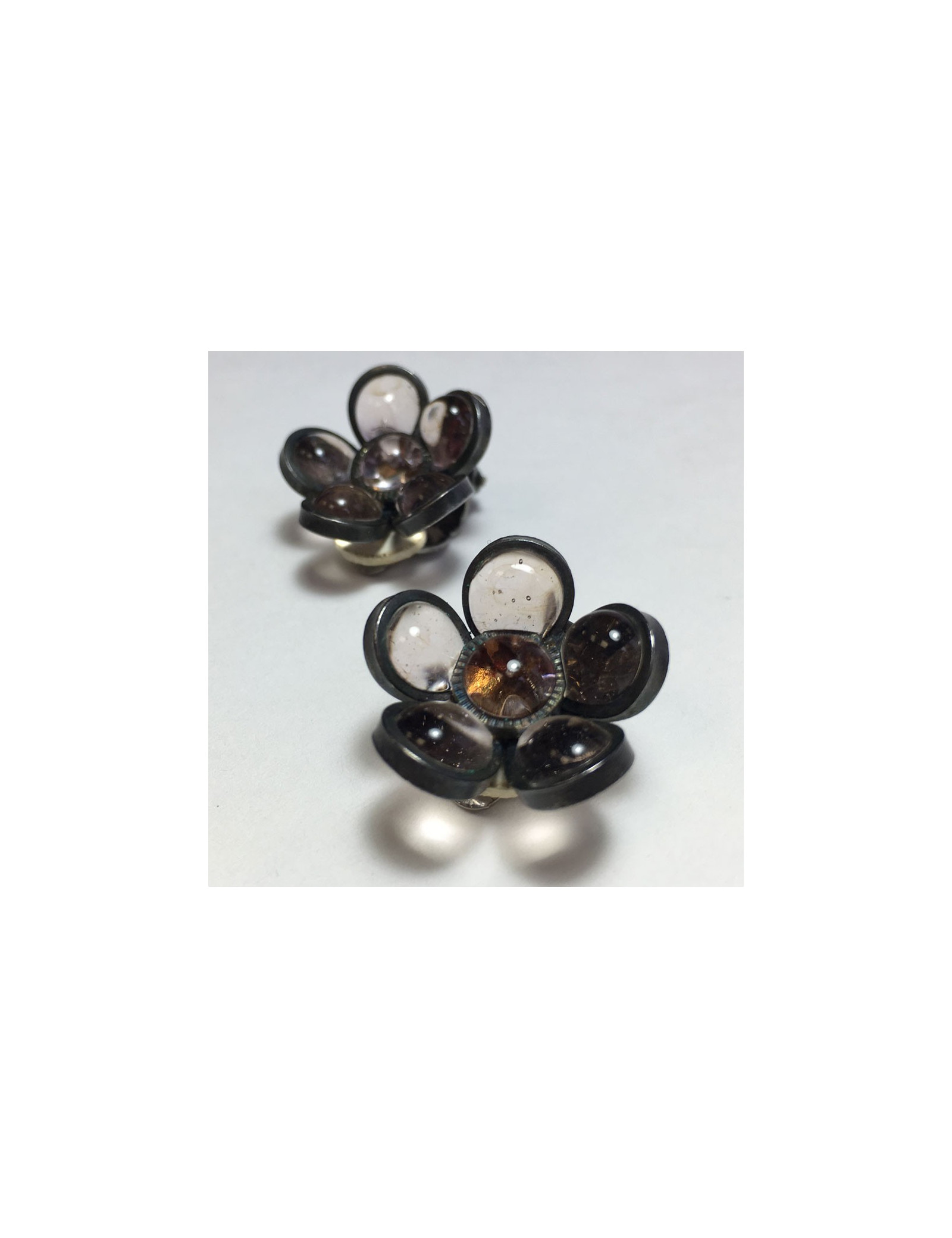 Boucles d'oreille clips MARGUERITE DE VALOIS fleurette en pâte de verre transparente