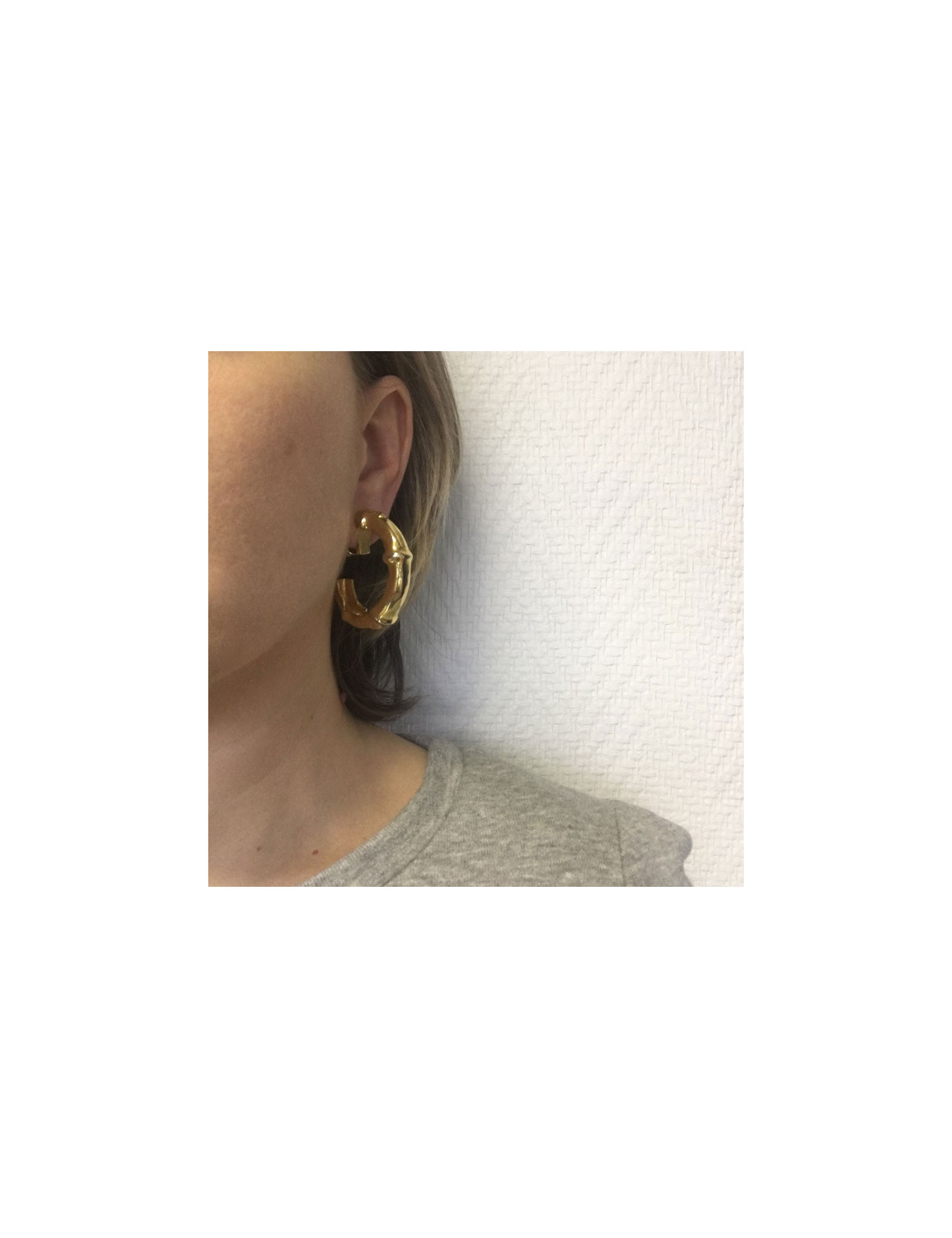 Boucles d'oreille clips HERMES créoles bambou en plaqué or vintage. Clips vintage en très bon état.