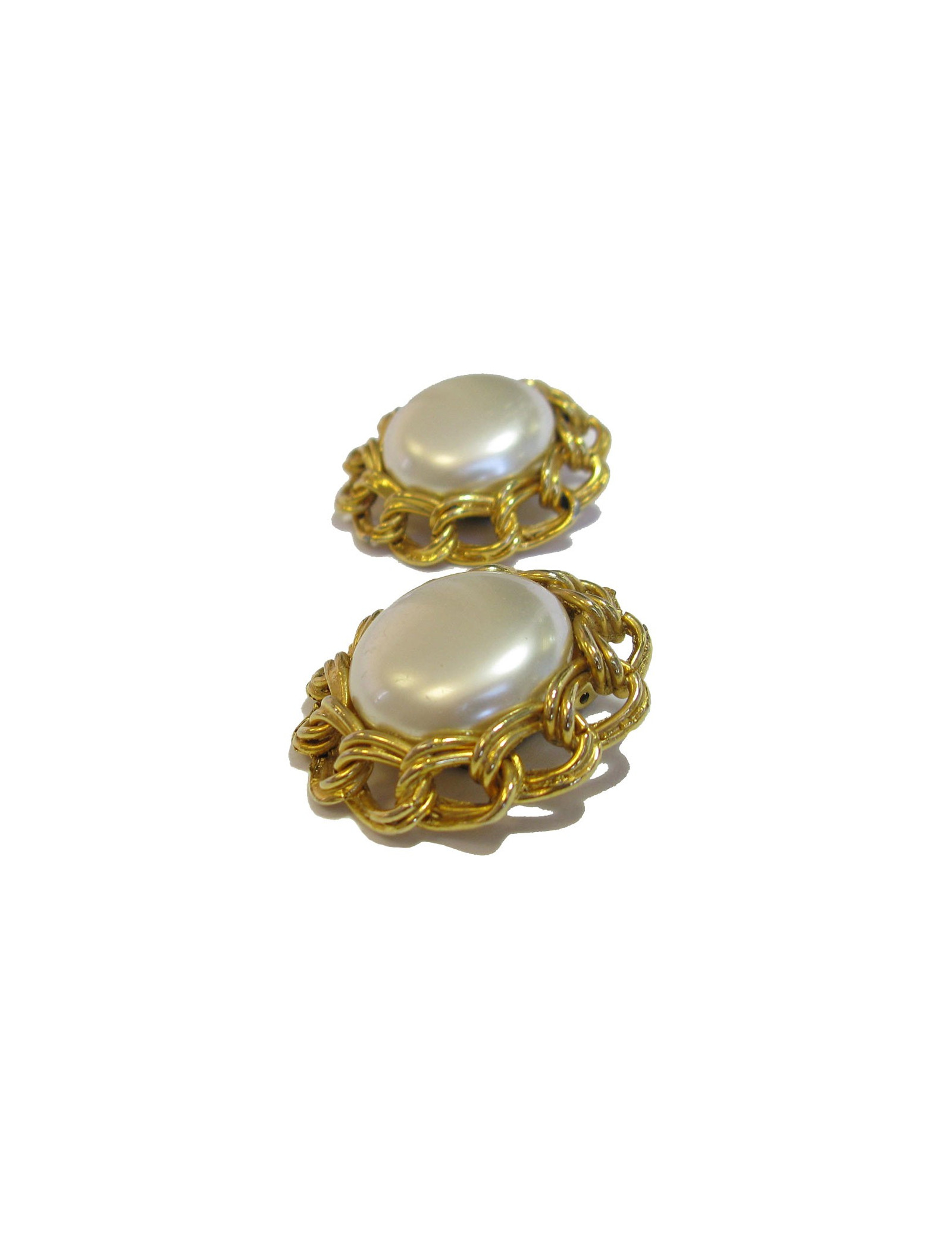 Boucles d'oreille clips perles nacrées et métal doré vintage