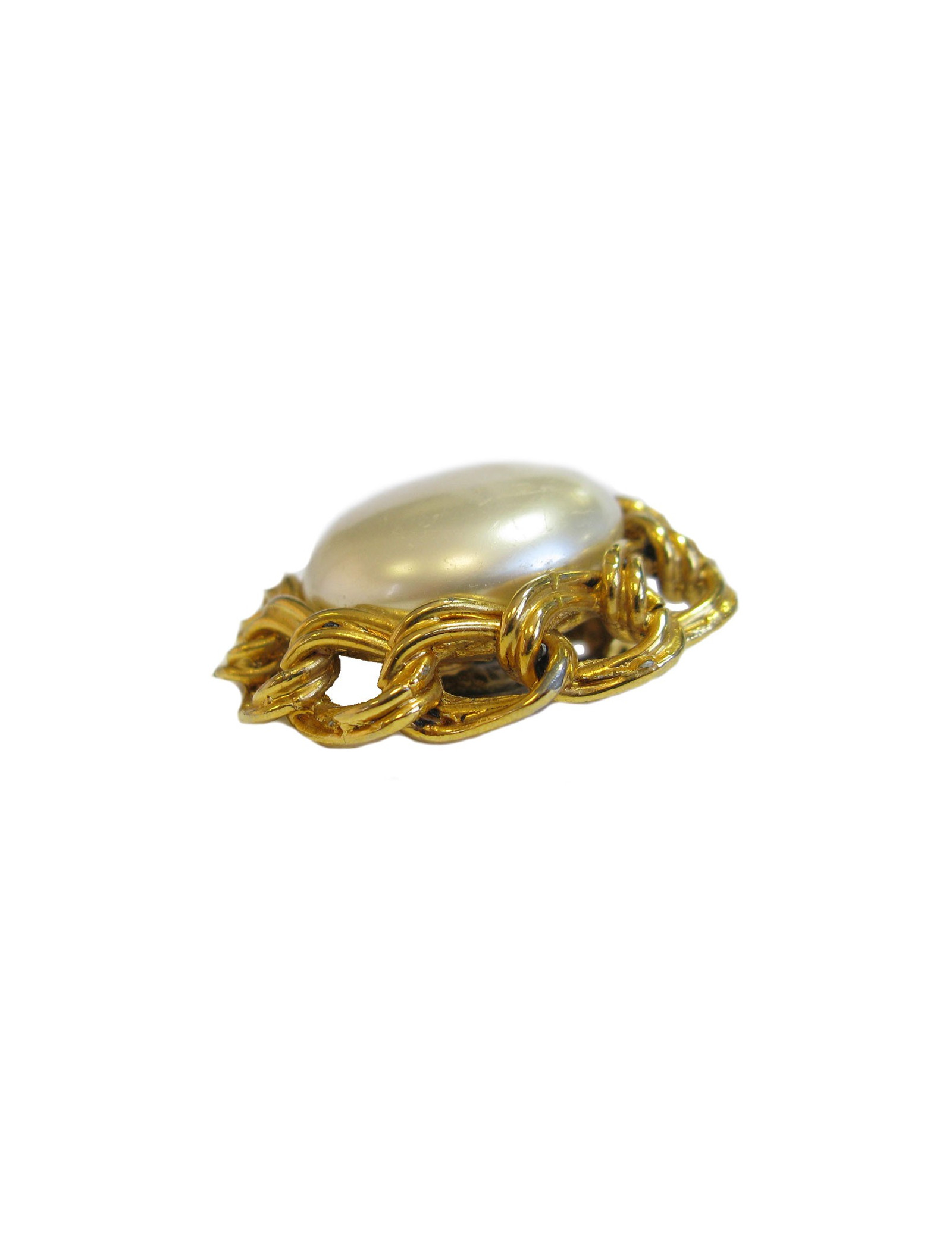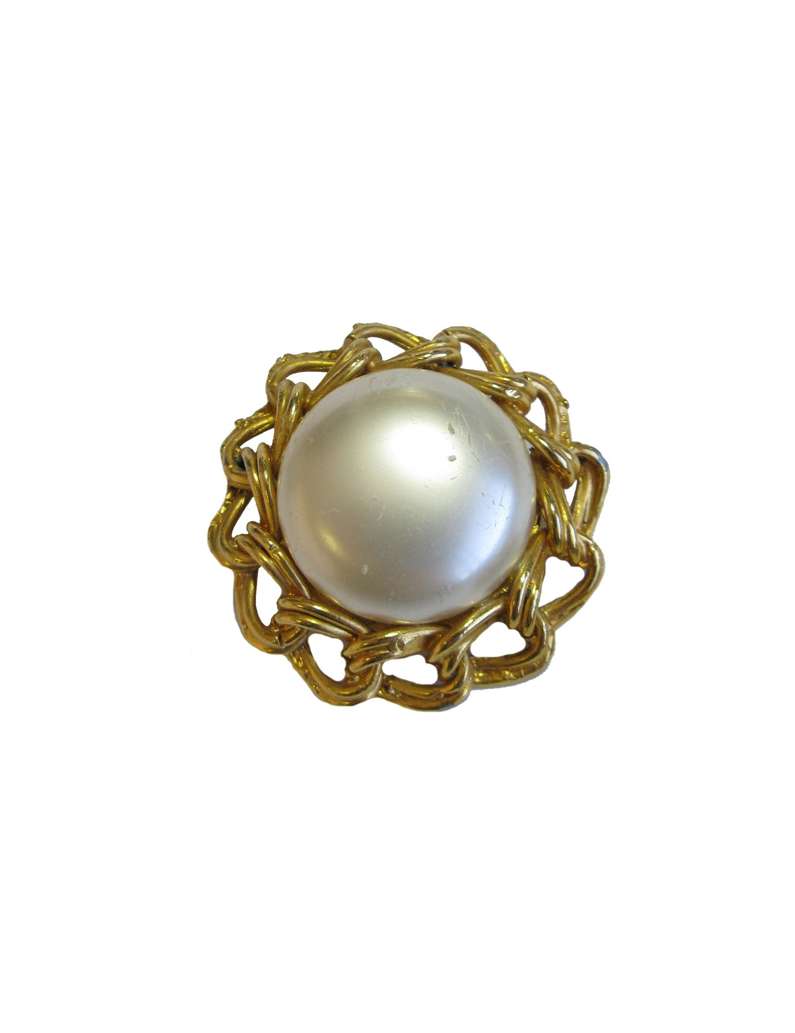 Boucles d'oreille clips sans marque en métal doré et perle nacrée au centre.