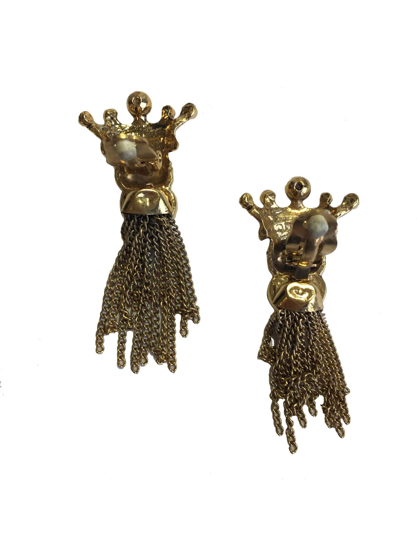 Boucles d'oreille Clips sans marque multi chaines en métal doré et perle coeur nacrée