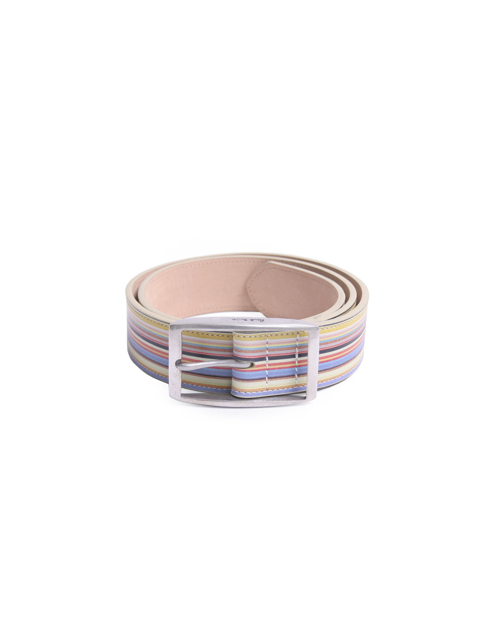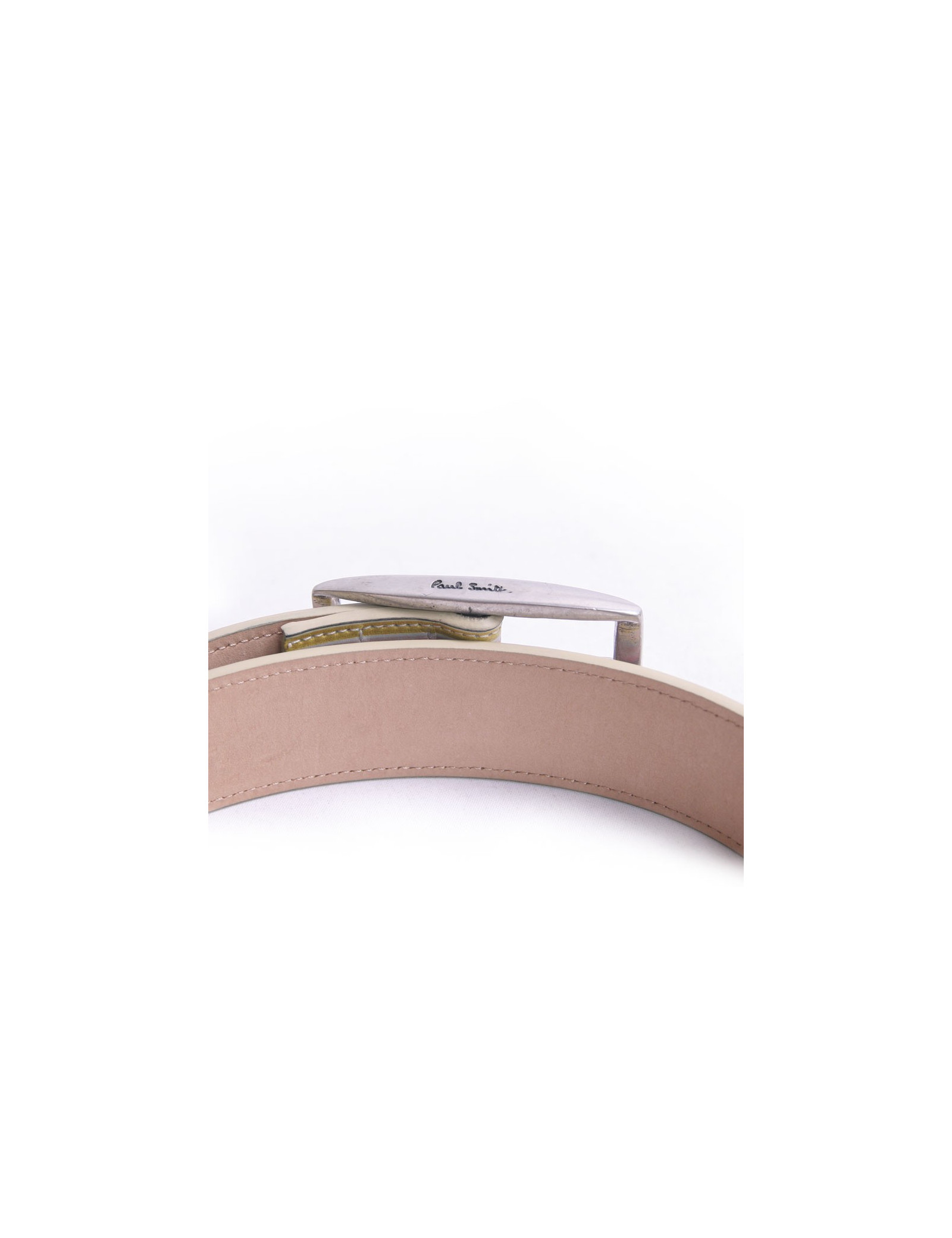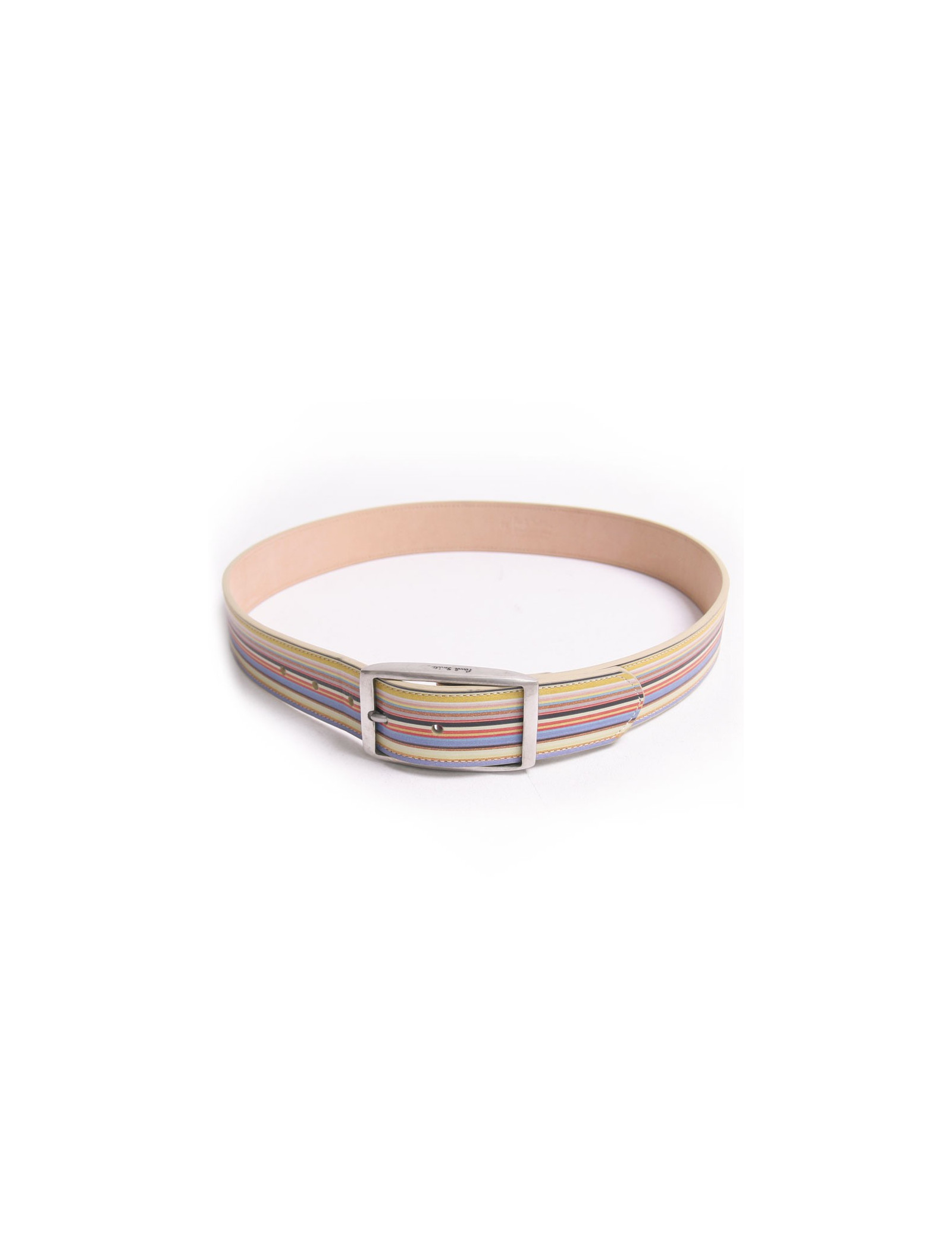 Ceinture Paul Smith en cuir véritable multicolores. 5 trous. Boucle en acier. En très bon état. Légère trace d'usure sur le côté de la boucle.