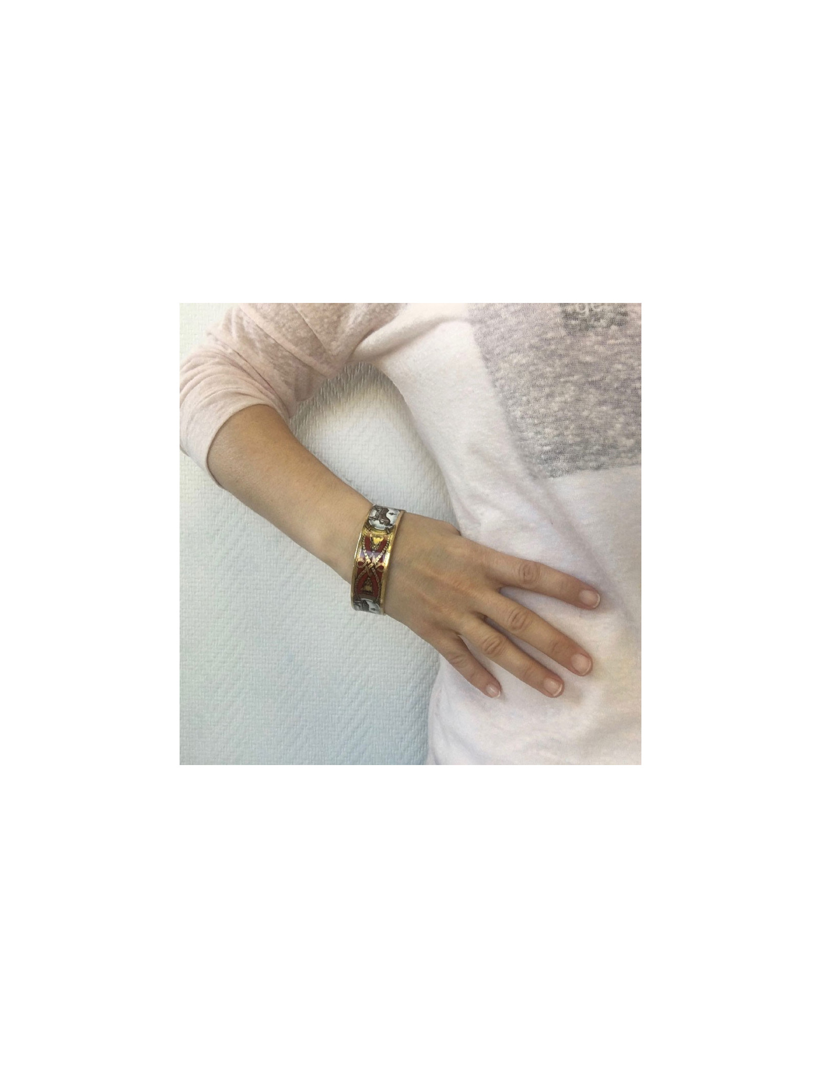 Bracelet Grand Apparat HERMES en émail rouge et plaqué or
