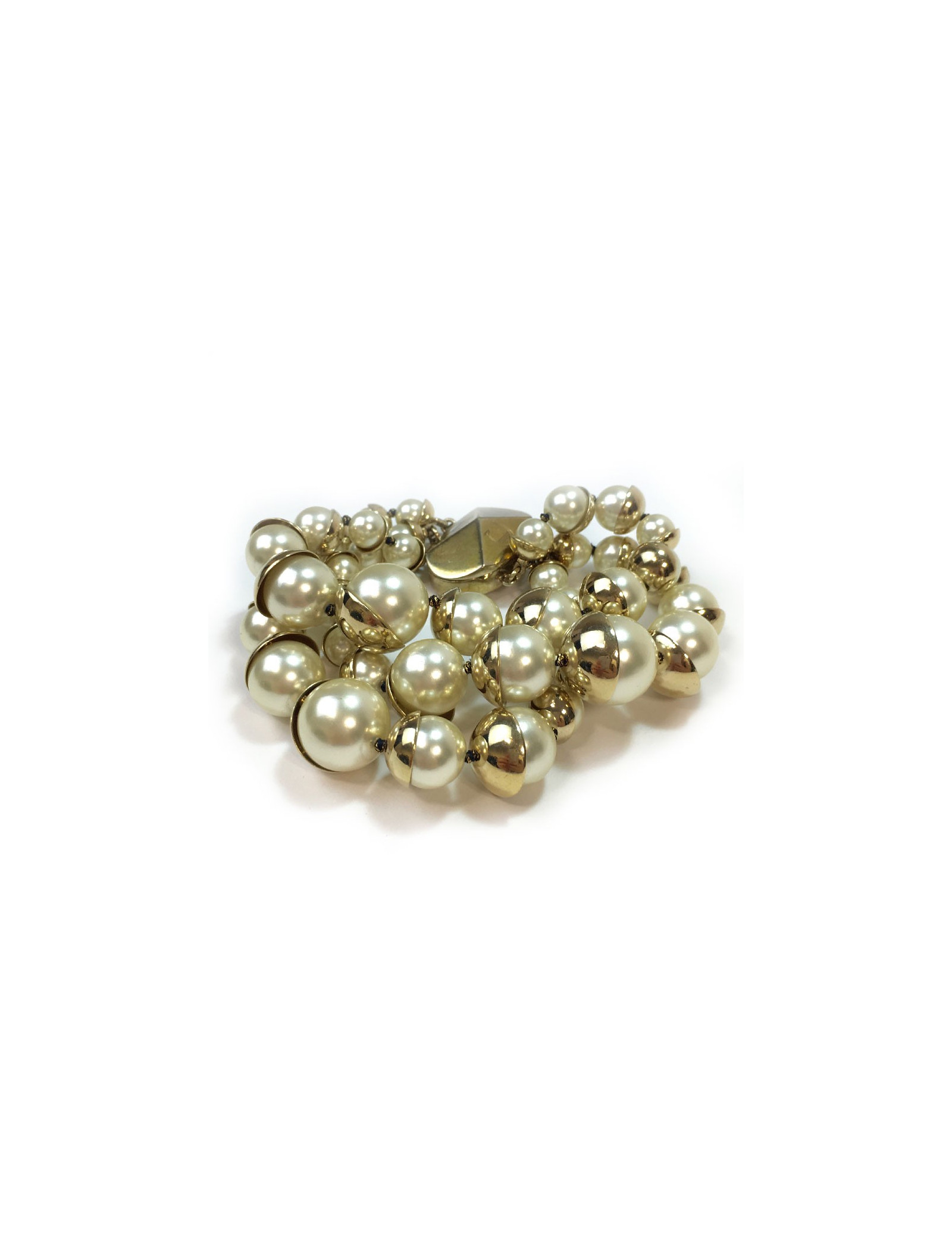 Bracelet triple rangs DIOR perles nacrées et métal doré