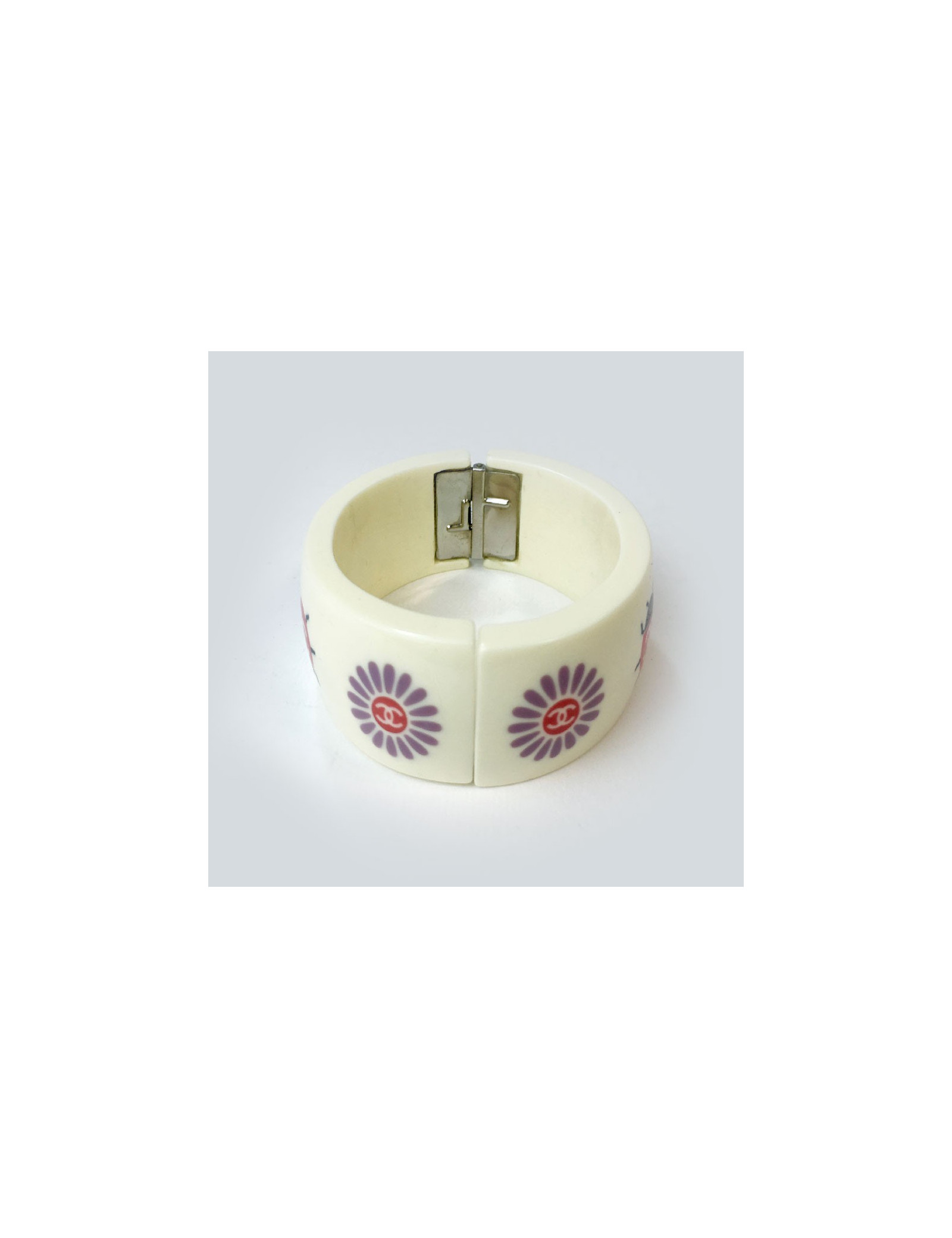 Manchette CHANEL vintage couture. En bon état. Quelques traces infimes sur l'intérieur. Absence de logo de la marque. Fermoir ressort.