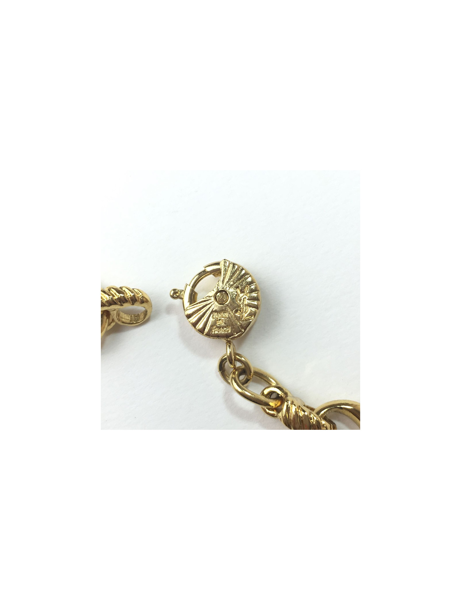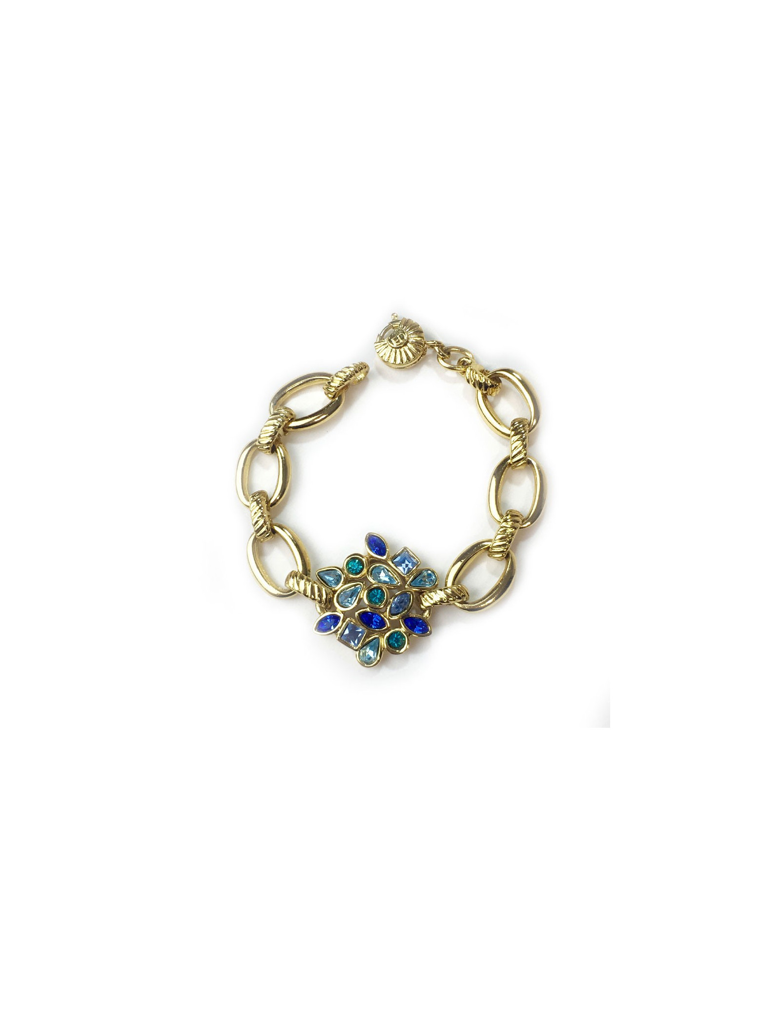 Bracelet Yves Saint Laurent en métal doré, le bijou central est composé de strass bleu, bleu saphir et turquoise. État impeccable.