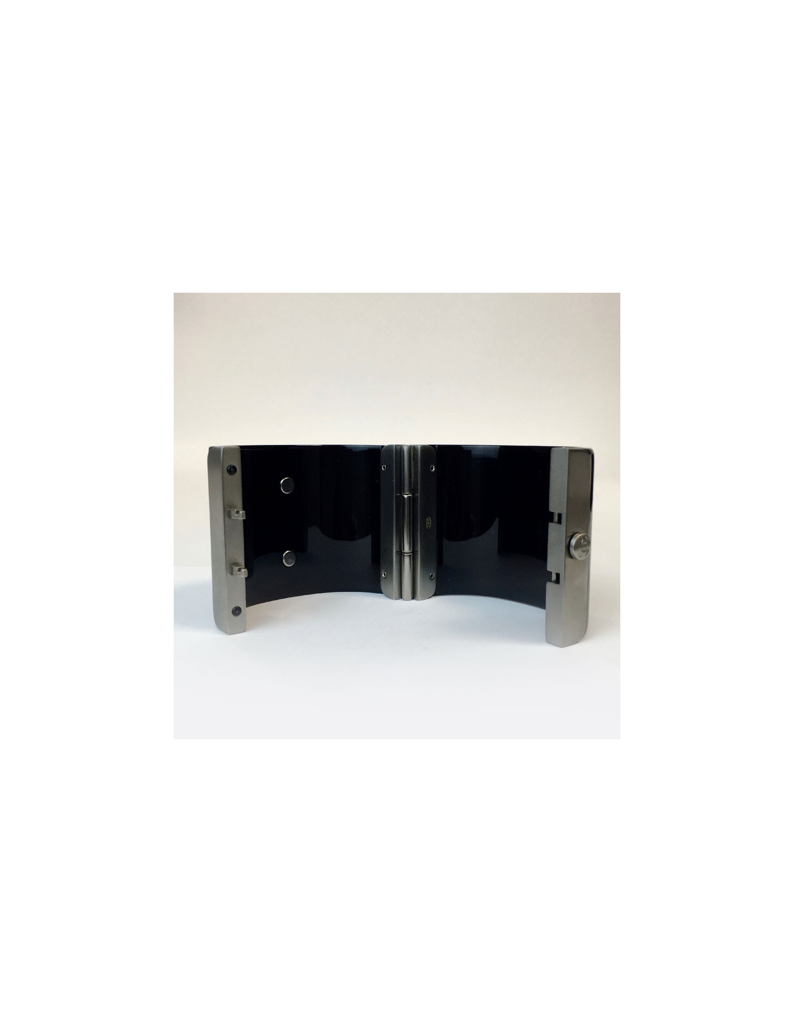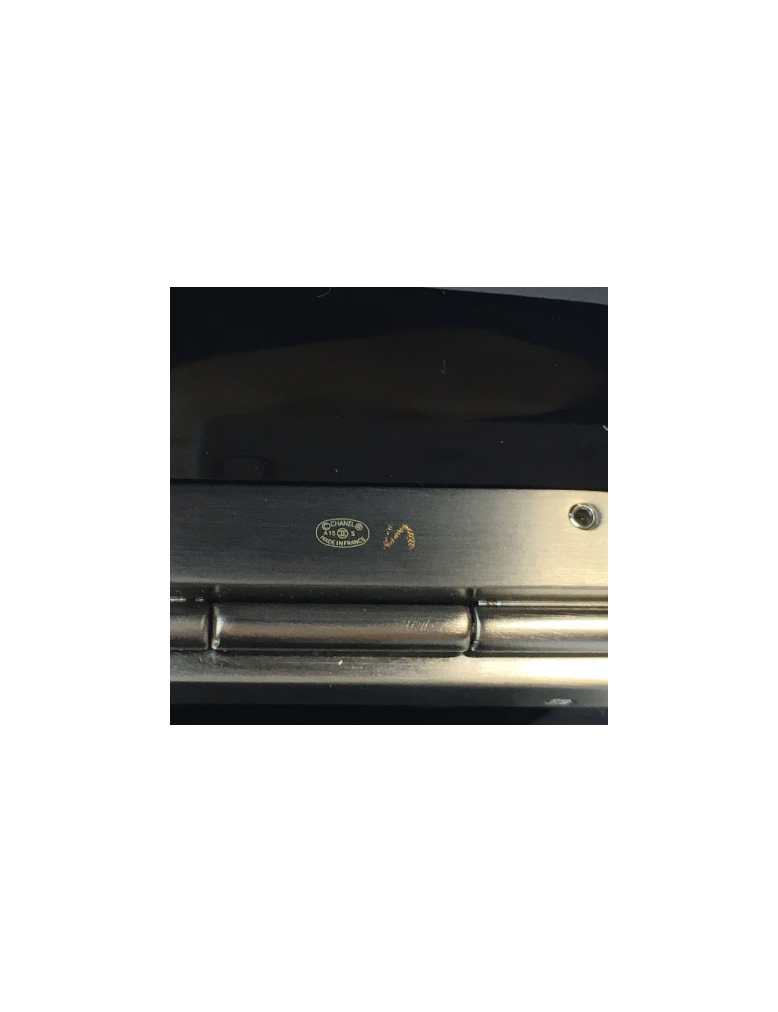 Manchette Chanel couture en plexi noir et CC en métal couleur canon de fusil.
