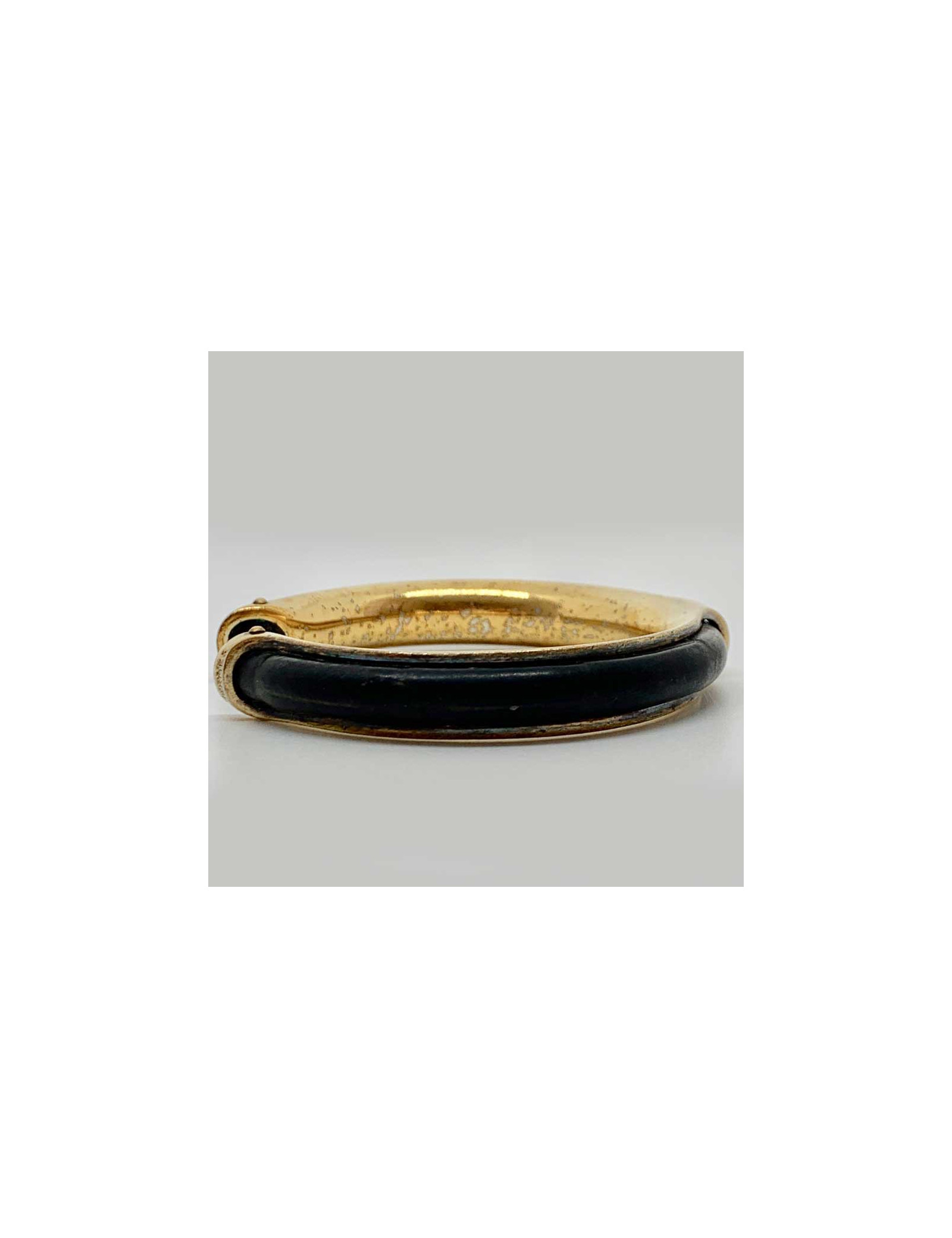 Bracelet vintage HERMES cuir noir laiton doré